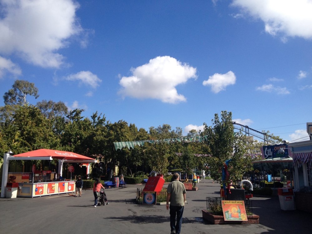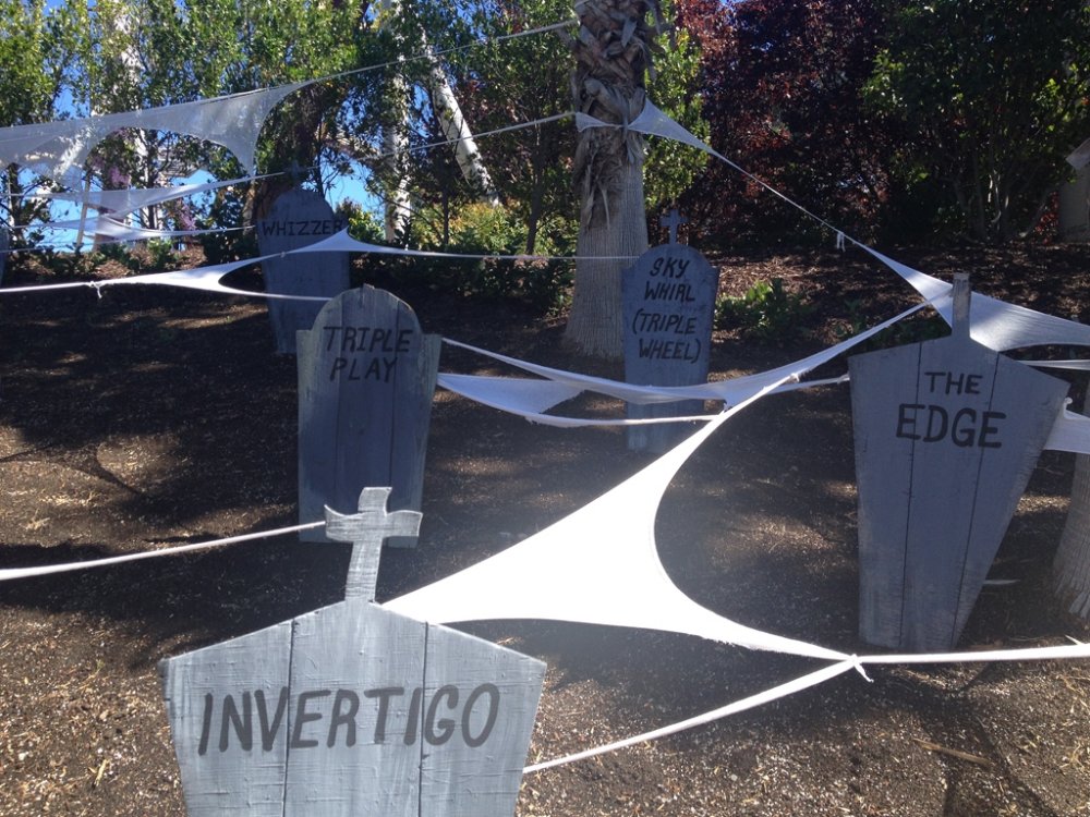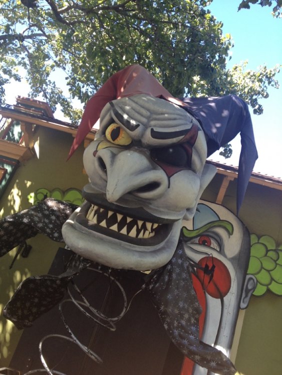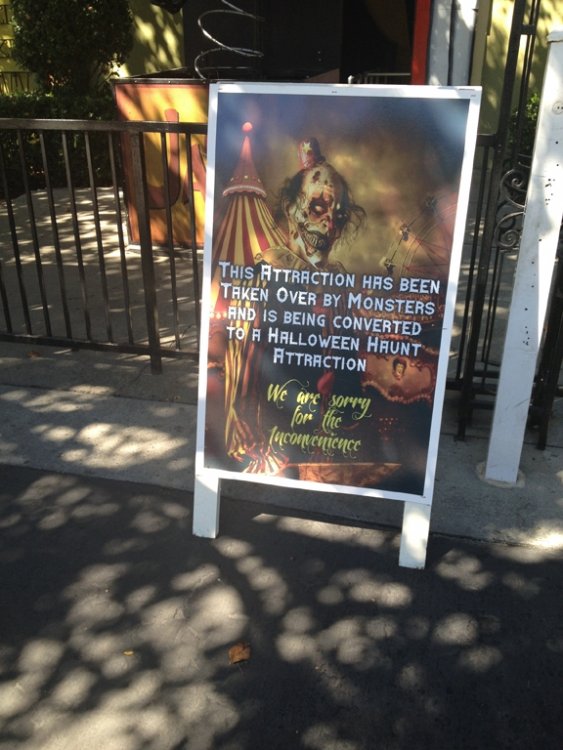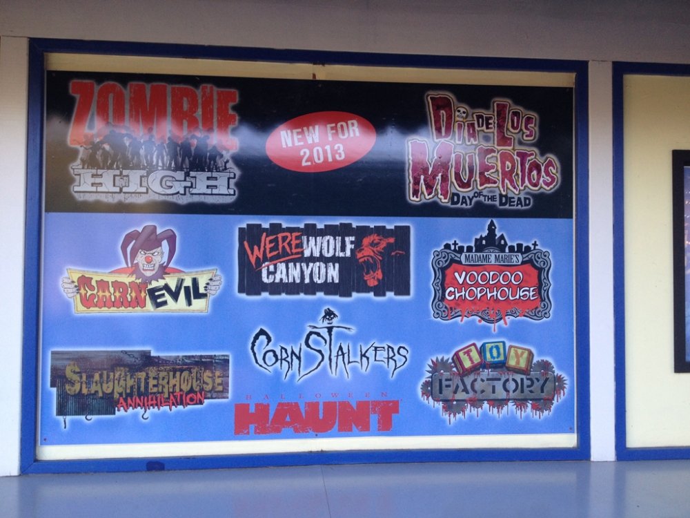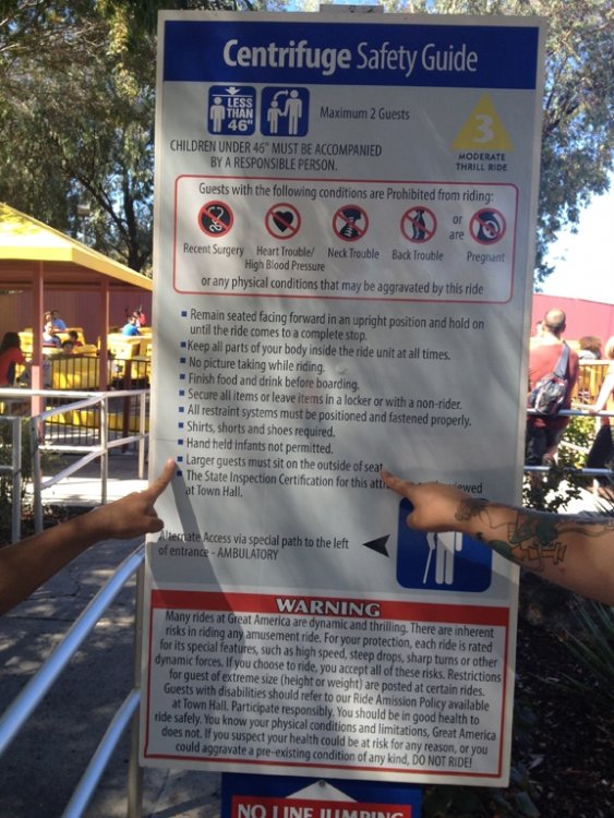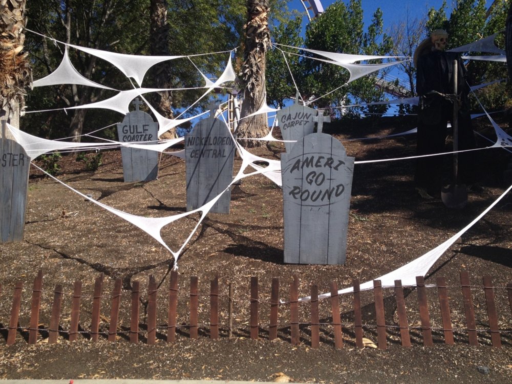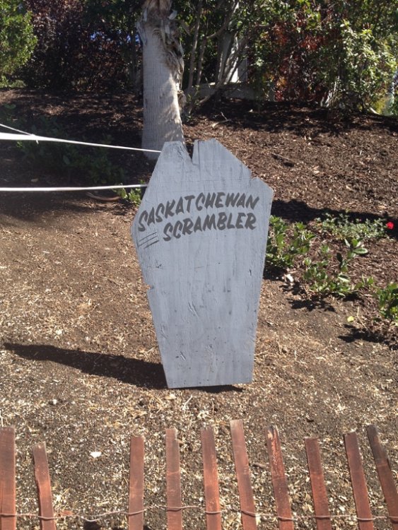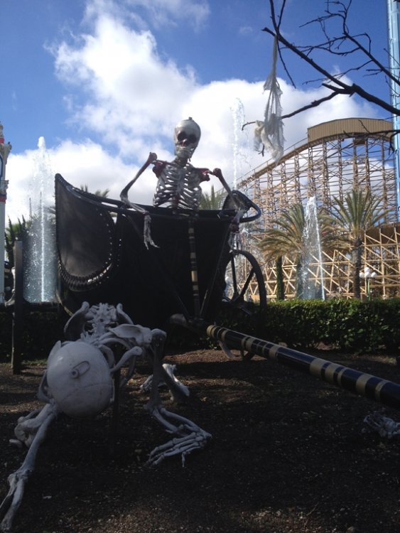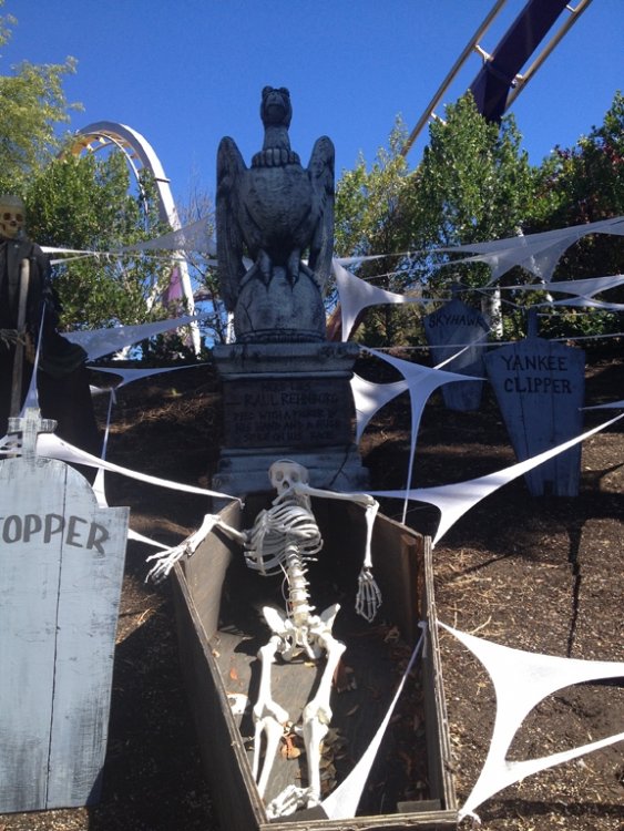 Well, yesterday was a great day at CGA! Haunt is near completion but still lots to go from what I saw! Here's some notes from the day. - Short lines for Gold Striker...rode total of 7x! Could have very easily done more but with the rest of the park dead, it was inevitable to take advantage of no lines everywhere! - Walk-on Grizzly ride...We ended up paying for it though as we were held captive in the brake run for 5 minutes...Snooze time! The ride itself really wasn't too bad. It's the horrid dispatch times that make me avoid this ride like the plague. - Ran into Flagg o' Dim and rjvader as we headed toward Gold Striker. We did a few rides with them. - Of the rides we did, Flagg, rjvader and I got completely drenched on Logger's run. We had the 2 of us heavier riders in the back of the log and the lighter one up front thinking it would be more hydrodynamic but nope! Epic SKLOOSH time! Not once but twice! - Mini ERT sessions (no leaving seats) on Flight Deck and Drop Tower - Lots of Haunt stuff up but still what appears to be a lot to set up within the next few short days. So here's some random photos from the day! Oh man...so crowded! Why did we pick such a busy day?!? Beautiful day to be riding Gold Striker! ... Haunt is in the air at CGA as Friday creeps closer by the minute! The Gauntlet. That Trending Now sign looks out of place though. Crowds were just pouring into the park. At first I thought this sign said "Knott's" With insane crowds like this, I was able to snag a front row ride on Flight Deck! Let's play a game here. It's called "Count the Empty Rows"! This was a common site today. Some more "Haunt-ness" in the park. Be excited! Artsy Fartsy shot of the Von Roll With short/no lines, We couldn't resist taking a flight on the flyers! This sign became the center of our conversation today among our group, after reading on CGA's Facebook about Centrifuge and how riders were unaware of any signage on this ride and seating the larger rider outside. We call it "Your sign's too small: The Ride" We even got to ride Psycho Mouse in the early afternoon as lines were short! Normally at this time the queue is 3/4 of the way full. Something's missing. And I know you can figure out what ride we're at... Just after our ride, the line magically grew and yea...make it a 30-40 minute wait. Zombie High still looks like it has some work to be done. I think I see facade work to the lower left. Toy Factory looks like it's gotten some changes. Boo....why does this ride have to be down? Well, I did ride a surperior one down at the 'Walk the day before (better as in, faster movement, cool lighting package and music, all in the dark). Haunt flowers from above...nice touch! Another look at Gautlet heading back up. Soon this will be full of fog and crazy clowns! ... Hi Jack! And what we really liked: the "Ride Grave Yard." Wait, what's he doing here? A look at one of the new mazes from Star Tower, Dia De Los Muertos (DDLM) DDLM signage And the long, snaking queue. I wonder how full this queue will actually get. Hearse on Inverti-garden...very fitting! After being soaked by the log ride...Flagg o' Dim is still ringing out his shorts. rjvader...was this an acceptable amount of wetness? Let's take a ride on this... I'm going to take an outside seat (refer to my seating diagram I posted on here: [Ouch!] [Whee!][Whee!] [Ouch!] ) Why? YOLO! Let's do this! (I'm not looking forward to this... ...(These restraints look pretty gross) Maybe taking row 1 won't be so bad... Bang Ding Ow! (Yes, the front outside seats sucked.) Some more Haunt-ness...Something's probably goofed on the sign though. I thought it was Madame Marie's Massacre Manor. VooDoo ChopHouse is their special meal they have going on. Slaughter House signage...can't wait! CornStalkers now lives on the opposite side of Barney's. And it will utilize Barney's queue for the maze (which seems like it will work out rather well!) Alright CGA, time to call it a day and grab dinner! One of our groupmembers (JeffyJosephNorcal) won 4 basketballs with 5 shots...let's be annoying GP and dribble! Until Haunt....See you soon!
