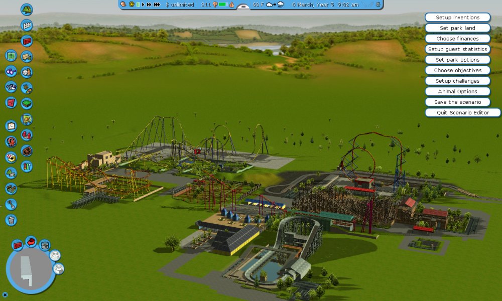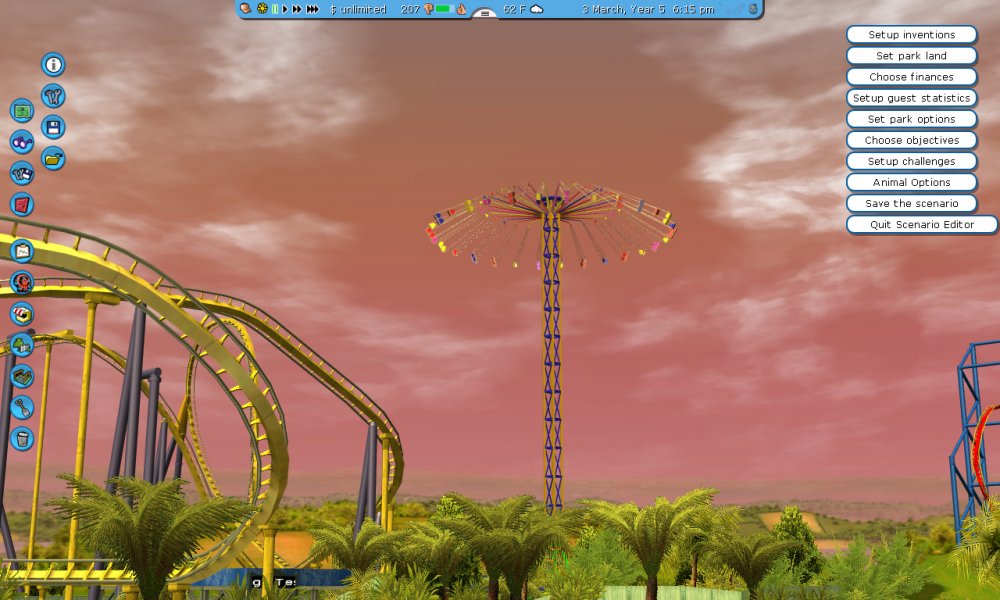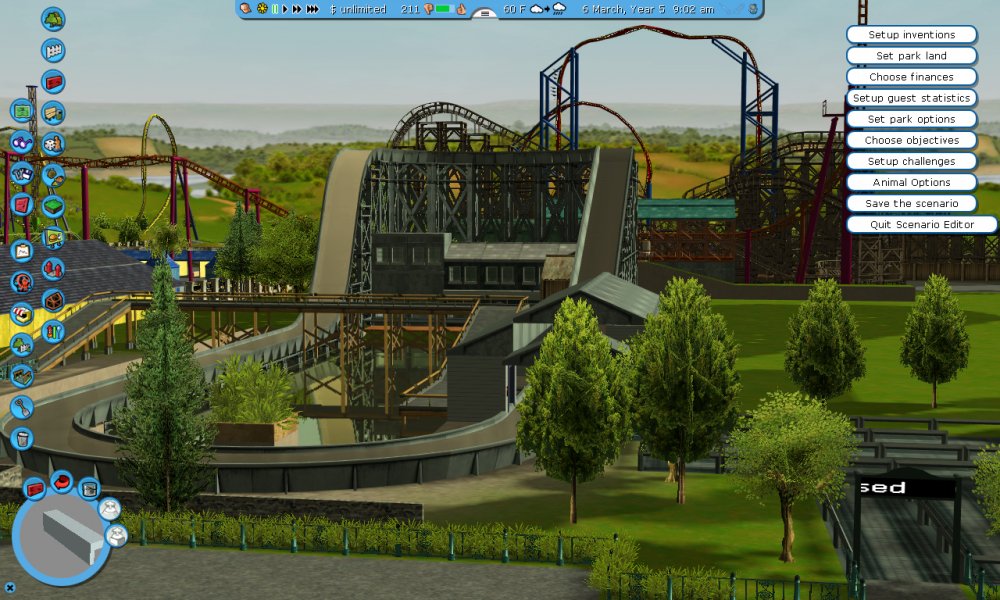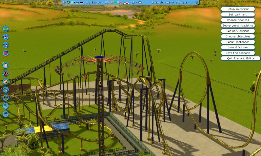 Here's a small update...haven't had much time the past few days but plan on hopping back on it this week. In this update you'll mainly see Medusa and such. I think my next section is to continue to work on the main plaza entry and join the paths to both Roar and Medusa plazas. An overview (Woa...Sky Screamer vanishes if I go too far back! Same goes with some of SUF's supports...). A bit hard to tell but Kong's been tweaked a bit. In reality, the track goes upward into the inline twist but in RCT it put it up too high so I had to do the helix at a downward spiral to make it look right. Monsoon Falls, the latest area I worked on. Sky Screamer... More to come soon! -