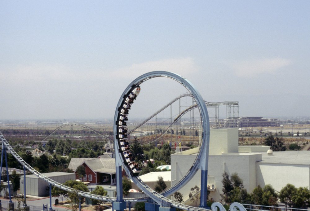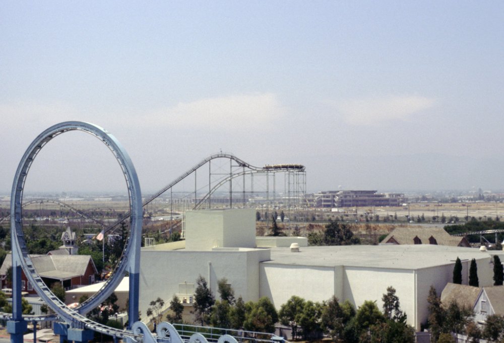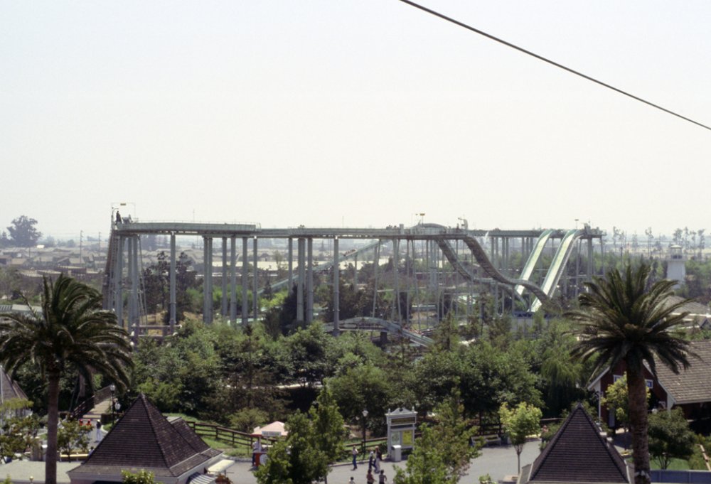 Was just looking at what we've dubbed 'Anton's feet' (loop footers) the other day at the GWW event, since they are using back stage road from the Inverti-garden up to the restrooms be Delirium. The back half of the park is blocked off. I wish I tried the Skyhawk ride, had intentions on doing it as a kid to break fear of being inverted but the lines kind of made me look for something else to ride, probably being Triple Play (what a fun ride that was!). Since we are in a nostalgic mood, here's some neat little photos I scanned a month ago at work, from old 35mm slides...really great condition slides at that considering the time frame of the park. Let's start with a video first, that I captured last year...had a mix of stuff, including Star Wars and other TV shows...this caught my interest immediately! Start off with Tidal Wave in it's original paint job. And what do we have behind there? Turn of the Century making its turnaround before the drop. Note the lack of office buildings in the area. Also, I spy another Schwarzkopf ride hiding out back... Last but not least, the 2 flumes: Logger's Run and Yankee Clipper! Sadly I never got to ride Yankee, would have loved to see what that little jump was down at the bottom.