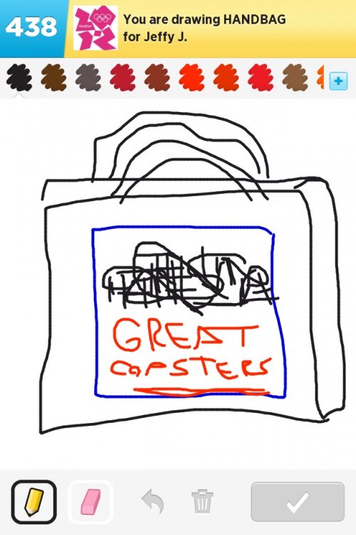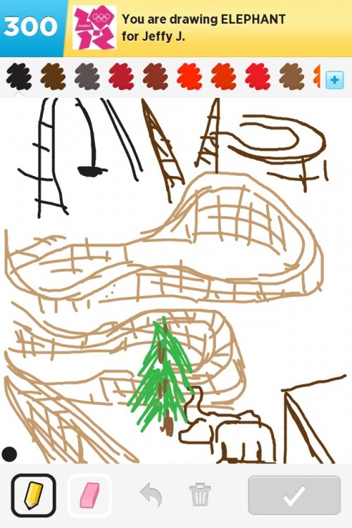 15. Draw Something...'nuff said...especially with your friends actually present, and drawing theme park related things off of the simplest words...(Like I get the word "Stapler", I draw a ride op stapling someone...or get the word "Shark" and I draw Flight Deck's shark wheel cover). Otherwise I whip out the phone and check up on TPR, maybe 'check in' at a ride on Facebook or just chill with the group and do random things...like we were quizzing each other on naming all the CF/SF parks, naming all Schwarzkopf loopers in the US...