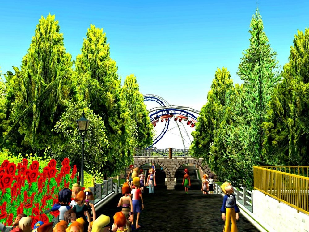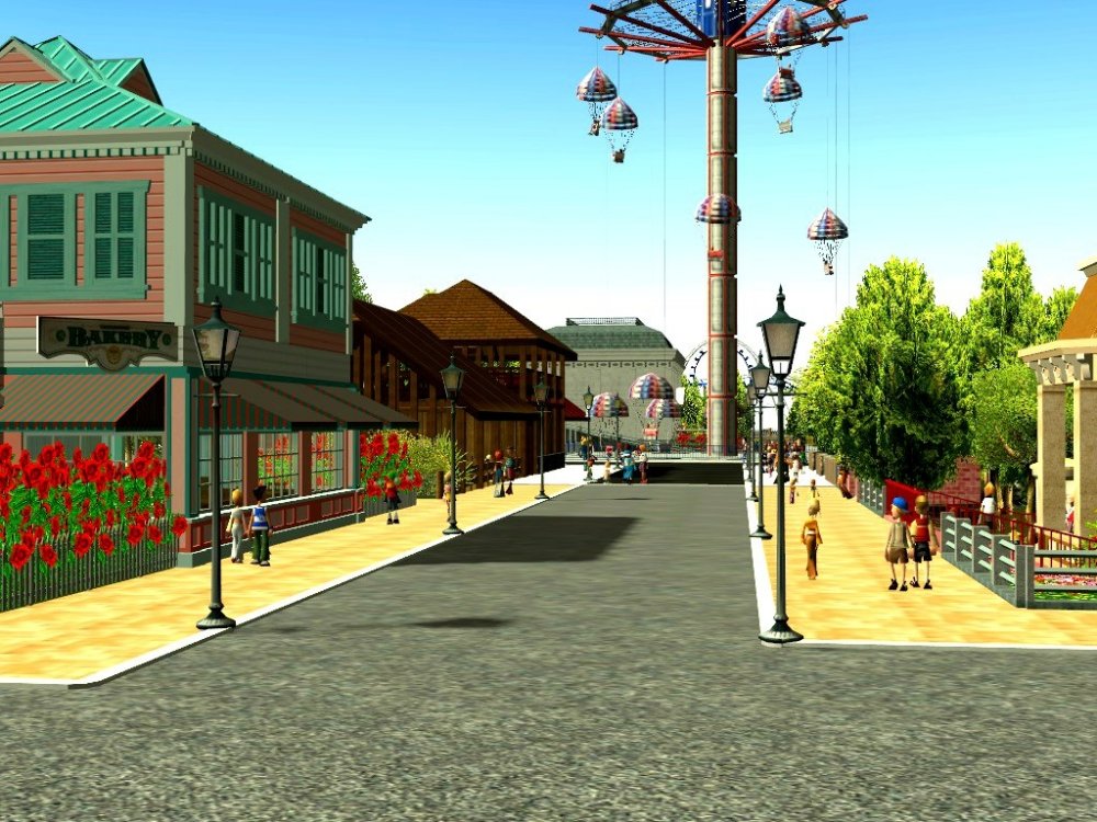 Hello everyone, you might remember me for creating Appleton Amusement Park a few years ago. I've returned to the world of RCT3 making with a new park, Springfield Park. I've really stepped up my abilities in the game and I'm excited to show everyone what I'll be working on for a while. The catch is that, unlike my last park, I'm not going to include a story line. Personally I'd rather have anyone viewing the park to appreciate it by itself without any kind of characters or plot. With that said, enjoy the opening year of 1976. The park entrance and guest relations. Looking down on main street where we see one of the most popular rides so far, Parachute Plunge. The classic carousel sits in the corner surrounded by trees. Looking across the carousel is the Springfield Gift Shop, nearby where the train crosses the path. Looking to the left where more shops remain, plus our Turn of the Century Grill restaurant. In the distance is the Springfield Train Station. The bakery where they sell donuts and cookies and other delicious goods. The train takes guests to the back end of the park where our most popular ride is. What it is? Find out in the next update.