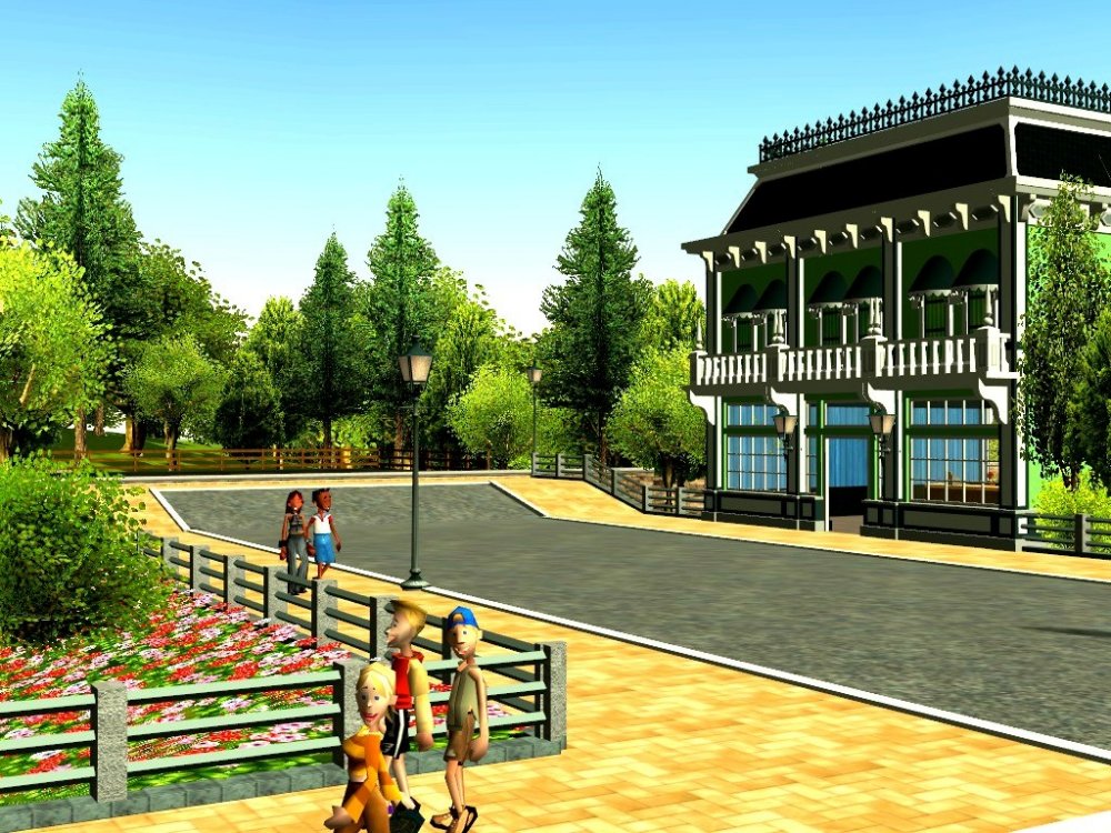 I welcome you back to Springfield park, where I showed off the main entrance area and the Corkscrew. But it's time to showcase the other great attractions that dot the landscape in opening year 1976. Here is the station that houses the mine train roller coaster Gold Digger. The majority of the roller coaster takes place in the woods, where riders encounter airtime hills, and a western town. It's the perfect roller coaster for guests not brave enough to ride Corkscrew. A look towards the many trees from the exit. Lots of room to expand in the future. Like you saw before, the parachute ride soars over the midway leading to it. Many other rides surround it. One of which is the Automobiles, where riders can drive in cars guided by the track into a neat little forest. A neat part of the ride where the cars go over a small hill nearby the path. Far in the distance is the Musical Chairs. As you may have noticed Springfield Park contains lots of uneven terrain. It does require lots of excursion to walk on some of these paths, but it allows the park to keep its natural beauty. Another hit is Shockwave. An enterprise installation that provides lots of spinning for those looking for it! Right next to Shockwave is one of the main restaurants, The Victorian. Serving sandwiches, salads, and baked goods. Springfield park has been a tremendous success to local crowds. There's no doubt that in the future Springfield Park will expand and offer even more thrills and leisure. Thanks for coming to see Springfield Park's opening year of 1976. A new ride for next year is almost certain to increase attendance, so be sure to be there!