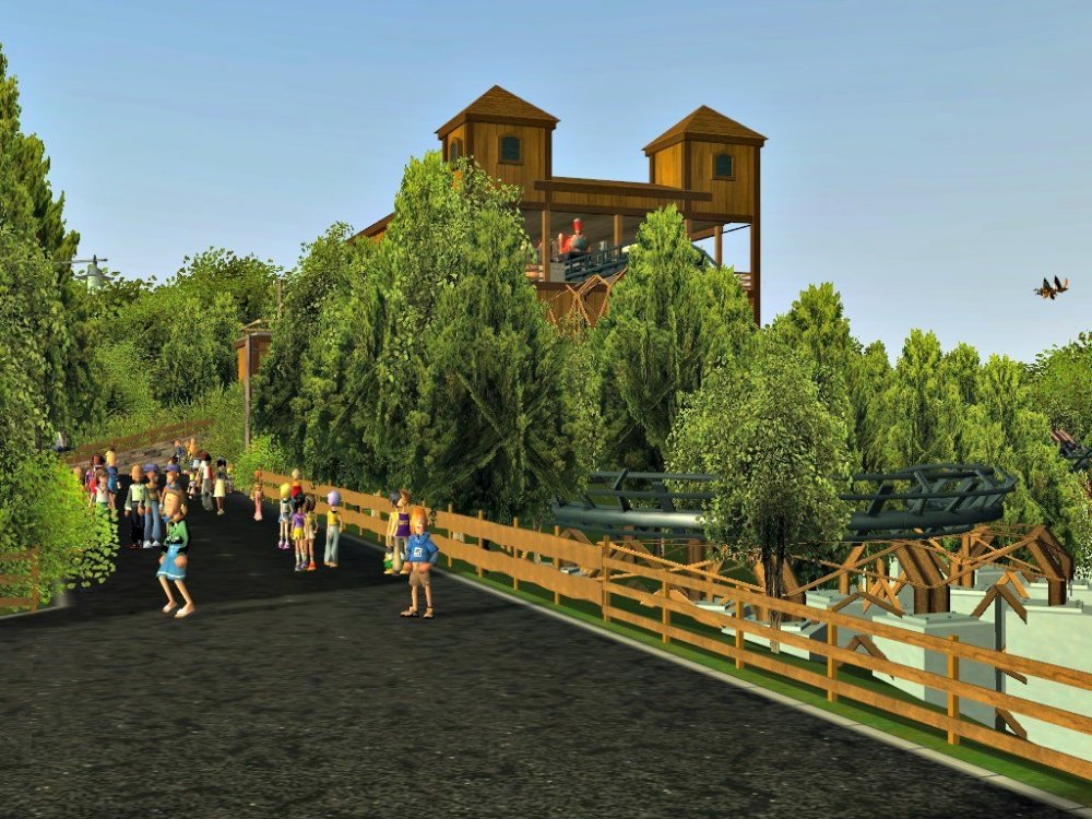 Hello once again! Let me explain the times as of now. The wooden roller coaster became a staple in the amusement park industry at this time period. Roller coasters like the Thunderbolt (1925) and Cyclone (1927) Made crowds roar with excitement at these new thrill rides. Soon after the success of these 2 roller coasters at Coney Island, other amusement parks saw how profitable the rides were to them and began to build wooden roller coasters of their own, trying to replicate the wily popular rides at Coney Island. Appleton Amusement Park-1928 When I got to the park today, I expected large crowds for today's new addition. However, never did I ever expect a whopping 25,000 people to show up! As I pushed my way through the crowd my eyes were locked on what I new was making everybody in the crowd go berserk! The Rocket is our newest addition and our first roller coaster! The Rocket stands at 90 feet tall and almost 2,000 feet long! This is what the roller coaster looks like from the other side. It looks very imposing! Anybody riding The Rocket will scream in fear over how far from the ground they are! A view from the top of the lift hill. The ride starts after exiting the lift hill, dropping riders 85 feet at speeds of 50 mph! After the first drop the cars go up another hill and turns 270 degrees to the right! I especially love how this part of the ride is over the lake. Next the cars travel over two airtime hills. Riders then make a 180 turn over the station. Riders then encounter a series of short bunny hills. Guests from The Shooting Star can see the cars travel through the bunny hills! Finally the cars turn 180 to the left and go over 2 final bunny hills before braking and making a U-turn into the station. This is where the entrance to The Rocket is. Taking the former spot where the Giant Slide used to be. The Rocket has been very profitable! We hope that its popularity continues into the future! Brighter days keep getting brighter for Appleton Amusement Park!