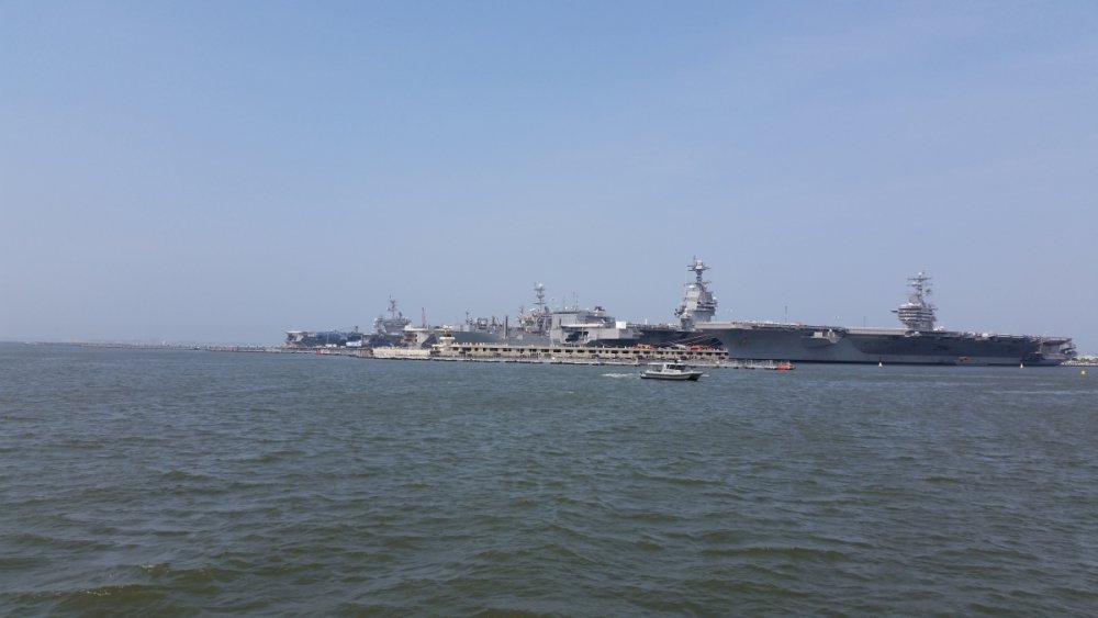 Ha! That was me. I was there with some friends from out of town. We also had a great lunch at the Water Street Grill in Yorktown, too. I had a suspicion! Too bad we didn't cross paths at some point. We actually ended up eating dinner at the place right next door (Riverwalk Cafe I think it was called?). Also, ElvisLuv, great pics! My wife was in charge of taking most of the photos, and ended up dropping her DSLR the very first morning, so she's been shooting mostly blind. Still have yet to go through all the raw images. Overall we had a great couple days down Virginia way, I hope I have the free time to write up a trip report soon. Definitely reconfirmed my suspicions that BGW is one of the best parks on the East Coast. In that area, we did Busch Gardens, Nauticus Museum in Norfolk, Mariner's Museum in Newport News, Jamestown Settlement and Historic Jamestown, Colonial Williamsburg, Water Country USA, Yorktown Battlefield and the the American Revolution Museum there. This was my "Didn't they learn anything from Pearl Harbor" moment, Four carriers in a row. Right to left, Ike, Washington, Lincoln, and Ford.