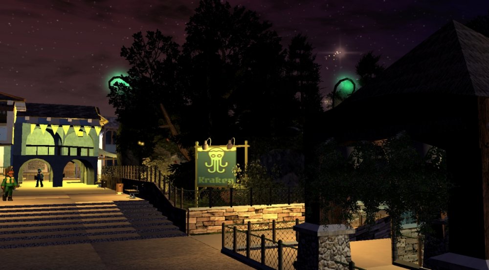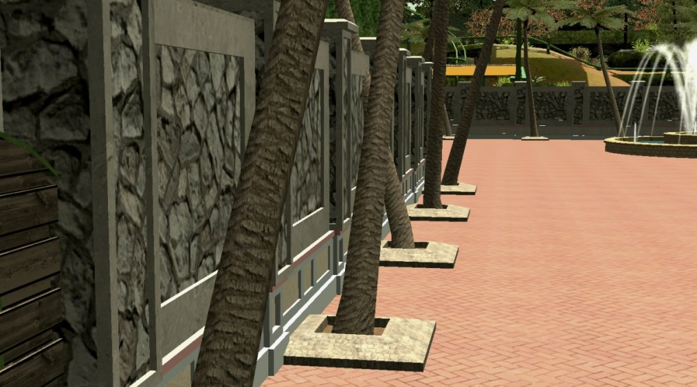 Verona Resort has made some more progress! After testing the water coaster, park officials as well as engineers noticed that the track was too bumpy during the first drop. Park officials decided that it would be best to replace, and redesign the first drop. In a very short three weeks, the water coaster was back, and better than ever! New fire effects were added to the water coaster in certain areas. I think they look great and really give to the experience of the attraction. The Octopus ride now has a name, and is called, 'The Kraken'. As for the pirate ride, that name has also been released, and it is called, 'Lost Treasure'. New billboards were put up with concept art for Forest of Fantasy. From what I can see, the land is almost completed! Also, more effects were put in Forest of Fantasy land and they look great, along with more lighting. After about a month, park officials are saying that the barbecue restaurant is completed for the interior work. All thats left to do is the air vents along with the water piping. Finally, those planters in the park entrance plaza are now being filled with new palm trees. The new drop for the water coaster. No name has been released. Fire effects next to the second drop. I think it fits in pretty good with the theme. More fire! The back entrance into Forest of Fantasy. With concept art! Also, you can see new effects being tested at the back entrance of Forest of Fantasy. Lighting is also being tested. An overview of the restaurant. Some of the new palm trees being planted. -
