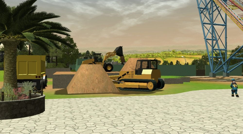Construction on Verona Resort has been going extremely fast! So much progress has been made in the past month of the park construction, and it is looking very positive! A lot of path work has been made as well as our first attraction! The name of the attraction has not yet been released, but it is a spinning flat ride that lifts you up and down and spins you around. The first themed land that is being constructed is a jungle themed land. The name has not yet been released. However, as soon as the first attraction was completed, the construction team quickly built the second ride which is a roller coaster! Again, the name has not yet been released, but it is themed to the jungle with lots of foliage and very terrain intensive. The jungle themed land is not yet complete, but the park officials did confirm a sit-down restaurant with a jungle/tiki theme, so we could be expecting that soon. No news on any of the other lands or attractions has been released. For now, lets take a look at the progress of Verona Resort! (p.s. I would really love some feedback) Some barriers set up for when guests can tour the grounds of the resort when they make their reservations. The first attraction at night... An overview of the spinning attraction. I think it looks lovely. Construction on the roller coaster. After a few weeks, the coaster was finished! The team brought in more lush trees from Oregon for the land. The first backstage area, right between the hotel and the roller coaster. -
