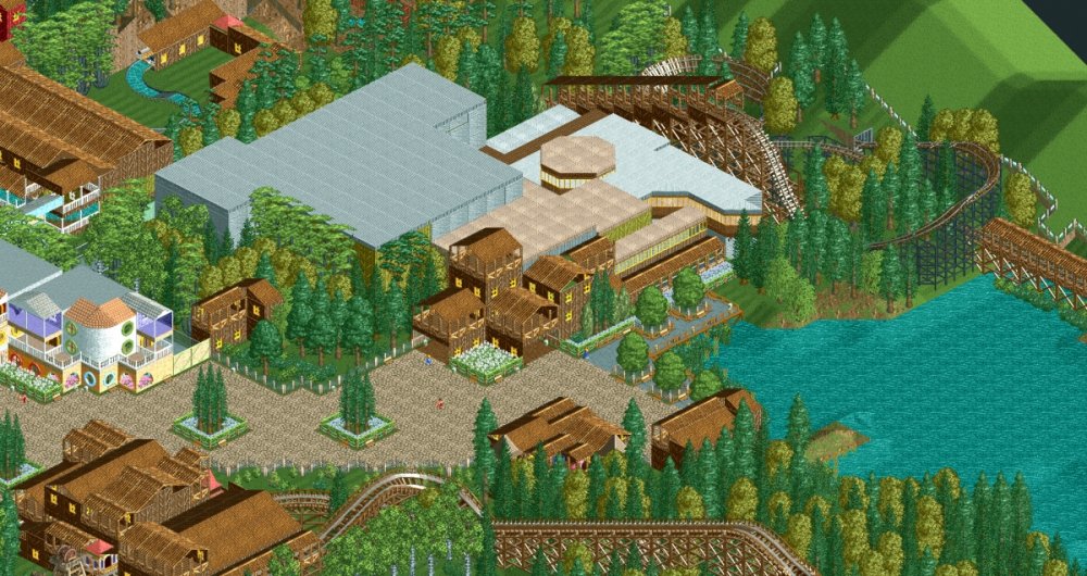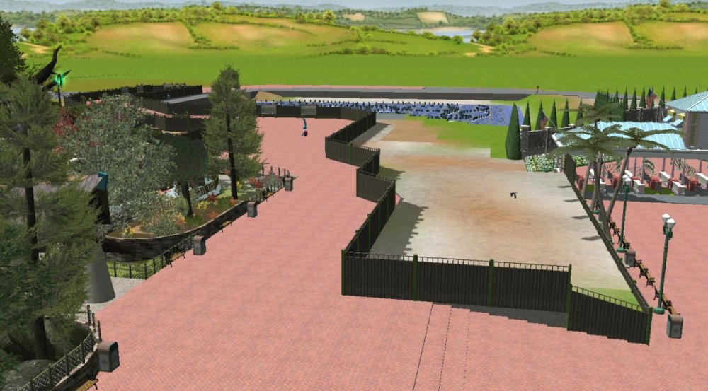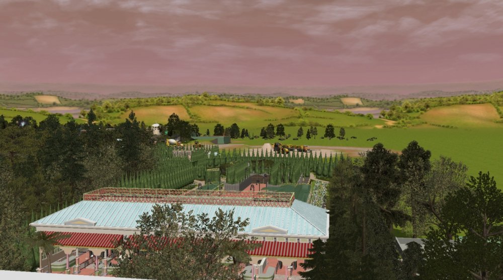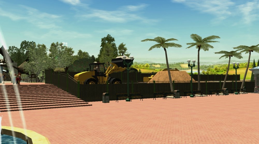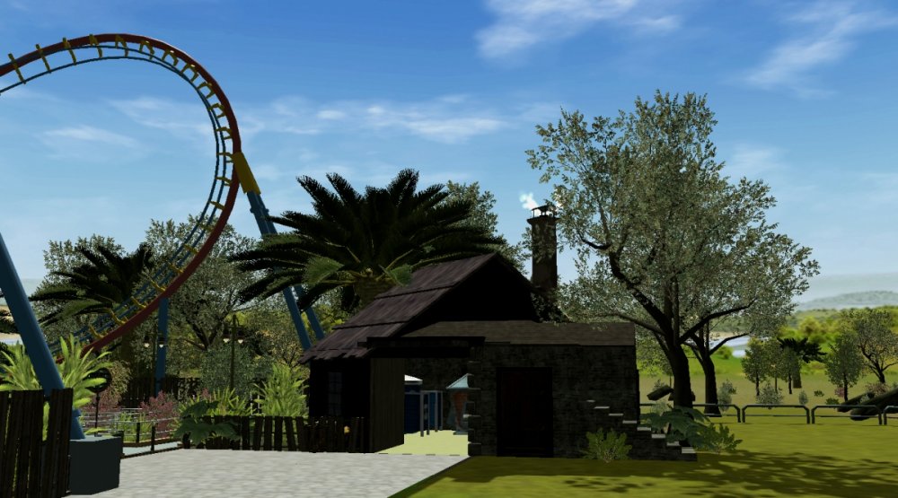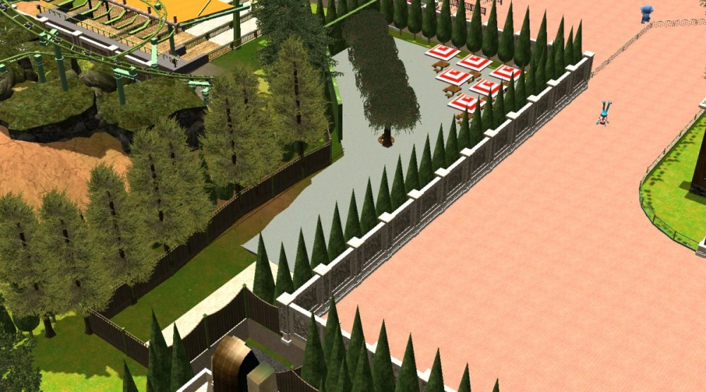 Verona Resort has made quite some progress in the last month! First, the construction team has built more landscaping in Forest of Fantasy, and it really makes you feel as if you are in a magical forest. Also in Forest of Fantasy, new water effects have been installed on the water coaster, and they look very good! Those effects are sure to get the guests wet. No name has been released for the water coaster. Park officials have confirmed a name for the barbecue restaurant. 'Atlantis' BBQ', is a barbecue style restaurant, named after the person who discovered Forest of Fantasy. You will dine within Atlantis' museum which contains artifacts from all of his discoveries. A few backstage pictures have been released by some workers who took the pictures, as well as one from a helicopter. Finally, some construction has started in the land next to Forest of Fantasy. Concept art shows a path that goes straight through the middle of the land, as well as something very interesting... I got the ct from the Park Enhancement Project: http://pep.rct-3.org More landscaping in Forest of Fantasy. Landscaping for Forest of Fantasy seen from the entrance plaza. Atlantis' BBQ restaurant queue. Even more landscaping is being installed on the water coaster. I think its looking really great! Water effects in the first scene of the water coaster. Make sure to wear your poncho! An enchanted forest. Mysterious fairies inhabit Forest of Fantasy. The backstage area is still being constructed, but this backstage area will be one of the larger backstage areas. Another picture of some backstage facilities. A helicopter view of the backstage area behind Forest of Fantasy. As you can see, Verona Resort is using solar panels to bring in some of their energy. Its good to be green! Park officials have hinted at the fact that they will try and incorporate solar panels on almost every building in the resort by opening day. Some concept art has been placed next to some construction fences. The view from the parking structure. As you can see, construction is starting to take place in Verona Resort on another land. -