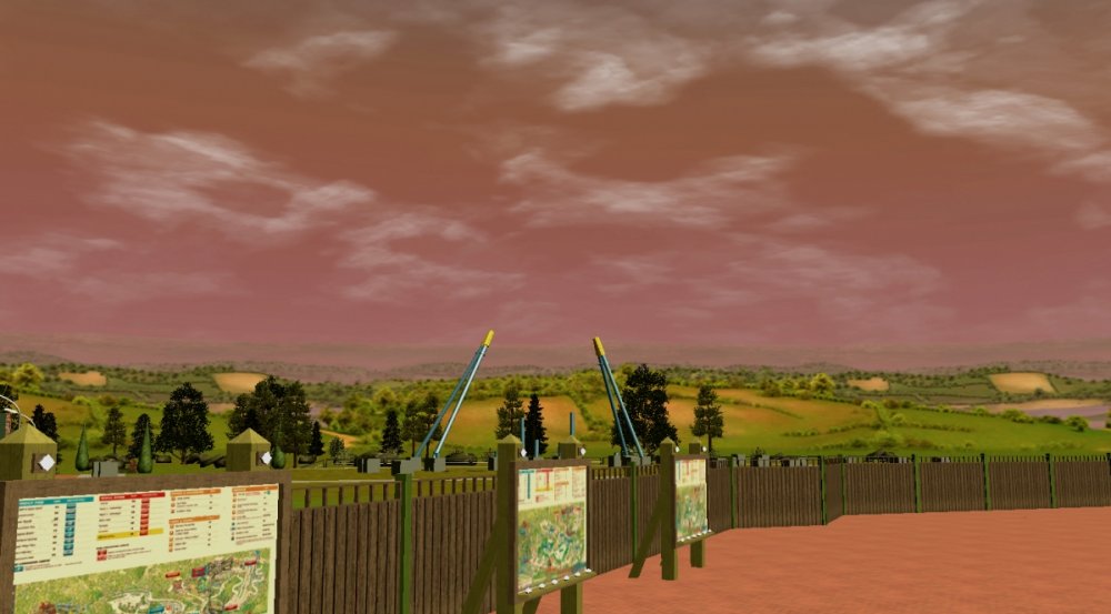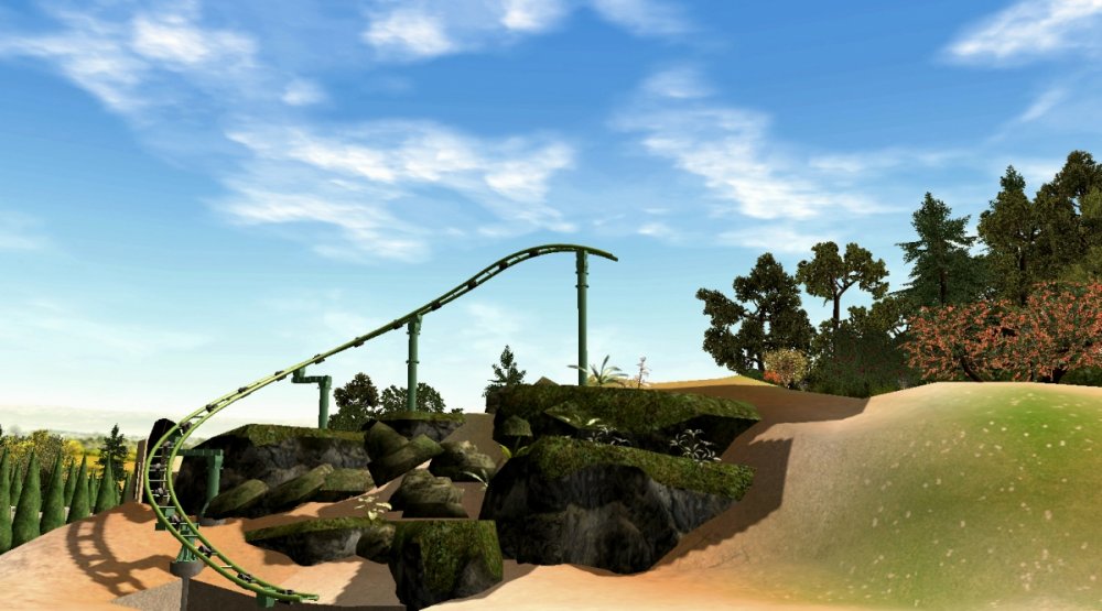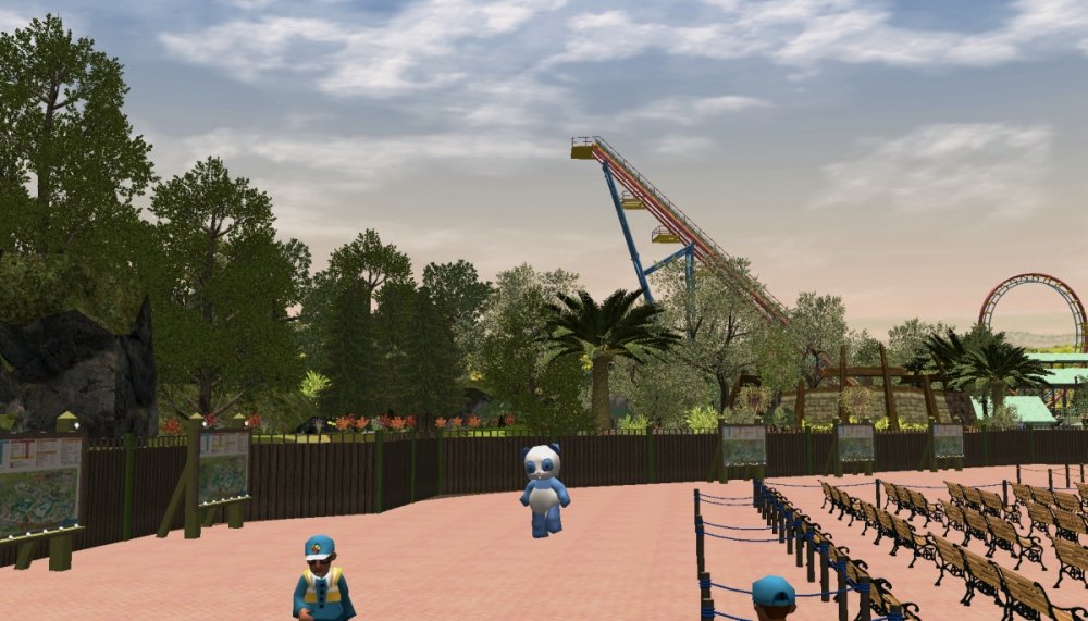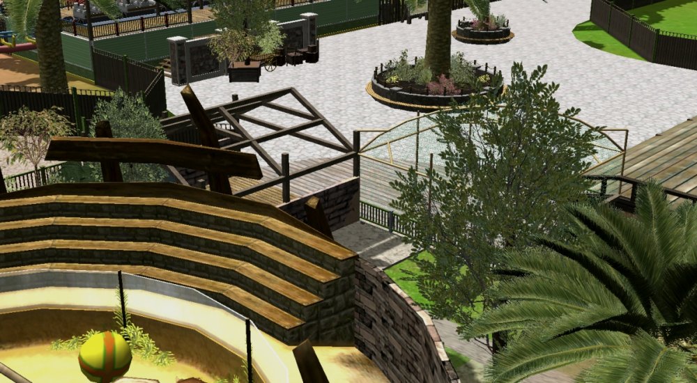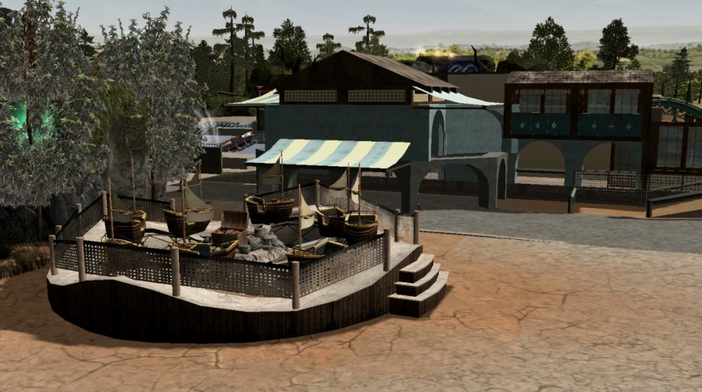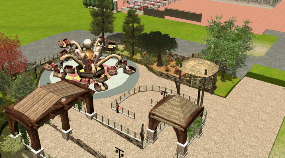 Verona Resort has made quite some progress in the last month! First, the construction team has built more landscaping in Forest of Fantasy, and it really makes you feel as if you are in a magical forest. Also in Forest of Fantasy, new water effects have been installed on the water coaster, and they look very good! Those effects are sure to get the guests wet. No name has been released for the water coaster. Park officials have confirmed a name for the barbecue restaurant. 'Atlantis' BBQ', is a barbecue style restaurant, named after the person who discovered Forest of Fantasy. You will dine within Atlantis' museum which contains artifacts from all of his discoveries. A few backstage pictures have been released by some workers who took the pictures, as well as one from a helicopter. Finally, some construction has started in the land next to Forest of Fantasy. Concept art shows a path that goes straight through the middle of the land, as well as something very interesting... I got the ct from the Park Enhancement Project: http://pep.rct-3.org More landscaping in Forest of Fantasy. Landscaping for Forest of Fantasy seen from the entrance plaza. Atlantis' BBQ restaurant queue. Even more landscaping is being installed on the water coaster. I think its looking really great! Water effects in the first scene of the water coaster. Make sure to wear your poncho! An enchanted forest. Mysterious fairies inhabit Forest of Fantasy. The backstage area is still being constructed, but this backstage area will be one of the larger backstage areas. Another picture of some backstage facilities. A helicopter view of the backstage area behind Forest of Fantasy. As you can see, Verona Resort is using solar panels to bring in some of their energy. Its good to be green! Park officials have hinted at the fact that they will try and incorporate solar panels on almost every building in the resort by opening day. Some concept art has been placed next to some construction fences. The view from the parking structure. As you can see, construction is starting to take place in Verona Resort on another land. -
