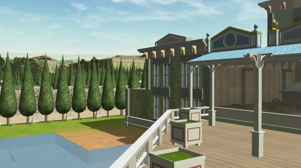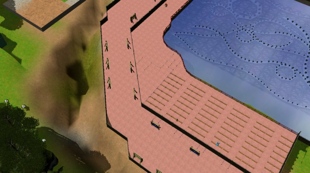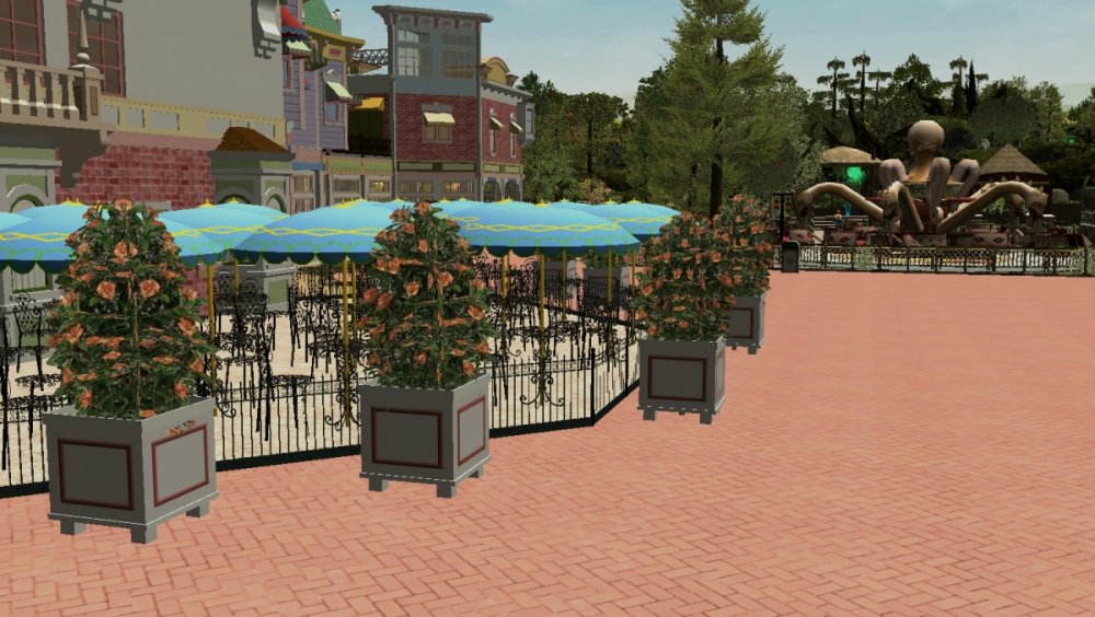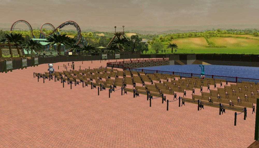 Due to some technical difficulties, my Rct3 game is crashing very often, almost every 10 or 15 minutes. Its very hard to get a good amount of work done without the game crashing. However I am still trying my best to get Verona Resort to opening day! With that said, lets take a look at the update! Verona Resort is continuing to make progress, although slowly. The facades and control room for the water show has been completed, and I am very happy with them! There is extra outdoor seating for the restaurant, which the name has not yet been released to the public. This outdoor seating was added after the facades were complete, offering views of Forest of Fantasy, the African themed land, or the lake. The water show is currently being tested in a different park file, and that is where it will remain for the rest of this project. There has been some talk of a new land, although no there has been no confirmation of this new land by the park officials. There has also been talk that the resort will officially open some time during March, with that being the month of many schools having their Spring Break. The facades have been complete! Some ground has been leveled next to the lake. The view of the restaurant. I think it looks lovely. The restaurant as well as the gift shop. I hope to see more buildings like these! Some extra outdoor seating was added. Some foliage was added to cover up the backstage buildings. The water show is now in a different park file. Hopefully this will keep the game running. This is not an exact copy of the seating that is in the other park, but this seats more guests. 984 to be exact! -