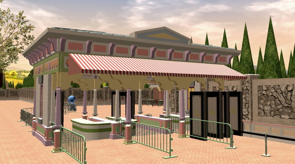Verona Resort has made a lot of progress in a matter of a few weeks! First, we started and completed the garden walk next to The Grand Verona. Next, we redesigned the entrance plaza to make it more efficient, along with adding employee paths. All thats left to do for the entrance plaza is to add litter bins, benches, and lamp posts. While we were constructing the entrance plaza, the construction team started digging up and flattening the ground within the park. Looks very strange. In the entrance plaza, the bag check for hotel guests is complete, along with the ticket entrance. The path that combines both the hotel entrance and standard entrance is completed, however it needs a lot of details to be ready for opening day. No information on the rooms for The Grand Verona has been released, but park officials are saying that there will be three different room designs: The Verona Standard, The Verona Deluxe, and The Grand Verona Suite. We should expect to see some room layouts soon. As for now, lets check on the progress of Verona Resort! The garden walk, which is now finished. The hedges follow all around the path. The environment is very peaceful. The Garden Walk at night. This is the completed building for the bag check for the hotel guests. Very small but efficient. The ticket entrance for the hotel guests. Once you pass through the bag check, the hotel guests will turn in their tickets to this entrance, which leads into the park. The other, one day guests have their own entrance which is completed. To purchase one day tickets, you will go to this building, which is located at the tram plaza. If you are a hotel guest, tickets to the park are automatically included with your stay! Some construction going on in the main park...Wonder what it could be. The construction team hard at work. -