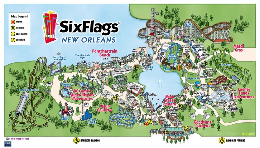 --DATED PRESS RELEASE-- --BREAKING NEWS FROM MAGIC PEAK PARKS-- --02/13/2015-- JAMES LUCAS CEO, MAGIC PEAK PARKS. We are proud to announce that the City of New Orleans has struck a deal with us at Magic Peak Parks to bring a new vision to the abandoned Six Flags New Orleans location. We have asked for a NDA regarding the purchase amount, but will inform you that absolutely no city or state money will be pumped into the park. This new venture will bring back a park that met its end way to soon and hopefully allow us to create the newest tourist sensation in New Orleans. Below we have a drawing of our design for the park followed by info on the park. We at Magic Peak Parks are proud to be apart of this and truly view this as a vital part of our rapid expansion plans." The Original Six Flags Map Our Vision Entrance will be updated to be more spectacular than it was The Jester will stay and keep its name Zydeco Scream will get a new paint job to become Jinx Sadly Mega Zeph is unable to be fixed and we will begin removing this coaster tomorrow, itll make room for the Tallest Wood Coaster in America, Zepher The Parks Logo
