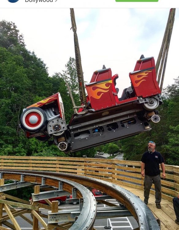 Could be The Willis Family....they performed at Dollywood on Sunday and have a TV show. Would be some decent advertising for Dollywood. Dolly is scheduled to be back in town this Friday to cut the ribbon on the new Lumberjack Adventure at 11AM. From a PR standpoint, it'd make sense to have her officially "open" Lightning Rod while in town. At this point, I can't imagine they'd just "open" it one day without a PR opportunity like that. I did hear they were originally shooting to open it when she was in town for the parade, which obviously didn't happen...so my assumption is they held out for her next trip to Pigeon Forge. I'd be REALLY surprised if we make it through the weekend without hearing SOMEthing from Pete and the Dollywood team if it doesn't open...especially with the "season" kicking into full gear after next week. Could be the Willis crew, I just went to Twitter and searched Lightning Rod Dollywood" and found the tweet, the talked to the guy a bit. With the opening with Lumberjack Adventure, I could see that happening. Kill two birds with one stone and attract double the money. Especially with Memorial Day weekend approaching. Pigeon Forge during that time is equivalent to a Rod Run, maybe worse. If it's not open by Memorial Day, I could see a bit of major backlash happening. Joker opens on the 26th I'm thinking so it's looking like Lightning Rod will be the last RMC to open. -