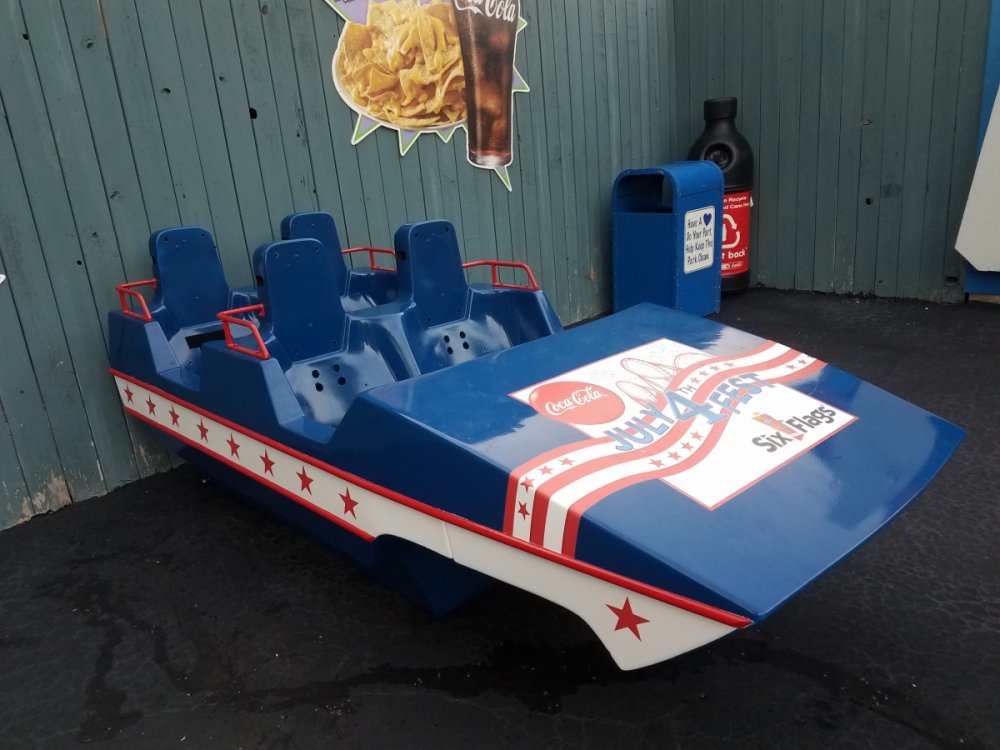 This is sitting near the Log Flume, next to the entrance to the first aid station. It looks freshly painted. Anybody know what it is? Mysterious ride car by the Log Flume -