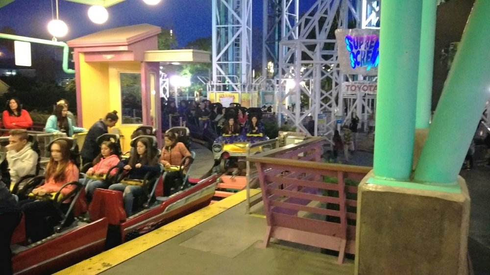 So. Irritated. I checked the special events calendar on the website, and rescheduled my visit from last Saturday to today because there were two special events scheduled for last weekend and nothing for this weekend. So, I get to the park, and... SUPRISE! It's the So Cal Key Club fall rally! 50+ school buses and thousands of high school students who were all very excited to cheer and shout with each other at literally any possible opportunity. Hour long lines for TC, Goliath, Apocalypse, Riddler, Tatsu,X and 45 for Scream and Batman. What is the point of having that stupid section on the website if they don't put stuff like this on it?