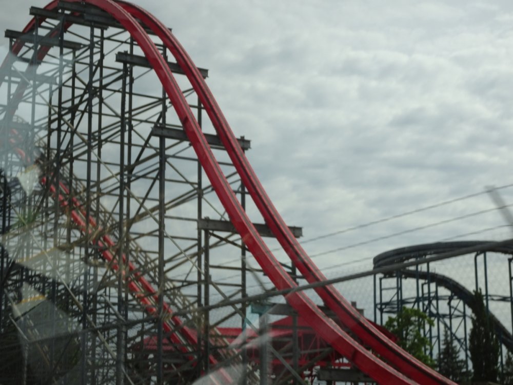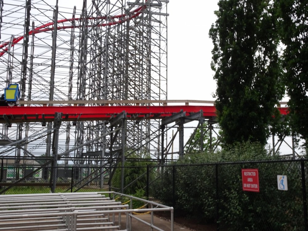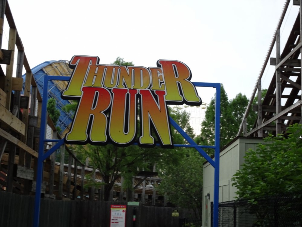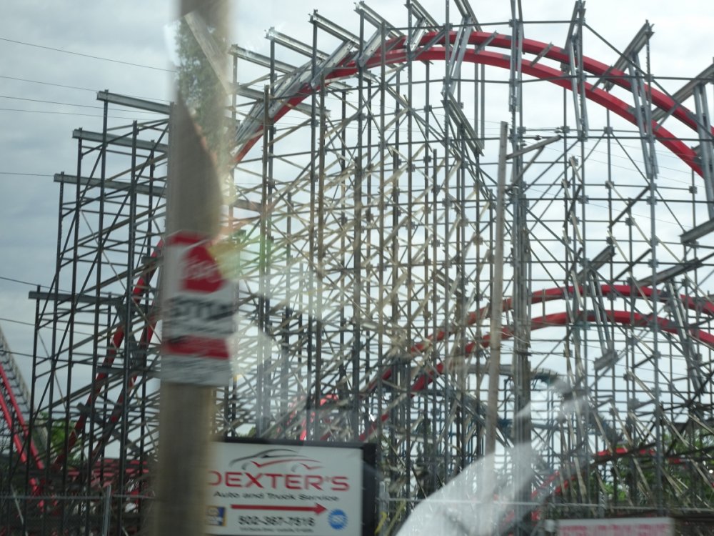 Ha ha, at least it looked up in the end. ________________________________________________________________________________________________________________ Kentucky Kingdom Day 2 As you could probably guess, day 2 looked up from day 1. And it surely did! Ride Count... Storm Chaser - 4 Thunder Run - 1 T3 - 1 (wish it was 0, but the only reason I rode was to get the credit) Something I forgot to tell you-- because I couldn't ride, the nice op that took us into the station actually took our names so we could get in for free tomorrow and be the first on Storm Chaser! So we got up bright and early that morning for about 45 minutes to get the last few credits then we would head over to Holiday World in hopes of getting there by 11:00-11:30 Ugh, stupid tree blocked my photo Ah, that's much better! Today, I will finally get to ride my first RMC Hybrid! Some more Storm Chaser That drop is SEXY! Wanted to get the credit, but I didn't fit in the cars! LAME!!! Been there to the Sea Lion Splash, done that. No need to again Once again, Kentucky Kingdom is a pretty good park! Especially their fantastic staff! RANDOM BUILDING PIC! There's that 5D Theater again Enterprise was still down :'( Staff doing their thing HAHA!!! WE GET TO CROSS THE ROAD WHILE YOU HAVE TO WAIT!! Don't worry, I'm sure you'll find a good parking spot closer to the Expo Center Other side of the park Another credit I missed that I'll ride today Still a pretty funky water ride. The track doesn't look natural, but that may be just me Shining in all it's glory Thunder Run is one of the louder wooden coasters I've heard And guess what? STORM CHASER LIVED UP TO THE HYPE!! It has awesome pacing, a great layout, lots of INSANE ejector air, and a barrel roll drop! Could easily be a 10/10 ride for me, made my Top 5 as a matter of fact! It was so good, in fact, I rode it 4 times! Twice in the front, twice in the back Here's another random Thunder Run shot RANDOM FLUME RIDE (forgot the name) SHOT!! There are lots of random Thunder Run shots here The water park looked interesting as well Unfortunately, even though Thunder Run supposedly got new track and trains, it didn't seem to do anything. Not a bad ride though, for being a Dinn woodie, it was fairly smooth, and there was some nice floater as well. 6.5/10 RANDOM SIGN SHOT!! Meh, I passed on this I don't know what the park was thinking here. It was supposed to be decoration for the rapids ride, but it turned out to look more like either girl food, or a smurf orgy. Take your pick. This was my first SLC. If this is one of the better ones with the restraints, that makes me worried for the rest Because this was just AWFUL! Dear gosh; this devilish contraption shakes like hell, tried to make my thighs extra meaty, and continuously smacked my head back against the restraints. Seriously, this is the second worst steel coaster I've ridden, only under the original Ninja at Six Flags Over Georgia. 2.5/10 Well, that's that! Day 2 of Kentucky Kingdom was only 45 minutes to get to Holiday World, but minus P3 (pain cubed), it was a damn good 45 minutes. See ya soon for Holiday World!