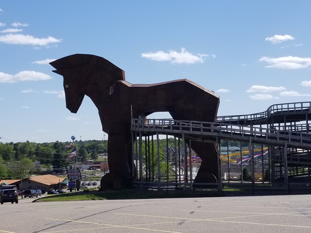 Regarding the Trojan Horse track, what was there was fine, but it didn't go up and around the horse. Does it normally? It didn't appear that was in use, and it didn't have any metal on the track, which seemed to indicate to me it never was. It did go underneath the horse, however. As for Hades, I thought it was great, and well within my tolerance levels for a wooden coaster, when leaning forward. I could tell that it can be rough though, especially if you lean back. Also, I only rode in the first and second rows, so I imagine it gets rougher, the further back you go.