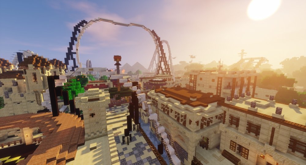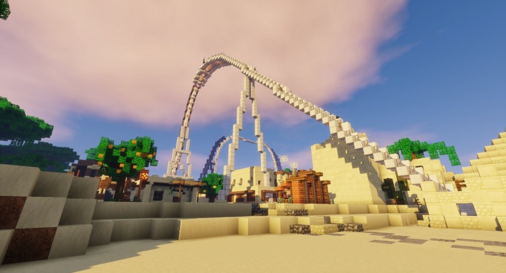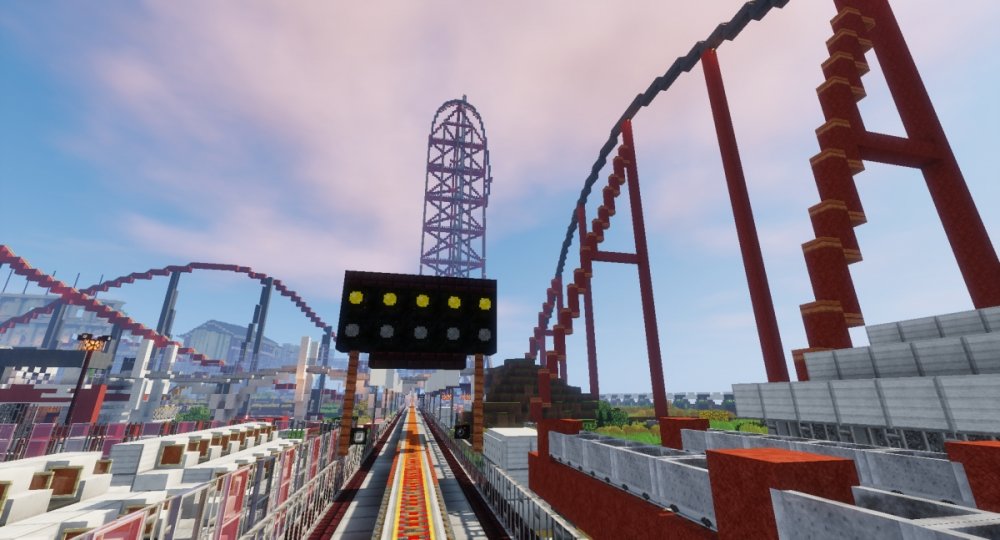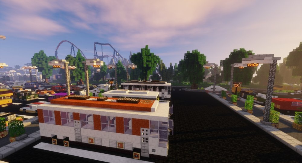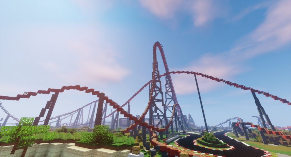 I created a huge Theme Park in Minecraft with lots of real Rollercoasters.