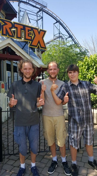 Well, it's better late than never, right? Here's my trip report to Kings Island which took place from June 15th to June 17th. My brother Scott and our friend Travis came along for the trip. This was Scott and myself's second visit to Kings Island as our first was during July 2014. During this trip I was able to conquer all the major coasters at Kings Island after coming over my fear of heights last year. The first time we had visited, I had only conquered Vortex, Invertigo, The Racer, The Bat (Top Gun/ Flight Deck), Adventure Express, and Woodstock Express. But, after our second visit back in June, I was able to realize that all of Kings Island's coasters are very fun and enjoyable! I rode all the coasters and many rides to the point where I had lost count during our two day visit at the park! I had another amazing time at Kings Island like I had before, two years ago. Now, enough of me talking and on with the photos and video! On our way to the Ambassador Bridge in Windsor! Here we are along the I-75 heading through Michigan. The roads have definitely improved since we last came through here two years ago! Here's Scott driving along a stretch of the I-75. Scott and I would take turns driving but, I did most of the driving. Here's Travis tagging along in the back seat. It was his first time going to Kings Island so he was really excited to go! Here's a photo of the construction that was taking place along the I-75 in Ohio. Here you can see where new pavement is going to be laid. On our way back, the pavement was laid and the lines were set. Here we are arriving at Kings Island after a long 8 hour drive! Here's Travis, myself, and Scott in front of the Kings Island sign at the front of the park. Just after Travis and I had gotten a ride on Banshee (Scott had gotten a ride on it later), it began to storm quite hard! All those tables you see in this photo were knocked over shortly after this photo was taken! Here you can see the entrance to The Racer while the storm was passing through. We had taken shelter in the Coney Confections candy shop during the storm. Here is a beautiful shot after the storm. Just as the rain was letting up, Scott and I had taken a ride on Shake, Rattle, and Roll. It was fun riding it in light drizzle. We then took a ride on our favourite ride, The Monster! We had an hour and a half left to ride rides before the park closed for the night at 10pm. Here is a shaky view of the Eiffel Tower after we took our last ride of the night on Diamondback. Here is a blurry view looking below while taking the elevator to the top of the Eiffel Tower just before closing. Here is a slightly blurry view looking down onto International Street from atop the Eiffel Tower at Kings Island. This is looking out to Action Zone at Kings Island. The tall tower is Drop Tower. We had just rode it not too long before we made our way up the Eiffel Tower. We were only able to make it up the Eiffel Tower and ride Drop Tower once during our visit due to the severe winds during our second day at the park. Also, off to the right behind the Slingshot is the World's longest inverted roller coaster, Banshee. It was great other than the restraints were tight! Here is a shaky view of the Coney Mall section of the park. You can see the first drop of the Racer, and the lights on the lift hill of Firehawk off in the distance. Below is a video of the nice nightly fireworks display viewed from the Eiffel Tower. Here's to a start of our second and final day at Kings Island. It sure was a very hot and sunny day! Here you can see the 300 foot tall Eiffel Tower than can be seen from quite a distance! We were up there the night before. It was quite the view from up there the previous night, as well as two years ago! Here you can see people lining up to get into the park for the day! Here are the two drops on Invertigo, the park's inverted boomerang coaster. The coaster appears to hang outside the park near the front gate. It's a fun coaster as Scott and I had first rode it two years ago and have enjoyed it ever since! Here's a photo of Scott taking a photo of myself, while I was taking a photo of him. Here's the photo that Scott had captured! Here is another shot of Invertigo testing just before the park was set to open for the day! Here is a view of the Royal Fountains on International Street. Here is a view of Drop Tower from the ground. Unfortunately it was closed most of the day as it had gotten extremely windy. Luckily we were able to had rode it the night before! Here is another view of the iconic Eiffel Tower at Kings Island. It has been providing amazing views of the surrounding area since April of 1972, when the park opened. Our first coaster of the day was Firehawk! It was a new one for Scott and I! It was a truly amazing flying coaster! Vekoma sure knew what they were doing when they designed this one! We rode it multiple times throughout the day! One thing I did notice is that the green paint on the track was wearing through from when it operated at Geauga Lake as X-Flight from 2001 to 2006. After riding Firehawk, my friend Travis and I took a ride on Flight Of Fear. Here is Scott, Travis, and I after riding Vortex later that morning. It was great as usual! Here is a view of a section of the Coney Mall section of the park. Unfortunately, the Coney Mall sign has since been removed since our last visit two years ago. You can see the Eiffel Tower from mostly everywhere from the park! In this photo you can see Slingshot, Drop Tower, and Banshee. Here is a shot of Delirium. I was able to get a ride on it later that day. It's fun waving to the crowd below when riding it! Here's Viking Fury operating over the Oktoberfest section's pond. Here is another view of the Oktoberfest pond. Here's the floral bell and the Grand Carousel in the background. The park definitely has some beautiful scenery! Looking at the floral clock, you can see that it's almost 12 pm. Diamondback has a splashdown section that doesn't get ri