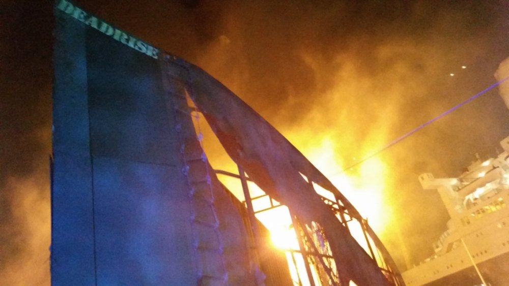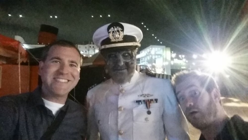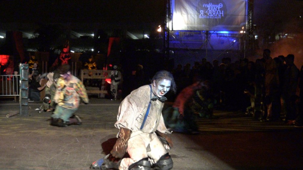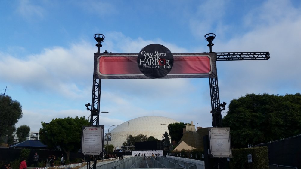 23. Theme Park Review was invited to attend opening day for Dark Harbor at The Queen Mary in Long Beach, CA. With six mazes and creepy entertainment on the ship and in the sprawling shipyard, The Queen Mary serves as a fun backdrop for this Haunt Event. Thank you to The Queen Mary Team for having us attend opening day! Welcome to Dark Harbor! The Captain himself welcomes everyone as the event starts. The complex has quite a unique feel compared to the theme park haunt events. It feels like a mix of a traditional haunt and a County or State Fair. Chop-chop! It’s time to report for duty as the new line cook on board the world famous Queen Mary. All is not what it seems as the kitchens have gone dark and the smell of rank, rotting meat fills the air. From dinner service to the kitchens, the angry spirit of an evil Chef washes back from a watery grave to serve the high-class Queen Mary passengers of 1948. Face the souls of poisoned travelers, gruesome ship staff and of course, the horrific Chef now serving the living to the dead. Let The Feast begin. A series of inhuman crimes tormented the Queen Mary passengers during a routine cross-Atlantic voyage in October of 1948. Follow the lead detective on the scene as he uncovers the evil truth behind one of the most notorious criminals to ever invade the luxury liner: Samuel the Savage. The investigation follows a sinister journey filled with terrifying twists and turns that point to the most infamous stateroom on the ship: B340. It has been long rumored that Mary, the little girl who drowned in the Queen Mary First Class Swimming Pool in 1952, has haunted the dark corners of the luxury liner since her untimely demise. Many experts theorize the haunting derives from Mary’s spirit attaching itself to the little girl’s stuffed toy bear. Perhaps the bear holds the gloomy secrets behind the wicked ghost of Scary Mary and why she still sings her eternal Lullaby. The Grey Ghost rises once again, set out on its annual ghastly voyage damned to its eternal battle on the living. With the fearless captain at the helm, guests will walk among the rusted carcass of the Grey Ghost as its full steam ahead into the flames of war. Those unfortunate enough to be caught in the ships warpath may either salute the captain or like an anchor, sink to the depths of the watery tombs. It’s the night before a dust-covered, rickety old circus opens to the public. Sneak beyond the curtains to unveil the horrors lurking within the shadows of the big top. Hosting a menagerie of monsters and sinister creatures, the one and only Ringmaster returns with unadulterated and unbelievable horrors for all who step inside Circus! All Aboard! A phantom coach forces the Queen Mary’s original ship builder to relive his wicked wrongdoings to shipyard mates, Scottish brethren and plagued family that led to the Iron Hell his soul rots away in. Follow the spine-chilling path to an evil sea witch where a deadly pact was made spawning the horrific half-metal, half-creature known as the Iron Master. In addition to the mazes, several variety acts were scattered throughout the shipyard. Walk-around characters were also in large supply. The most unique offering was a "slider" show, which showcased this unique ability in an incredibly entertaining way! Not sure if that smell in the air is fish or fear... The Captain extends a formal invitation to visit from now through November 2nd on select nights! https://www.queenmary.com/calendar-of-events/dark-harbor/home/