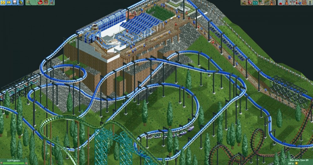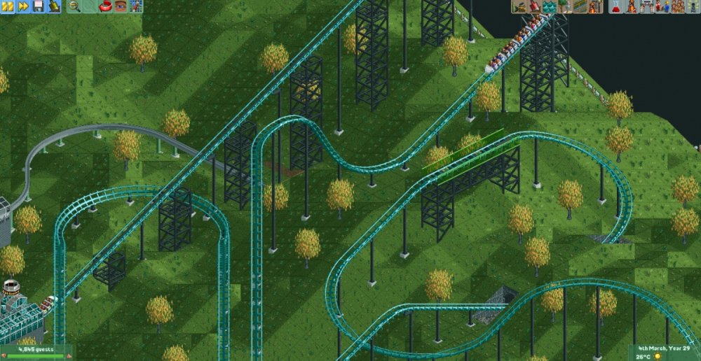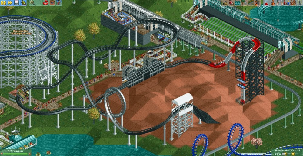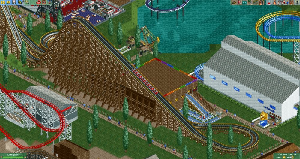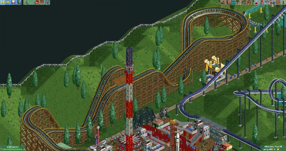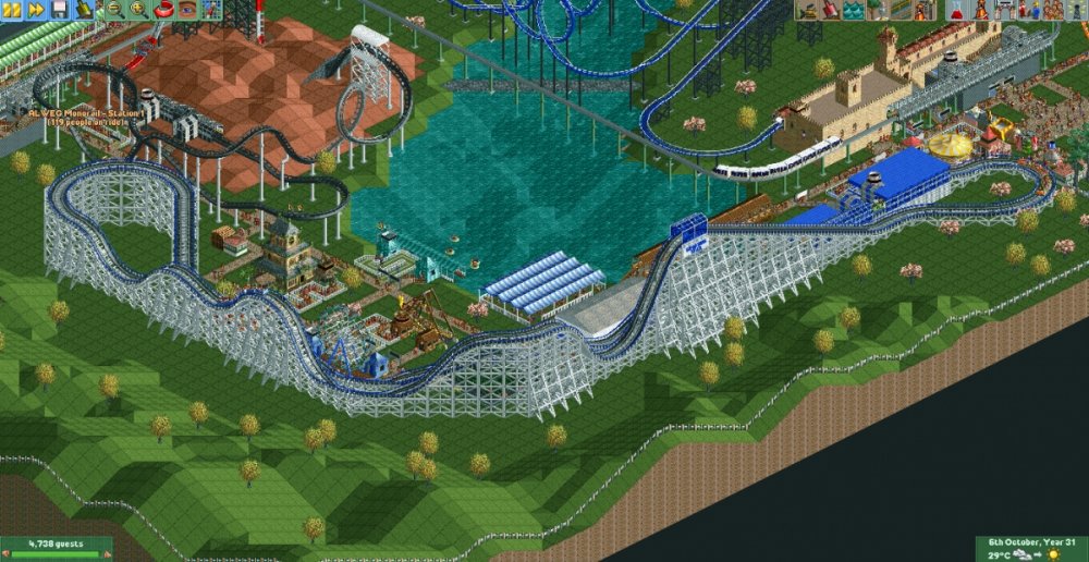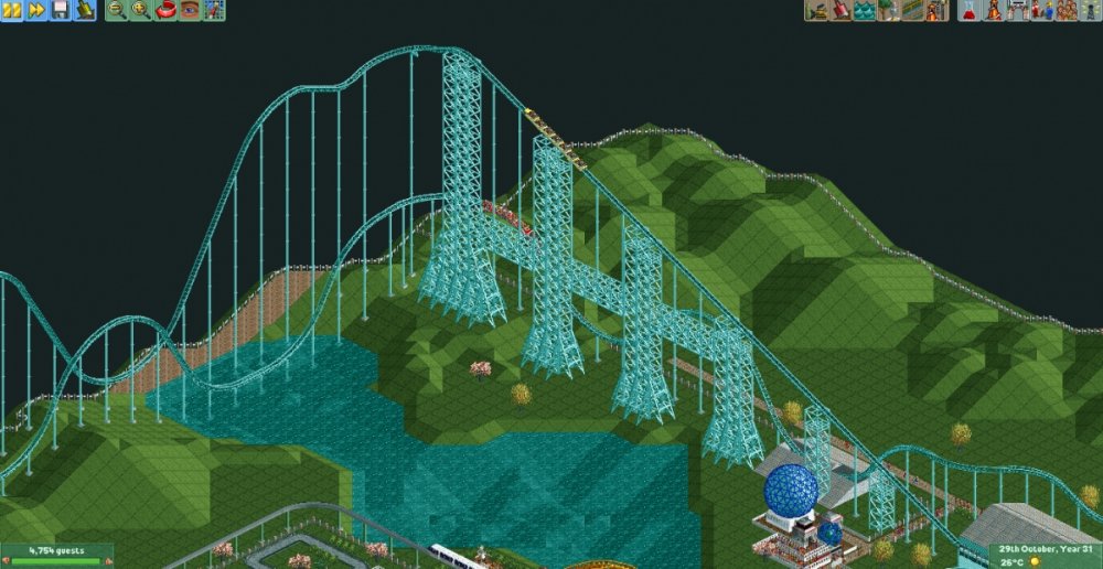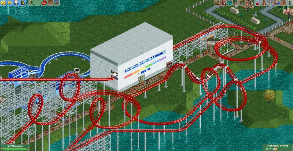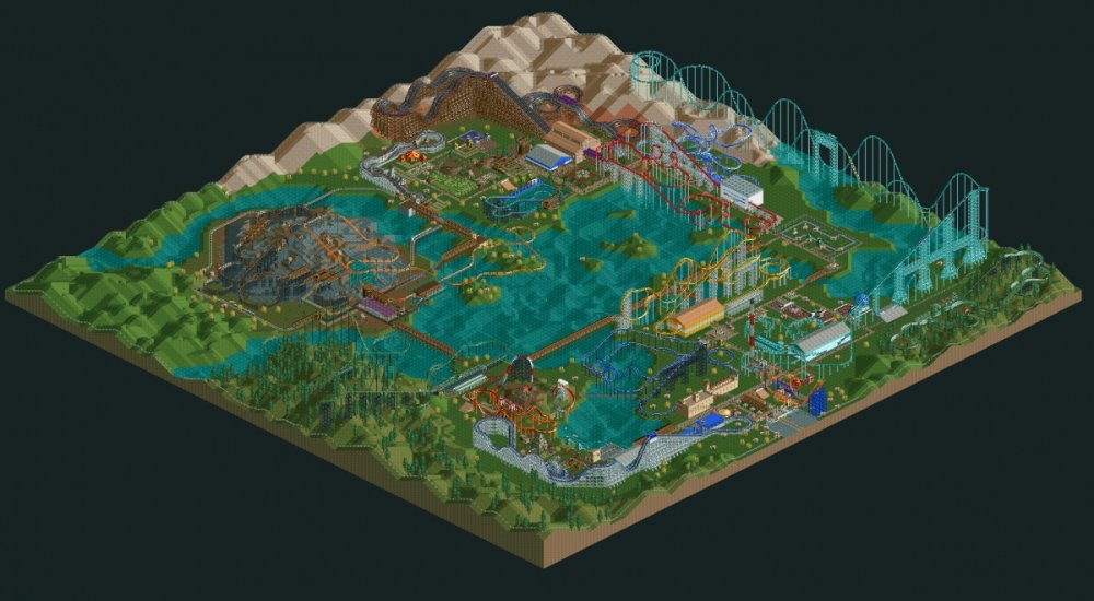 Hey all! I've recently discovered OpenRCT2, and I realized how much I miss my elementary school days of coaster building. So, after two weeks of experimenting, two park versions and being stuck with a laptop that's maxed out by RCT2's graphics engine, I became very proud of my designs and wanted to show them off. So I'll skip the fluff and get to the good part - without further adieu, here's the coaster roster of Rainbow Lake Amusement Park!
