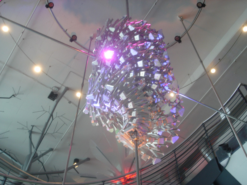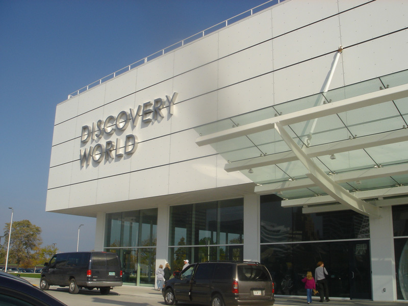 On my four-day weekend, our family decided to take a visit to the newly-built Pier Milwaukee - the new destination for Discovery World (previously at the Milwaukee Museum). Because the place only opened on September 30, Pier Milwaukee is only 60% completed. This was a bit of a let down, as there was a LOT of dirt and mess inside with construction going on almost everywhere. I brought my handy 5 MegaPixel camera for your enjoyment. Get ready for some SERIOUS scientific-geeky awesome junk. Oh yeah, there are some pictures of fish, too. Awesome bendable light-up wallpaper stuff. I think it's called "cell-something". Thanks for reading the TR! I hope you enjoyed the tour of the new "Pier Milwaukee". Here's something to think about - each of those pixels are spaced about 4 cm apart. The size of each one is probably 2mm x 2mm. None of the pixels are grouped together. Cool, huh? See? Sketches and plans! "Electric Jungle" wasn't quite finished, so for now they are showcasing possible exhibits. These included organic cars, sketches and plans for the finished "Electric Jungle" and many other things... Sweet... palm trees - they're metal and polyester. I love it. EXACTLY what this one does. Except this one is much cooler because it's shiny and has over 100 LED spotlights shining on it. There was an AMAZING sculpture called the "Double Helix Sculpture"... whatever that is supposed to mean. Remember those plastic spheres that collapse and expand? What was running through my mind? "Oh dear Lord, PLEASE DO NOT LET ME FALL THROUGH!" Robb's waterfall made Kathryn VERY happy. These are Robb's friends. This breed of fish has a name, but let's just call him "Robb". Time for the aquarium! I must say, I was REALLY disappointed with the size of the entire thing. The fish inside were only native fish (yay, boring lake bass!), and the aquarium literally took about 2 minutes to walk through. This thing is a BEAST! Ever wanted to fulfill your dream of sailing the seven seas? Think again. Here is the REALLY cool ship! It is literally FLOATING on the second story of the building. Behind the large atrium is a neat looking "learning deck" which has stadium-style seating and a stage. Here is an obligatory shot of the construction going on beneath the 100-foot ship on the second story. This multi-level sculpture will feature all of the great lakes and teach about agriculture (from what I remember reading). Awesome wave-machine thing. One of the few newly-created things for Discovery World. The day started out VERY gray and ugly, but turned into a great, sunny day. Too bad it stank like crap while outside. The main hall is created to look like a boardwalk; in fact, slide back the glass walls and it IS a boardwalk! We arrive! Because we had TWO entertainment book cupons, our family split up in order to use both. Sneaky, eh?