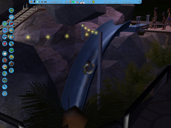 14. *UPDATE* We visited the park again, and luckily it wasn't too crowded. I got a chance to ride on all of the rides and sneek a peak at all of the new construction and things! Shiptrap Island is really starting to shape up. When I first came, it seemed like they just stuck a tropical themed waterpark in the middle of nowhere. However, as construction goes on, all of the little details are starting to make a big impression. And to finish it off, a photo of The Edge at night... it's pretty cool flying through caves when it's pitch black out. It basically drops about 40 feet and does a CRAZY airtime ramp at the end... you fly off of the slide before the slide actually ends. Then, we went on "The Edge" or whatever it's called... That is a VERY intense slide. Although it only does three turns, the final turn almost flips you all the way around the tube! We're gonna ride the rock slide! Attendence starting rocketing up by about 11:00. But the main reason we came was to RIIDDEEE THE WHIRLPOOL!!! (hey Cameron.) Snazzy! Soon, we will be able to stay the night! The waterpark is nice and empty in the morning... well, that makes sense since it was FREEZING! Check out the new entrance building! ...yeah.
