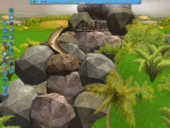 1. My main goal this time was to create a terrain-hugging coaster, along with a bit more complex supports. I spent more time on the supports and building than I did with the track! Tidbit: I didn't use the track smoother or AHG on this one.