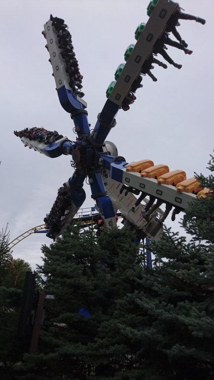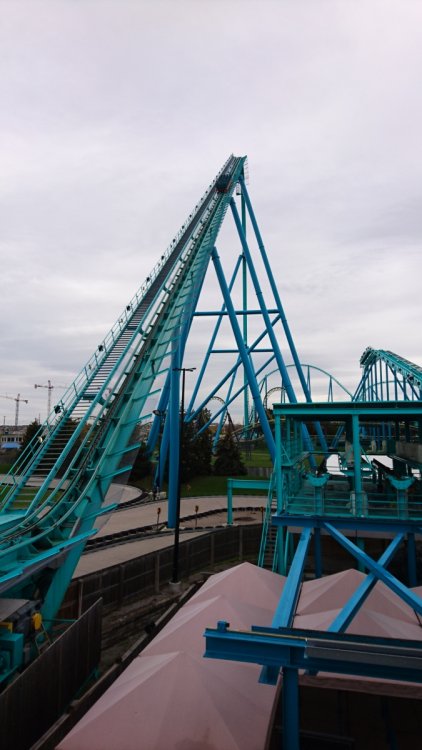 I posted this in the Canada's Wonderland thread, but thought some more people might enjoy this. This past Sunday morning, my girlfriend and I decided we should go to Wonderland, as it would definitely be our last chance for the year. We didn't hustle out the door to get there for opening, as we didn't expect the park to get too crazy on such a cold day; I think the highest temperature reached around 9-10 C (50 F). So we made a nice big breakfast of BLTs and scrambled eggs, watched an episode or two of the office, then bundled up in a couple of sweaters, grabbed some gloves, and hit the road. We got to the park around 11:30 or so (it's a 35 minute drive for us), and while plenty of people were showing up at the same time, the parking lot was well under half full. Once in the park we headed straight for Leviathan, hoping it wouldn't be too full of a line, which luckily for us, it wasn't. Seriously, this line never went behind the station any of the times we checked it out, and our first wait was 10 minutes, max. We got on somewhere in the middle, I think 3rd or 4th train, as we have great rides on this no matter where we sit. We were shivering before we even went down the first drop, but I was pumped, I love that "Oh shit" moment cresting the hill. The ride was great. I was expecting it to feel sluggish or something in the cold, but it definitely DID NOT feels slow. By the end of the ride, I could barely see, my eyes had watered up so much from the cold wind our faces. It was such a great ride that we just swung right back around for another short wait, this time getting to jump ahead a bunch because they needed two riders. We got seated second from the back, and this was even better. Seriously, I love that drop in the back, just wild. An epic climb to begin the day. After our two rides on Leviathan, we decided to do something we'd been putting off for a while: Wild Beast. Earlier in the season, we got the absolute shit kicked out of us on this ride. It was pretty startling, as we'd ridden this a dozen or more times in 2016, and while we had some rough rides, never anything so bad as at the start of 2017. Not quite so epic a climb. I'm pretty sure we must have been in a wheel seat that time, which I wouldn't have thought of at the time. So we made sure to sit in the front seat of our car, and away we went. Honestly, it was much better this time, and it was quite an enjoyable ride. It was rough in the way you expect an old woodie to be without being painful. We were glad to have ridden it again, as it was always a regular part of our roster before this year. We'll keep giving it a chance next year. Seriously, we felt the way this guy looks after our earlier rides this season. Next up was our favorite flat, and really, one of our favorite rides overall. This beauty right here. Seriously, we love the HELL out of Shockwave. Even when they don't shake up the ride cycle, you don't really get the same ride twice, and it's usually one of the crazier rides you can get in the park. This particular ride was no exception. We started out going backwards, and did some crazy backwards soaring and flipping. But really, my favorite thing with this ride is when it changes directions and launches you up and over. Just the best kind of ludicrous madness. Next was another one of our favorites that we ride 95% of the time we go to the park: Vortex. This ride isn't super intense, but damn is it fun. I love going up the side of the mountain, and then back down the other side. I love the consistent speed, I love diving over and around the pond and fountain, and I love the consistent speed. This ride is fairly tame for us now, but is just pure fun. We also have some fond memories of this ride, which we always have a laugh about once we hit the break run. In September we brought my brother and sister-in-law to park with our free bring a friend passes, and we all rode Vortex. Well, my sister-in-law was screaming like a mad banshee the whole time, which was absolutely hilarious to us, and was the best ride we ever had on Vortex. Seriously, we couldn't stop laughing. So we always remember that on Vortex, and it always gives us another fit of the giggles. This year we've been having bad luck with our visits. Most of our visits have been on really busy days, so we tend to avoid rides that slow-moving lines. This has meant that some of the rides we really enjoy have gotten less love this year, and so we wanted to make it up to them, and one in particular. This beautiful bastard. Here's a stock image, since I forgot to snap a picture. The operations on this ride are usually pretty slow, and as much as we love it, it takes less priority than rides like Behemoth, Vortex, Shockwave, and Leviathan, so it often gets skipped. Not this time. The line was prettty short, so we only had to wait two cycles before we got on. I really enjoy this ride. Another ride that gives a very different experience depending on where you sit. I know it can give some pretty crazy air where it feels like it's gonna launch you into the sky, which is great, but I actually prefer the seats that have you staring straight down at the ground. I find that damn thrilling. This ride we got some pretty wild air, which is the ride we get less often, so I was good with it. Glad we got on it one more time this season. And then it was time for my most loved ride in the park, the ride that I think of when I think airtime. The massive beast of the land: This line had actually gotten fairly long relative to the other lines we'd seen, and we waited probably about 25 minutes, our longest wait all day along with Shockwave (which is always slow as shit). Even given the length of the line, this felt slower than normal, and it was no wonder. The operations were not so hot, and all three trains were stacking almost every time. The entire time we were in line, there was only one dispatch that happened within mere moments of the currently running train leaving the MCBR. It wa