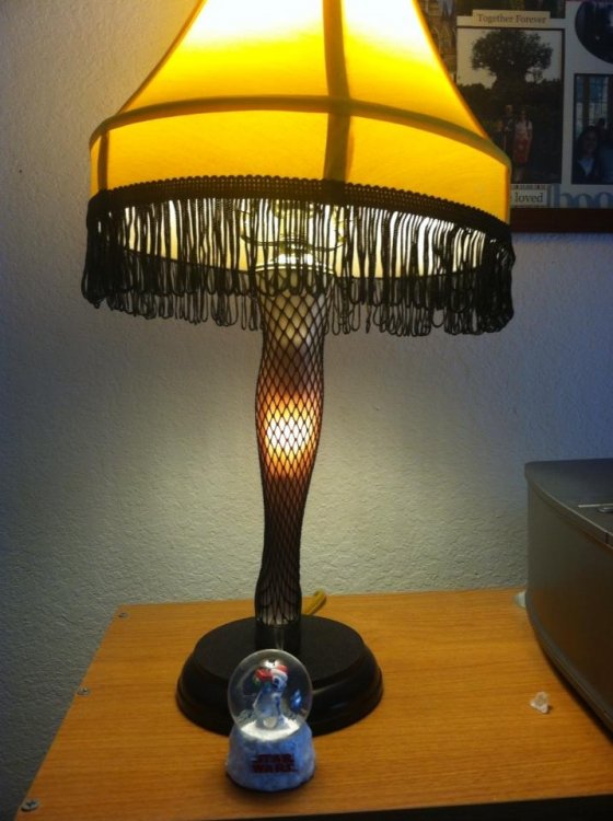 Holy crap ... I apologize to the rest of TPR but nothing is going to top my gift. Thank you to the amazing Kristin Connolly!!! I've decided that this needs to be my new desk lamp as you'll see in the pictures below. If the lamp wasn't enough, I got an awesome R2D2 Christmas snowglobe. That will go with the Xmas decorations when they come out later this week. It's a MAJOR AWARD!!!! The snap of a few sparks, a quick whiff of ozone, and the lamp blazed forth in unparalleled glory. Oh, look at that! Will you look at that? Isn't that glorious? It's... it's... it's indescribably beautiful! It reminds me of the Fourth of July! -
