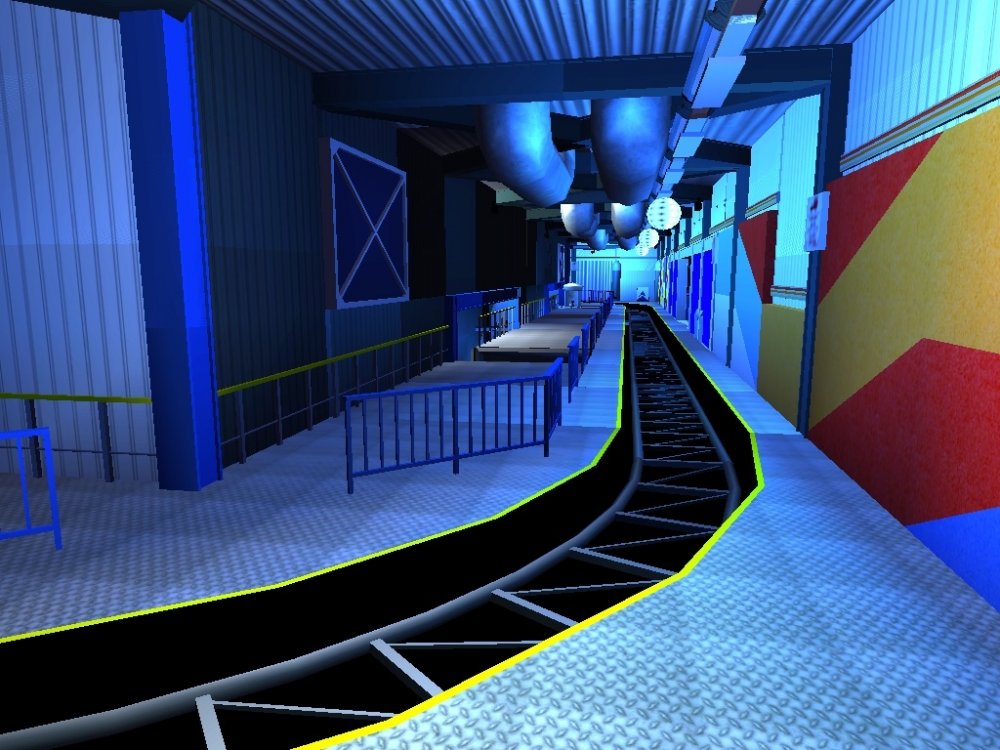 This is a Accurate Recreation of the Indoor Coaster Chaos that Operated at Opryland USA in Nashville from March 1989 to October 1997. https://www.youtube.com/watch?v=tvjA7y2kt7Y Chaos sign pointing towards the ride Chaos Main Building Access 2 Control Level 1 WARNING Emergency Door Only Alarm Will Sound 1 Train, 40 Cars = 80 passengers