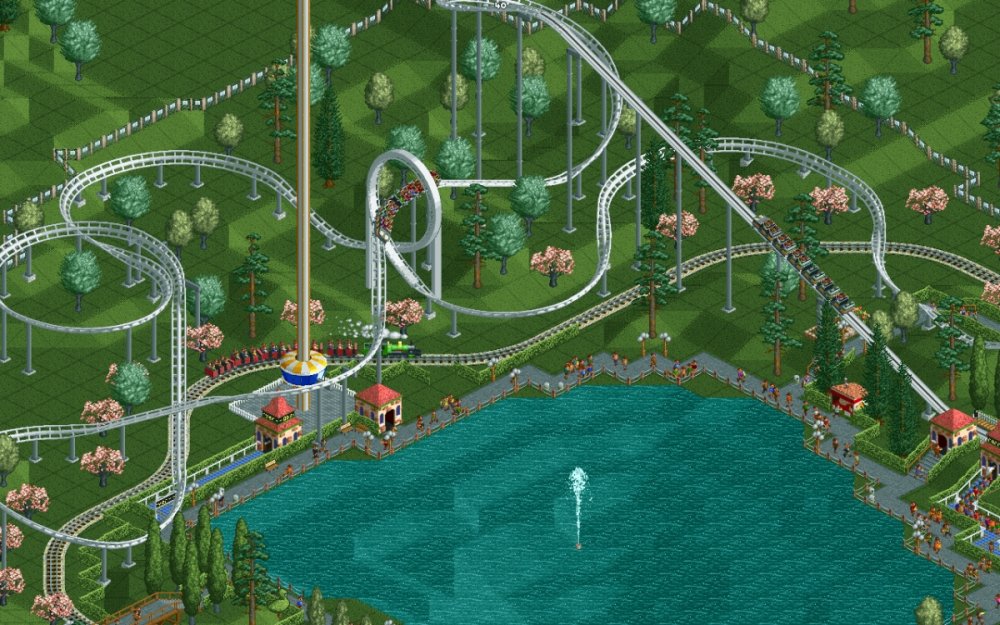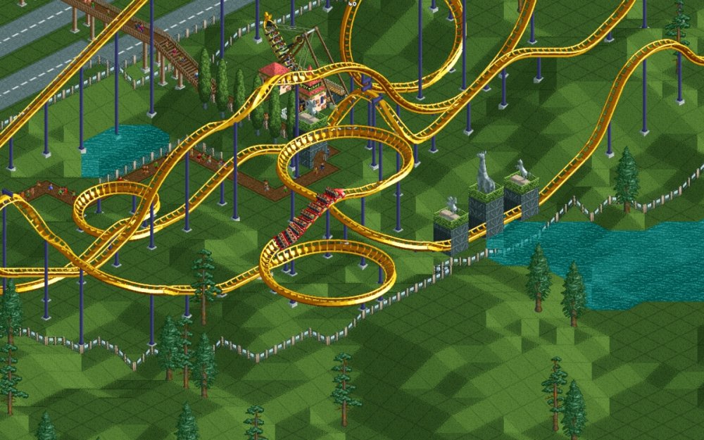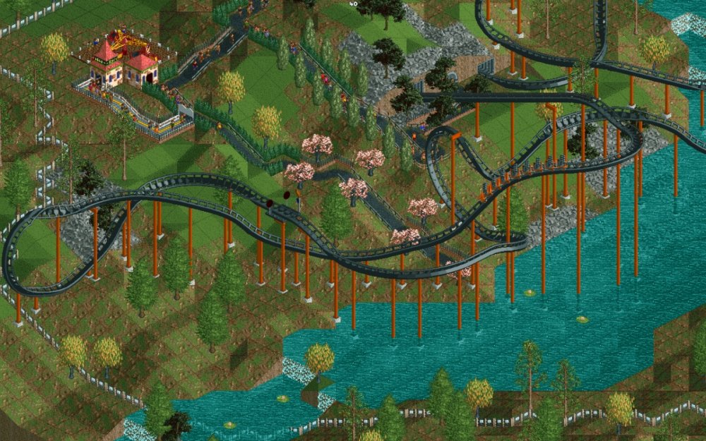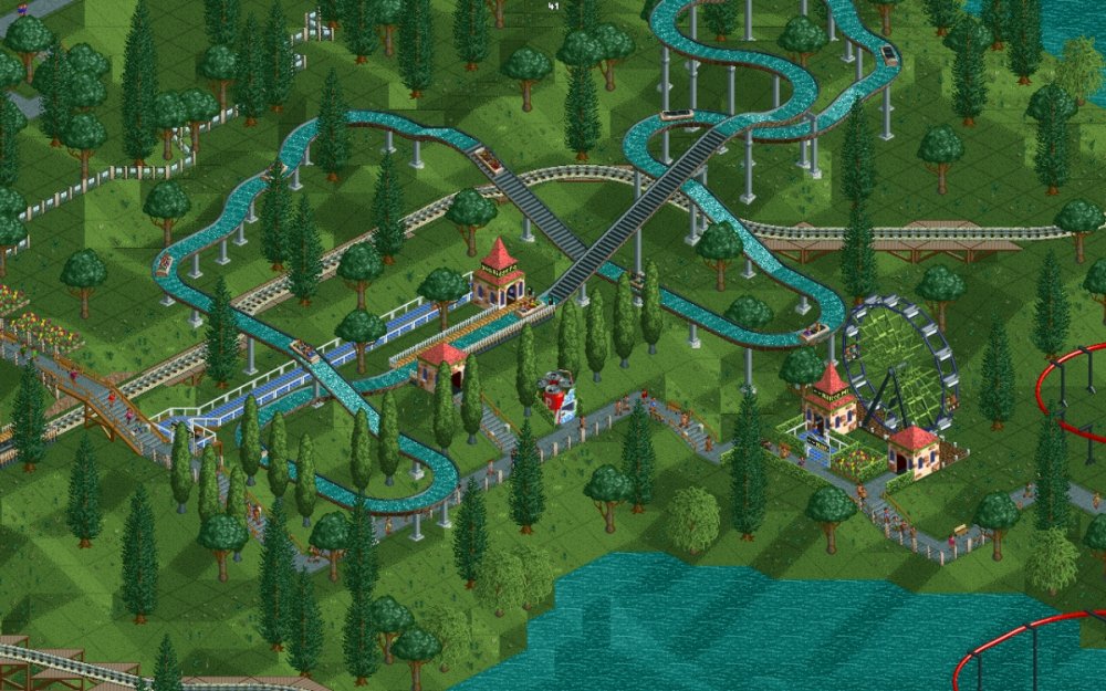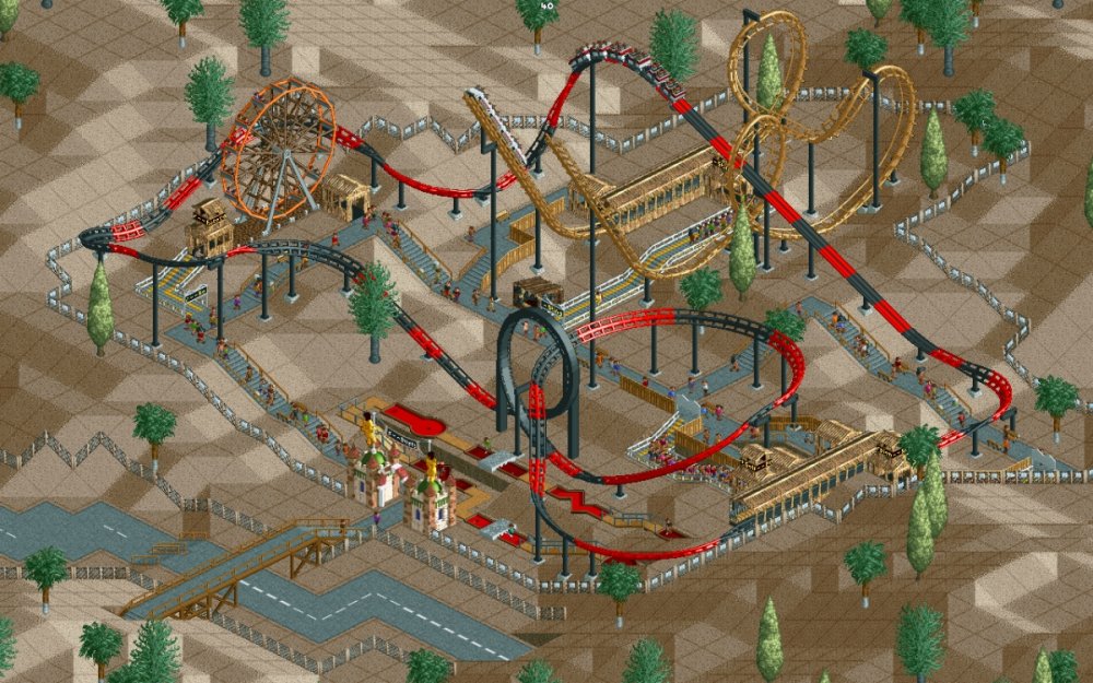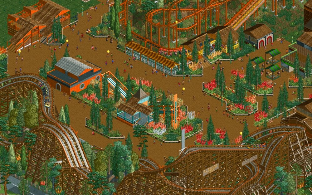Hello everyone! This is my first thread along the lines of roller coaster games. Some may know me, and some may know that I've tried many times to finish a park like this, and it seemed to lose me inspiration. So, I've decided, this time, #11,00, to finish something and make people happy. Like Terry inferno's Brookwood Gardens, this will have narration and will be continuously edited week/by/week. **El Grande** - 1987 In the mid stage of this park's life, around 1985, plans for a new area arose. It was foretold to bring many new interesting rides and attractions. The park officials took a poll on opening day to see whether a general theme for this area would come to coherce. Opening day saw thousands of park daredevils and little coaster enthusiasts to the park. At the time, four roller coasters existed along with many attractions. Off of one of them, you could see the vast expanse This would arise four choices for the new area. Thousands would come from all over the world. At the end of the season, the poll votes were tallied up and the four choices and it was shown that option number 3 - a spanish themed area, would be the park's new themed area. Statistiques were received and 25% of the votes would go to each theme. Spanish with 24,798 would win by just over a hundred more than a rome themed area. In early 1986, vast amounts of rumors befell the park as a new roller coaster had begun to go up. Many speculated on what it would be, and a few were right. CCI, or Custom Coasters International, had contracted the park the plans for a large wooden coaster to go up in the corner. It was suggested that the coaster be above 3,500ft and 110ft tall to outdance the four coasters at the park. Soon in August of 1986, the coaster's layout had been decided and the work had begun. It wasn't very long before a name would come out of dust to name this behemoth wooden coaster. Another poll was taken among several names for the wooden coaster including "Nitro," Behemoth," "Titan," "El Grande," and "Suedo." It was quickly realized that El Grande would be the name. Opening day, on May 5th, 1987, El Grande would open to the public. A record amount of people showed up bringing the most on record from the park from 13,400, to 17,800. Sadly, the only pictures of the behemoth prior to El Grande's change of paint do not exist after the fire that burned down the park's picture chamber. **Butterfly** Along with El Grande, opening day saw one more attraction to the park. Something called a "Sunkin Heedge Gmbh" was added. While the overall reviews were good, the small attraction dubbed 'Butterfly' now has a very small reputation. _______________________________________________________________________________________________________ More to come soon!