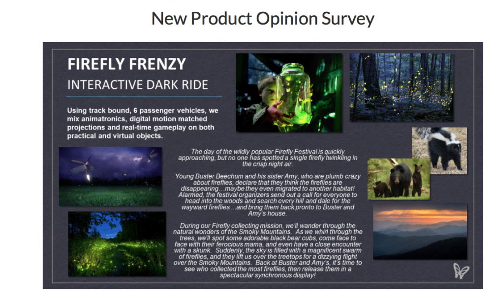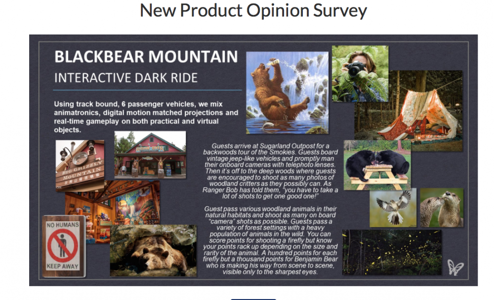 Dollywood Discussion Threadmckayj93 replied to crispy's topic in Theme Parks, Roller Coasters, & Donkeys! I got a survey from Dollywood about new options for a dark ride and new festival ideas. It first had you rank between a traditional dark ride, a flying theater attraction, and a interactive walk through experience. It then had you go through about 5 themes for the traditional dark ride. Based on the themes this sounds like a Phase 2 attraction for Wildwood Grove. Themes ranged from bears, fireflies, counterfeit money maker, map maker, etc. They also had detail about a new Christmas show that was a orchestrated candlelit experience with the Nativity story, and a daily Summer parade (looked Wildwood Grove themed). I can upload screenshots I took if anyone is interested.