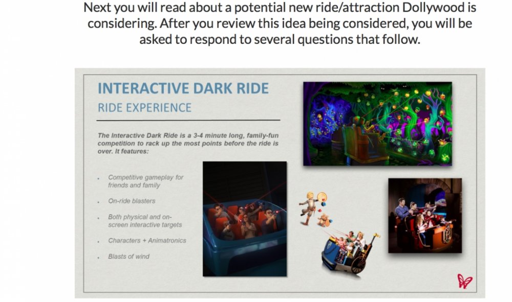 Dollywood Discussion Threadmckayj93 replied to crispy's topic in Theme Parks, Roller Coasters, & Donkeys! I got my survey (dark rides) last Thursday.