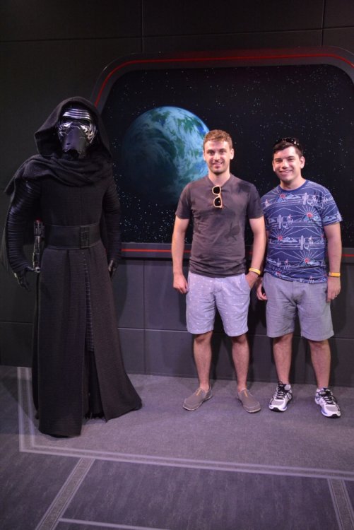 1. ^He didn't like the way his hair looked in some of the pictures (seriously) but he said it's fine to repost them. Memory Maker plug...the magic shots are so much fun. Getting a picture with Pluto is a must for every trip! We met Mulan for the first time and she was really into her character. It was also our first time meeting "simple" Belle I think the magic shots are one of the coolest Memory Maker bonuses...you don't know what you'll get until you see the picture later (or cheat and look at trip reports). Mandatory castle shot Our MNSSHP costumes Our Space Mountain pilot was a little drunk, so we had to get another... ...and she was on ecstasy. Overprotective Dad senses something offensive in the Briar Patch below and has to protect little Jimmy's young eyes. I thought we were just getting our picture in front of the tea cups; I had no idea she was taking this sweet long exposure shot. Our mission to meet Jack & Sally was ultimately successful. Tinkerbell was also really in to her character and an absolute blast to meet. Stitch might have a god awful ride but he is fun to meet! Olaf saw the penguins on my dude's shirt and started to waddle around the room. It was probably one of the funniest of all our character meets. Chip n Dale were hilarious as always. I was wearing a Chip n Dale Magic Band and Dale took it off my wrist and ran away with it. Luckily he didn't have my PIN to make room charges. Kylo Ren was kind enough to take a picture with us. Eek! Mandatory Sunset Blvd night shot We started as a group of four... ...but then we lost some to the Twilight Zone.