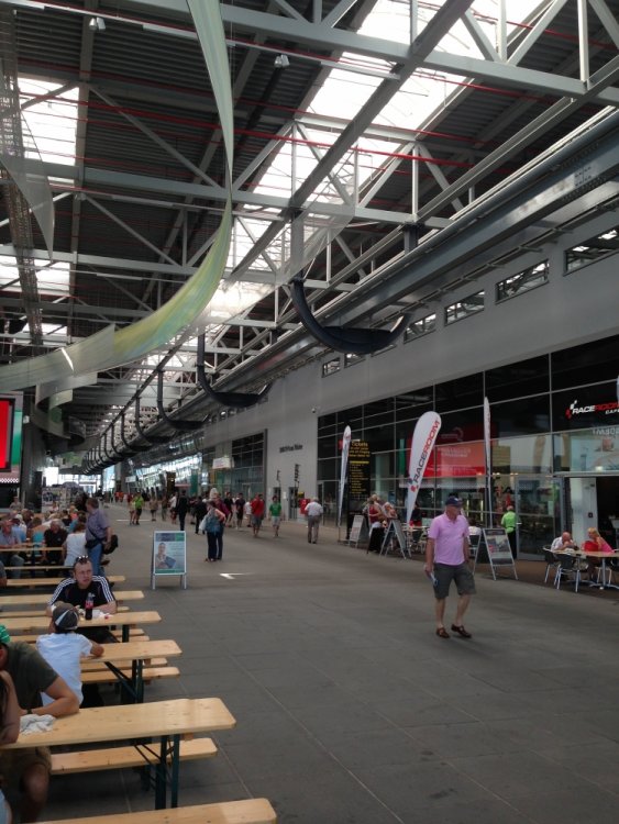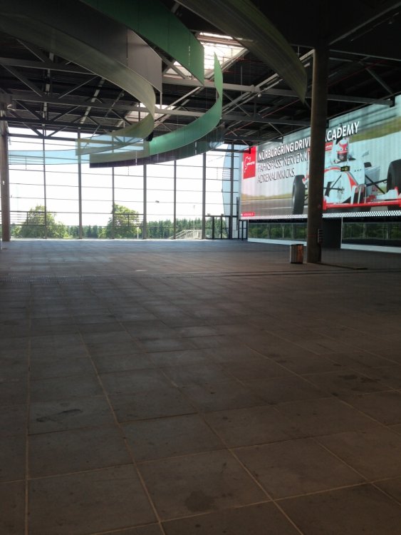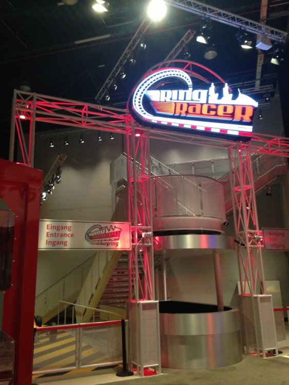 Hey guys! I recently returned from a trip to Germany where I was able to stop by the Nurburgring! There isn't much info on the site about the attractions, so I thought I would do a quick Photo TR. Obviously the racetrack is best known here for the notorious Ring Racer coaster, but it turns out there is a whole mini theme park here. Besides the coaster, Nurbirgring also features a 4D movie, a motion simulator, a trackless dark ride, a walkthrough attraction, and a rotating theater. Also... in terms of visiting the park.... it is located in between Klotten and Phantasialand. We were easily able to spend the morning at Klotten, drive to Nurburgring, and still have some time get in some rides at Phantasialand in the evening. Anyways... here's a handful of pics. We're here! Welcome to the Nurburgring! Visitor parking is located across the street. I think it cost us 5 euro to park here There is a pedestrian bridge to bring you from the parking lot to the visitor area. Ring Werk is the "park" section of the Nurburgring. It features a motion simulator, a 4D movie, a trackless darkride, a rotating theater, several interactive exhibits... and of course the notorious Ring Racer roller coaster. Lets take a look inside! There is a giant park map that hangs over the turnstiles into Ring Werk Once inside, the place opens up to this central area. It is filled with several racing exhibits as well as the entrances to the attractions. As you can imagine.. everything here is racing themed! Starting out with the walk through attraction, this exhibit takes you into racing science It features several interactive exhibits geared towards different aspects of racing technology Motor Mania is the park's trackless dark ride. Here is the loading platform. Lets go for a spin! Most of the ride takes place in this large central room. You compete for points by shooting the targets. You pull out of the room into dead end corners. There is a video screen that comes on with some dude that talks to you in German. Overall, the ride was "ok". Definitely interesting Next up is the simulator! It is themed to a bus ride We start out on a harmless bus tour of the German countryside, but due to a detour we end up on the race track. Chaos ensues! Oh hey, they also have a coaster here. Guess what? It's still closed. But here's a picture anyways... It goes over stuff and stuff Probably the coolest (open) attraction at the Nurburgring was the rotating theater. The theater tells the history of racing at the Nurburgring Yay Racing!!! Outside of the Ring Werk "park", there is an open public area that does not require an admission fee. Notice the Ring Racer track in the ceiling. It was kinda sketchy. It was pretty much a flea market. Also, just a lot of random open space. I'm sure this area looks much different when a race is going on, but on a normal day is felt pretty weird. On your way out, don't forget to stop by the gift shop for plenty of Nurburgring merchandise. Anybody want a sandwich press?!?! That's all I have! Thanks for reading!