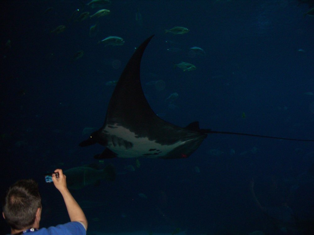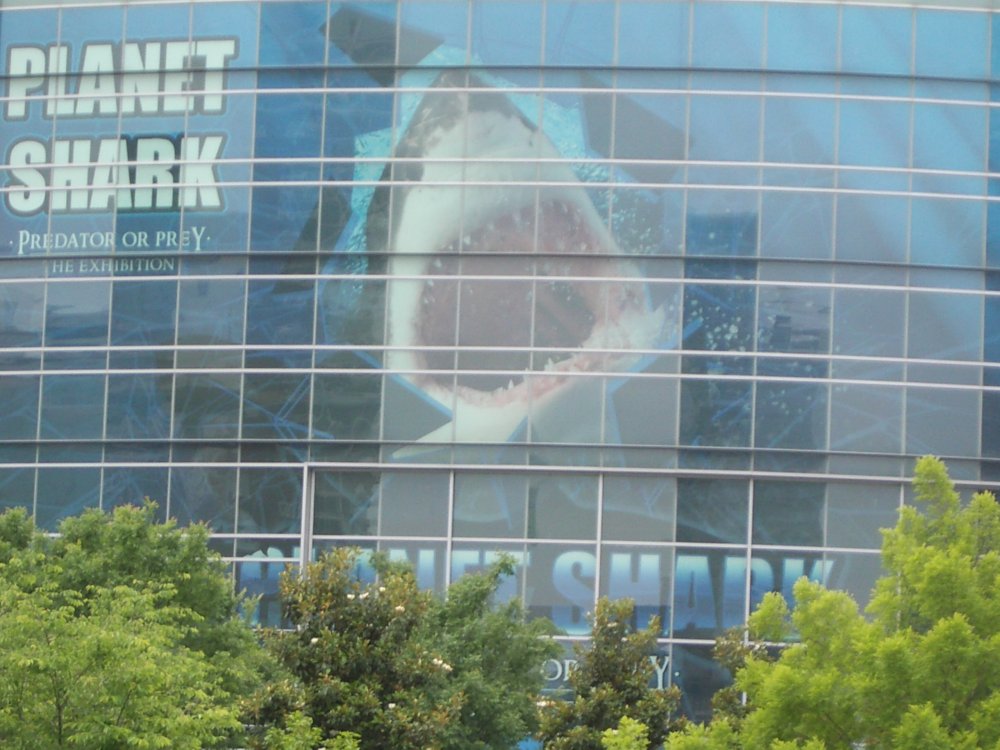 The second half of my visit to Pemberton Place was at the Georgia Aquarium. Unlike the World of Coke, I had only been to the aquarium once before, albeit for a few hours with TPR on the pre-Deep South Trip day. Since that time, a few things have changed to make the attraction even better! I spot something very TPR friendly... Planet MegaShark is the new exhibit! An entrance shot. One more reason Coke is awesome. Inner entrance photo... MANTA! SeaWorld needs like 7 of these! Away it flies... Dave!!! It exists! And apparently this thing is related to the Megalodon as well. One of the many fondle ponds in the aquarium... They are sheer awesome! The aquarium has several Busch-style "pop-up" photo ops. MEGA PIRANHA! Attack! The lady at this anemone fondle pond told us that these were safe to touch because the toxins are only slightly numbing our nerves. Comforting, right? Dinner! No, seriously. We had crab that night. Behind this curtain, construction on the Megalodon-themed AquaTrax is currently underway. Slab. Baby... Baby Beluga! Who else listened to Raffi? Shame on you. She's an easy lover. She'll get a hold on you, believe it. Tonight they were running a Jazz Festival inside of the Aquarium, and while I don't like jazz, it was actually pretty entertaining. This looks better than the one at Disney California Adventure. And we'll all float on, ok. And we'll all float on any way, well. Windows fail. Lesson to all. Get a Mac. I seriously am gunna invest in these for my pool. I already have the Epcot lights, so this will be a nice addition. Sharky shark shark shark shark! Artsy... "Foolish Earthlings. All attractions must end in the gift shop!" Fin.