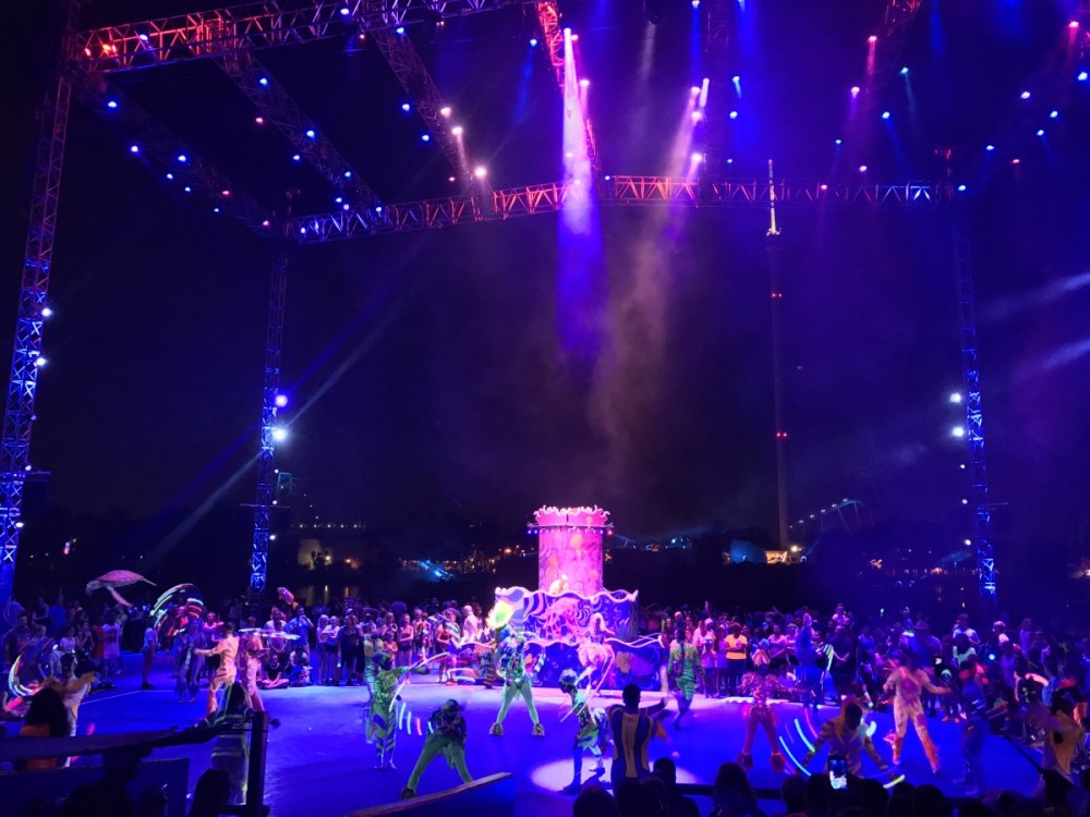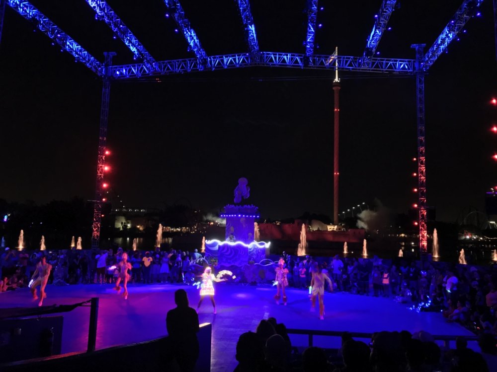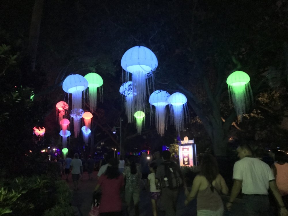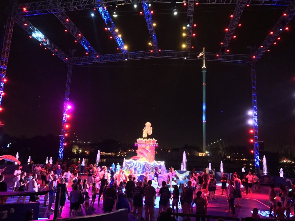 20. A few weeks ago I had the chance to check out Electric Ocean at SeaWorld Orlando. This new event is an updated take on the previous years' Summer Nights offering, with several new shows, added interactive entertainment and decor, new food options and a glowing new personality for the park at night. As a lifelong fan of SeaWorld I was excited to see a new event come into the fold (after loving the recent Food & Wine Festival as well as past Halloween and Christmas events) and I'm happy to say Electric Ocean delivers! Shamu's Light Up The Night returns for what is presumably its final year (as theatrical killer whale shows are being phased out in favor of a more educational presentation in the next few years) and is lively fun for the whole family. Sea Lions Tonite, the popular Sea Lion & Otter show that was on hiatus last year has returned in time to make fun of several of SeaWorld's newest offerings--and it brings with it the return of the SeaWorld Mime, a staple for decades at the park that was only recently retired with the debut of Clyde & Seamore's Sea Lion High. New this year is the introduction of POP!, a one-man show featuring a former America's Got Talent contestant whose craft is bubble works. Using various custom tools and an obvious understanding of the properties of every type of bubble he touches, this performer manages to fill a roughly half hour show with a variety of visual experiences all derived from the bubble. The Atlantis Bayside Stadium area and the adjacent festival grounds have received an Electric Ocean inspired makeover with glowing creatures hanging from the trees and blacklit artwork covering all structures. Several food booths are located in this area and throughout the park, offering a small taste of menu selections on par with those found at the larger SeaWorld Food & Wine Festival. Inside of Atlantis Bayside Stadium, the normal performance stage has been opened up into a dance floor for performers and guests alike as a DJ spins a variety of sounds from all generations. Intermittently the dancing will be interrupted to allow for performers to do their thing, including a surprise appearance by LASERMAN, the same laser-bending performing who graced the elecTRONica event at Disney California Adventure during its run. The evening ends at Bayside Stadium with a performance of Ignite, a new evening spectacular combining laser, light, water, fire and fireworks for a thrilling end to the Summer evening. There's still time to check out Electric Ocean this year at SeaWorld Orlando--the event will conclude this year's run with its final days during Labor Day weekend. So if you have the chance, I strongly encourage you to check Electric Ocean out. This is one of the strongest events SeaWorld has produced in years and it complements the strong lineup of shows and attractions available during the daytime and throughout the rest of the year. It is a welcome sight to see the SeaWorld Mime return for Sea Lions Tonite! We sampled some tostadas from the booth near Shark Wreck Reef and they were quite tasty! But these funnel cake bites (I went with raspberry) were amazing! Do you like bubbles? Then this is the show for you! But the show includes lasers, light and smoke rings too! The show makes use of the Sea Lion High set and carries over many of the standard animal behaviors from the daytime show. But this show has no problem making fun of other shows that run at SeaWorld Orlando... This year's show makes fun of the recent debut of Kraken Unleashed! The new dolphin show that replaced Blue Horizons, Dolphin Days isn't safe from parody either. Guest interactions are still a part of the show, even if they take on a more comical approach. One Ocean gets a few good jokes in the show. It wouldn't be a Clyde & Seamore show without the walrus! Electric Ocean doesn't escape unscathed either. Of course there are volunteers! Bubble 'splosions! Shamu's Light Up The Night is always fun! The DJ dance floor gets pretty busy! But then it clears up so that the performers can do some entertaining! There are marine creatures floating around the dance floor too! LASERMAN! It was nice to see this act up close again... Just a shame it didn't play with some TRON music. Everybody's dancing the night away! Ignite really brings the evening to a crescendo! So much going on! FIRE!!! Light! Color! The pathways are lit with colorful marine life... And there is no shortage of glow merchandise... Including glow popcorn buckets! Don't forget to stop by the new Dolphin Nursery while you're here! Don't miss your last chance of the season to experience Electric Ocean at SeaWorld Orlando! You've got one weekend left!