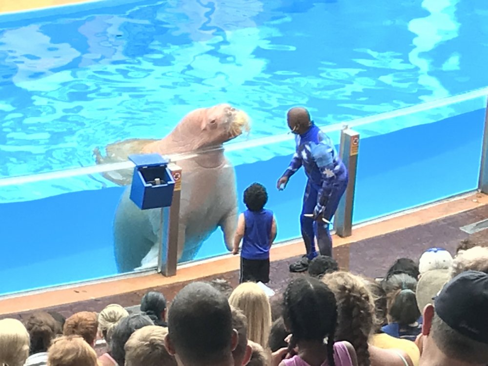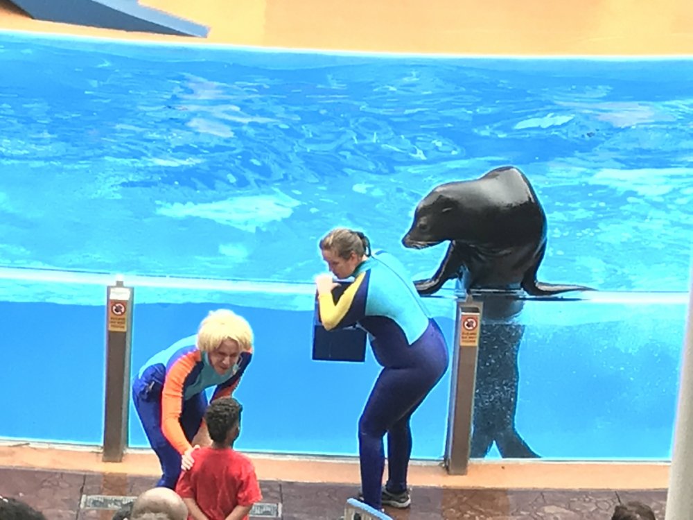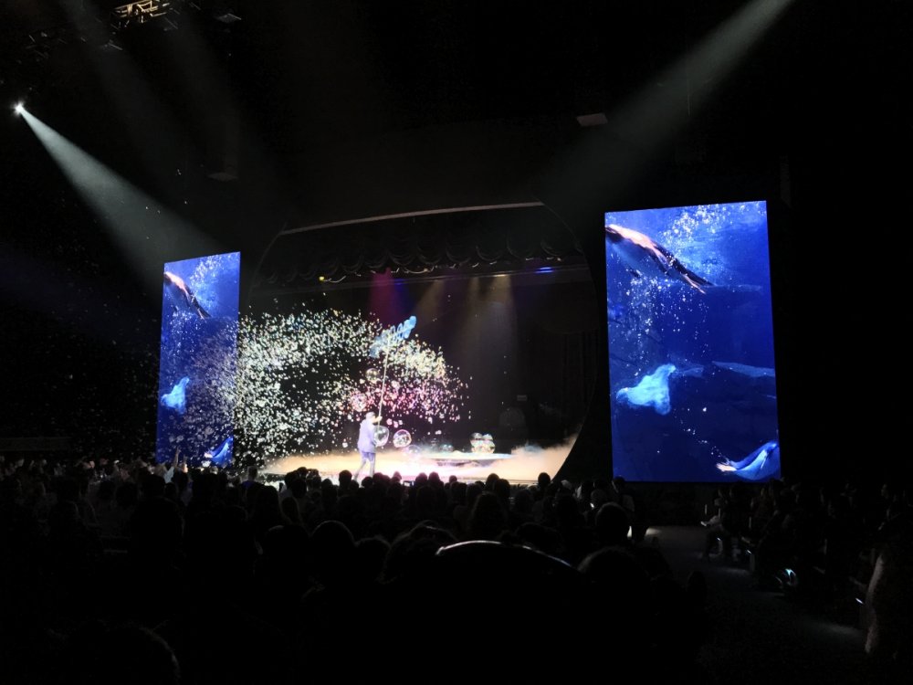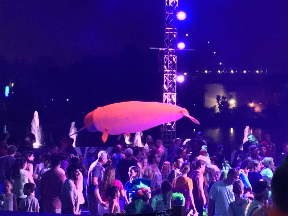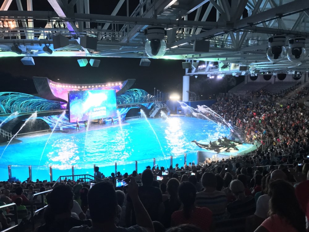 20. A few weeks ago I had the chance to check out Electric Ocean at SeaWorld Orlando. This new event is an updated take on the previous years' Summer Nights offering, with several new shows, added interactive entertainment and decor, new food options and a glowing new personality for the park at night. As a lifelong fan of SeaWorld I was excited to see a new event come into the fold (after loving the recent Food & Wine Festival as well as past Halloween and Christmas events) and I'm happy to say Electric Ocean delivers! Shamu's Light Up The Night returns for what is presumably its final year (as theatrical killer whale shows are being phased out in favor of a more educational presentation in the next few years) and is lively fun for the whole family. Sea Lions Tonite, the popular Sea Lion & Otter show that was on hiatus last year has returned in time to make fun of several of SeaWorld's newest offerings--and it brings with it the return of the SeaWorld Mime, a staple for decades at the park that was only recently retired with the debut of Clyde & Seamore's Sea Lion High. New this year is the introduction of POP!, a one-man show featuring a former America's Got Talent contestant whose craft is bubble works. Using various custom tools and an obvious understanding of the properties of every type of bubble he touches, this performer manages to fill a roughly half hour show with a variety of visual experiences all derived from the bubble. The Atlantis Bayside Stadium area and the adjacent festival grounds have received an Electric Ocean inspired makeover with glowing creatures hanging from the trees and blacklit artwork covering all structures. Several food booths are located in this area and throughout the park, offering a small taste of menu selections on par with those found at the larger SeaWorld Food & Wine Festival. Inside of Atlantis Bayside Stadium, the normal performance stage has been opened up into a dance floor for performers and guests alike as a DJ spins a variety of sounds from all generations. Intermittently the dancing will be interrupted to allow for performers to do their thing, including a surprise appearance by LASERMAN, the same laser-bending performing who graced the elecTRONica event at Disney California Adventure during its run. The evening ends at Bayside Stadium with a performance of Ignite, a new evening spectacular combining laser, light, water, fire and fireworks for a thrilling end to the Summer evening. There's still time to check out Electric Ocean this year at SeaWorld Orlando--the event will conclude this year's run with its final days during Labor Day weekend. So if you have the chance, I strongly encourage you to check Electric Ocean out. This is one of the strongest events SeaWorld has produced in years and it complements the strong lineup of shows and attractions available during the daytime and throughout the rest of the year. It is a welcome sight to see the SeaWorld Mime return for Sea Lions Tonite! We sampled some tostadas from the booth near Shark Wreck Reef and they were quite tasty! But these funnel cake bites (I went with raspberry) were amazing! Do you like bubbles? Then this is the show for you! But the show includes lasers, light and smoke rings too! The show makes use of the Sea Lion High set and carries over many of the standard animal behaviors from the daytime show. But this show has no problem making fun of other shows that run at SeaWorld Orlando... This year's show makes fun of the recent debut of Kraken Unleashed! The new dolphin show that replaced Blue Horizons, Dolphin Days isn't safe from parody either. Guest interactions are still a part of the show, even if they take on a more comical approach. One Ocean gets a few good jokes in the show. It wouldn't be a Clyde & Seamore show without the walrus! Electric Ocean doesn't escape unscathed either. Of course there are volunteers! Bubble 'splosions! Shamu's Light Up The Night is always fun! The DJ dance floor gets pretty busy! But then it clears up so that the performers can do some entertaining! There are marine creatures floating around the dance floor too! LASERMAN! It was nice to see this act up close again... Just a shame it didn't play with some TRON music. Everybody's dancing the night away! Ignite really brings the evening to a crescendo! So much going on! FIRE!!! Light! Color! The pathways are lit with colorful marine life... And there is no shortage of glow merchandise... Including glow popcorn buckets! Don't forget to stop by the new Dolphin Nursery while you're here! Don't miss your last chance of the season to experience Electric Ocean at SeaWorld Orlando! You've got one weekend left!