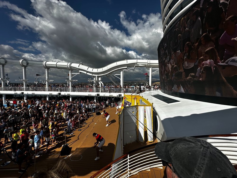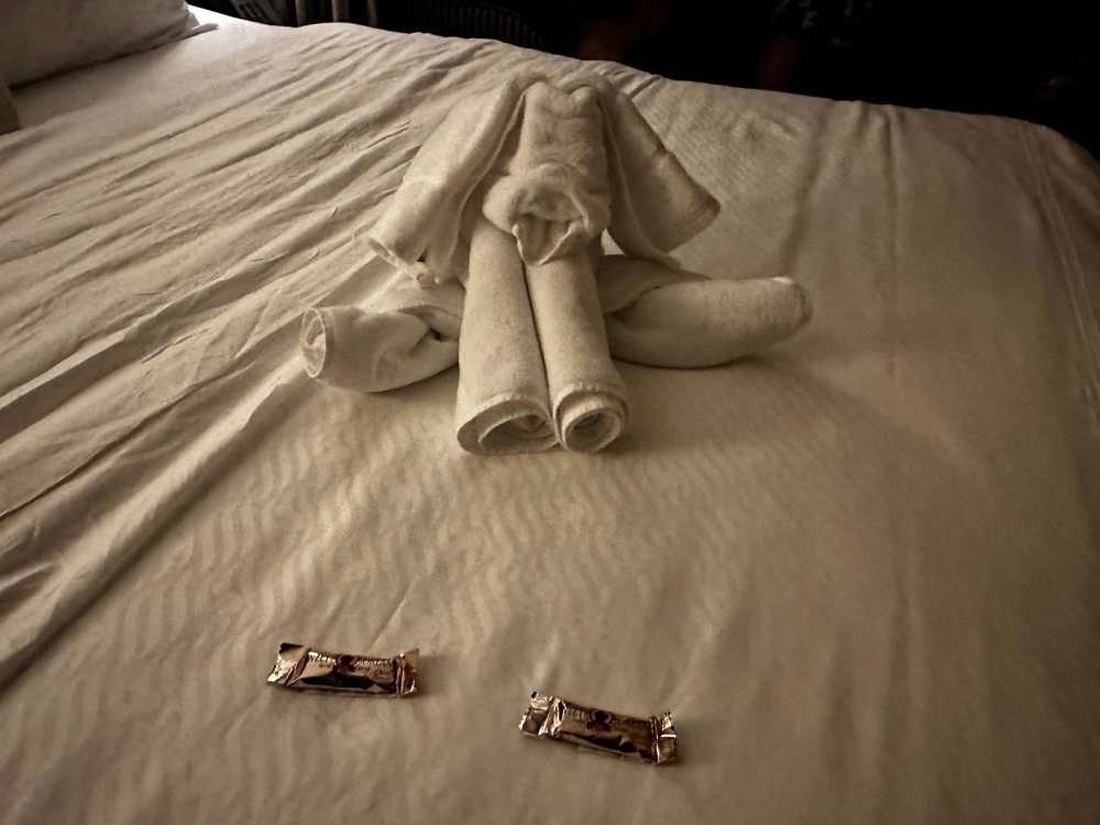 We arrived in Rome at roughly 12:30 AM and immediately took the shuttle to the airport hotel to get some sleep. Just a few hours later, we returned to the airport to catch the shuttle to Civitavecchia for our cruise. The Disney Dream is the cruise ship on which I've sailed the most times, not just with Disney but with any cruise line. Getting greeted onboard by Captain Mickey is always the best way to start off a cruise! The design of the atrium will always be one of my favorite elements of this ship! Feels like home to me. First lunch of the cruise at Cabanas means all you can enjoy snow crab! Adults have an opportunity to explore the youth activity spaces onboard during Open House periods and there are many fun places to visit! The Disney Infinity space in Oceaneer's Lab is neat. The online elements of the game has been out of service for a few years but the offline gameplay and the figures are still fun to enjoy. If you bring home a Oceaneer's Band from the cruise (the MagicBands given to kids onboard for Oceaneer's Club and Oceaneer's Lab access) and place it on the RFID scanner for Disney Infinity, you can receive an exclusive digital DCL ship toy in the game. Now that's what I call podracing! One of my favorite spaces found on the way to Vibe, the teen club onboard, is a nod to the lighted hallways of EPCOT Center's past... Journey into Imagination's ImageWorks and Horizons are echoed here. Vibe really is a neat plae for the teens to hang out. And they have their own sun deck with loungers and jacuzzis! Our stateroom for the next 11 nights! The Sailing Away deck party is always a fun way to kick off a cruise! Roaming the ship you can find hidden Disney details that span over a century's worth of film and TV. Each time I sail I find something new, like this! Disney Victrophonics was a new experience to us, performing in the atrium on multiple evenings throughout the cruise. It isn't uncommon to see Disney friends roaming the ship. Disney Cruise Line offers beverage tastings of various types depending on the length of the cruise. My first of this cruise was the "World of Old Fashioned" tasting. For $100 per person, we were treated to four Old Fashioneds, handmade and curated by an informed bartender who talked us through all of the drinks and their base alcohols. The experience also included two chocolate truffles. Coming back to our stateroom at the end of our first night onboard, we were greeted by tthis cute towel animal. We woke up the next morning to a view of Greece outside of our verandah. We would be pulling into Chania later in the afternoon so we had time onboard for some early-day activities. Are you even sailing with DCL if you're not eating Mickey Waffles for breakfast? Yes, it is the morning and we're having champagne... Another new-to-us experience was the Champgagne Tasting. We were toured through five different champagnes (plus one macaron) by an expert somelier who informed us of the differences in style, preparation and history between each bubbly we tasted. We easily got our $60 per person out of this experience and I can't recommend it enough if you enjoy champagne. Once docked in Chania, Greece we boarded a motorcoach for our Port Adventure, starting with a stop at the ruins of ancient Aptera. The site is continually being excavated. Most notably, this theater in one of the more well-recovered elements of the site. Next we visited Kournas Lake for a quick dip... Our final stop of the excursion was a family-style lunch in the really wonderful setting of the mountain-side village of Argyroupolis. Fresh tzatziki, traditional Greek salad, empanada-like apps and my favorite, rice-stuffed fried squash blossoms were an amazing start to our Crete-style meal. Spit-roasted chicken and fresh fries rounded out the meal. There's nothing quite like walking back to a ship on which you love to be sailing. Spa water upon arrival? Don't mind if I do! Really? Mine too! The Golden Mickeys was our first of three broadway-style shows in the Walt Disney Theater. Crush joined us for our first night in Animator's Palate. One does not simply dine at Animator's Palate without consuming quantities of pasta pursettes. Our stateroom door would progressively become more decorated as the cruise went on. On this night I experienced the Premium Reserve Whiskey Tasting and I was very pleased! And a new towel animal welcomed us to bed!