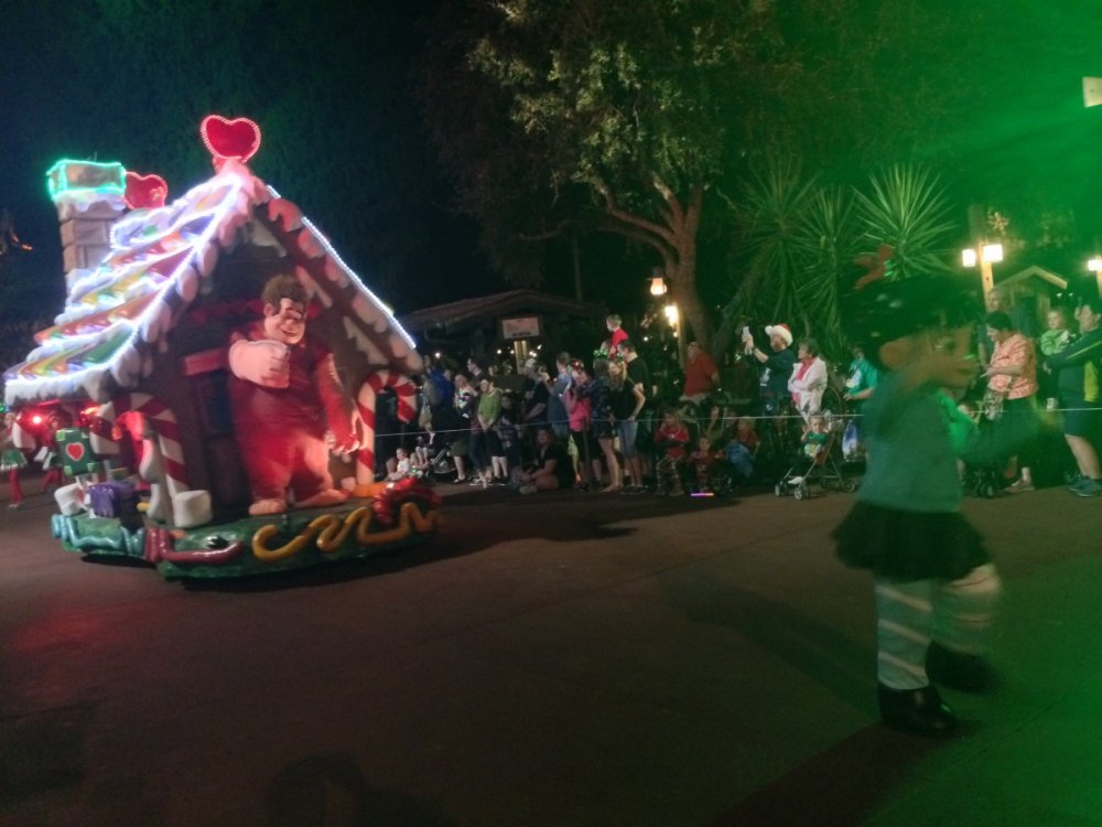 A few weeks ago I had the chance to revisit my favorite extra-ticket party at the Magic Kingdom Park at Walt Disney World. Mickey's Very Merry Christmas Party features many of the park's normal attractions with significantly shortened wait times (thanks to a heavily decreased nightly park capacity for the event), in addition to special event entertainment, special dining options and UNLIMITED hot chocolate and cookies! I love this event more than you could possibly know! Let's head in! Our first stop was the brand new Jingle Cruise, a holiday overlay of the famous Jungle Cruise attraction. This year's version is a significant improvement over last year's with significant decor added throughout the queue and in the ride itself. Some fun Adventureland holiday decor can be seen from the loading dock. Hehe! Even the caged tarantula is in the holiday spirit! I hate turkey. Do you wanna build a sandbag-man? They finally got the truck to turn over for the holidays... The ride's dry-humor script has been updated to reflect the holiday themes as well. While it doesn't offer unlimited Citrus Swirls, the unlimited hot chocolate and cookies are a huge win for the event! Projections like these can be found throughout the park. Time for the Once Upon a Christmastime Parade! New to the parade this year was Olaf! As well as Kristoff from Frozen. Clarabelle Cow rolls by on her bakery float, complete with accompanying cinnamon scent! Wreck-It Ralph and Vannelope are new additions to the parade as well. Never gets old! Mini ponies! This float will forever find a home at Walt Disney World! I love this one too! The toy soldiers are always my favorite part of the parade, partially because of their organized stepping and partially because they are actually playing the musical instruments they carry (no audio backtrack for the instruments)! It wouldn't be Chrisstmas without Santa Claus... Or so I'm told. This hidden gem can be found in the Diamond Horseshoe in Frontierland. Horace Horsecollar!!! I decided to dance with Clarabelle Cow... Horace wasn't too happy about that. Loved this place! The Castle Dreamlights continue to wow me each year. Holiday Wishes is highly ranked among my favorite seasonal holiday fireworks shows at Disney. Just enjoying it... Smiley face! I was able to see Sandy Klaws for the first time at Walt Disney World. He had a line for over an hour so I saw him from afar, but he was a joy to watch! A Totally Tomorrowland Christmas returns to the Christmas Party complete with new pyro. Definitely worth seeing if you have extra time at the party. Over at Cosmic Ray's Starlight Cafe, there is another great dance party setup. Between the Holiday Hootenanny at the Diamond Horseshoe and Club Starlight at Cosmic Ray's Starlight Cafe, I was able to do the Cupid Shuffle with Horace Horsecollar, Clarabelle Cow, Clara Cluck, Phineas and Ferb! These were like the 10th sets of cookies and hot chocolate I had that night. There's also snow(pe) on Main Street during each Christmas Party. It looks so pretty! This year's event was another great one and I can't wait to go back and get more hot childcare and cookies next year!
