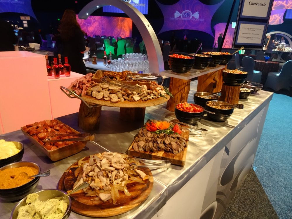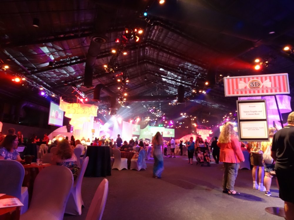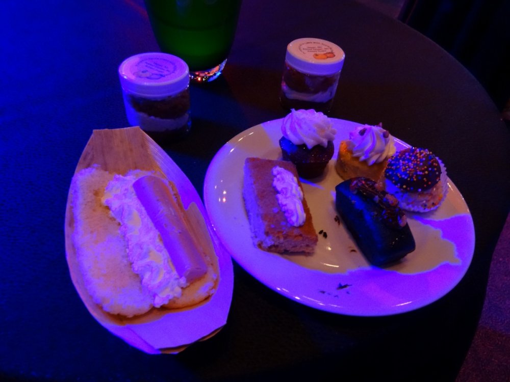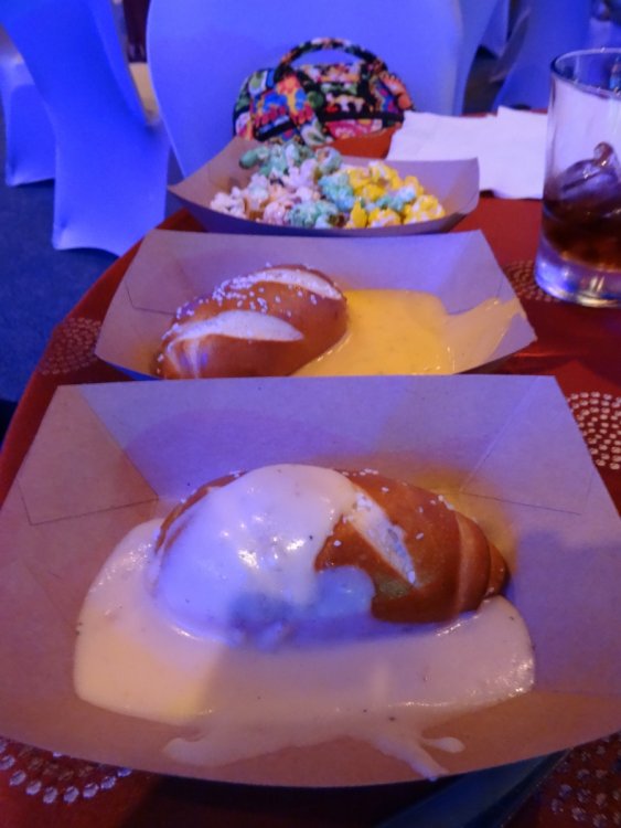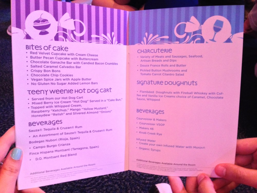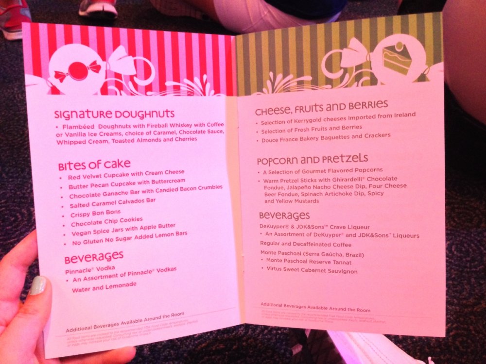 Last week I had the chance to revisit the Disney's Dessert Discovery event that runs as a part of the Epcot International Food & Wine Festival each year. The event is hosted in the World Showplace venue, the former home of the Millennium Village during the Millennium Celebration at Walt Disney World. Included in the extra-cost admission (park admission is required for access to this event) is access to this special venue, all you care to enjoy food and drinks (plenty of alcohol-based options included), live entertainment and a reserved viewing space to see Illuminations: Reflections of Earth at the end of the night. In other words, this event is WELL WORTH IT! But I'll let the pictures do the talking! The event runs once a week, on Fridays throughout the remainder of the Food & Wine Festival! Book now if you can because this event will sell out! It was a beautiful evening at Epcot despite the light drizzle. Here's a double rainbow. Rose and Crown Pub fans will be thrilled to know that a line of branded merchandise set around the pub is available for purchase inside of the Festival Center. Here we are! Ready to indulge in all three D's! Loved these themed banners! (I'm easy to impress as a Disney fan.) Each guest receives this awesome keepsake guide for the event detailing the menu for the event, which varies slightly between each event night. Read along and drool... Sounds so good! Get to the food already! Here is the charcuterie section, which features cured meats and other savory items. My personal favorites were the veal and the venison sausage. So much good food! The venue is huge and all food options have two booths within the setup to ensure that there are never any shortages of food or long lines for any one section. There is no shortage of alcohol either. No shortage whatsoever! I mourned the loss of the Country of Cheese by eating this entire setup! Pretzel sticks! With some amazing dips! The four cheese beer dip was my personal favorite! They even had flavored popcorn! The Key Lime Popcorn was killer! I went back for this Kerrygold Cheese selection several times throughout the event. Kerrygold has always been one of my favorites... Bliss! Notice the mug, filled with maple-flavored whisky with a hot apple cider cocktail mixed in. The perfect cold-weather drink I've been looking for! Something to save for the next few months of cold in Florida! A look from the other end of the pavilion... I'm not normally a whiskey person but this selection was extremely enticing! This is seriously why I'm here. Flambéed Doughnuts! They were incredible!!! There are lots of finger food-style desserts as well. And the most unique dessert option goes to... They even themed the stations to match the abstract dessert item's presentation! The "hot dog" is made of mixed berry ice cream, the mayo is whipped cream and the bun is yellow cake. They even have a toppings bar that features faux ketchup, relish and mustard! I like to indulge when it comes to food. The evening's entertainment came from Drey-C, a great local band at normally performs at Downtown Disney. They were seriously awesome! This rum. Sooooo good! Yes, I went back for more doughnuts. Time to head out for the fireworks! A nice treat was being given these special glasses for the fireworks viewing. It is hard to see, but these glasses transform the fireworks into falling Mickey ears. The effect is insanely cool! It was a perfect cap to a fantastic event at Epcot. This is one that I very highly recommend checking out if you get the chance!