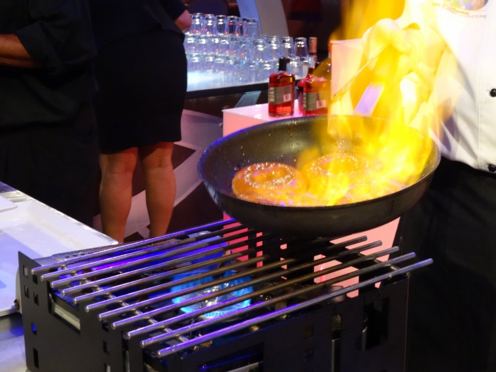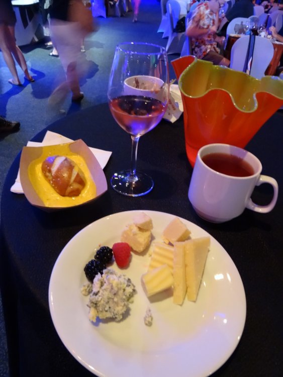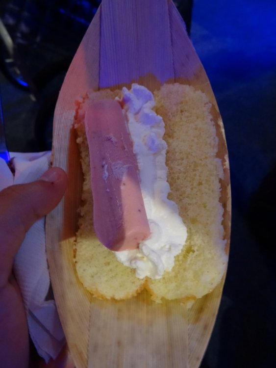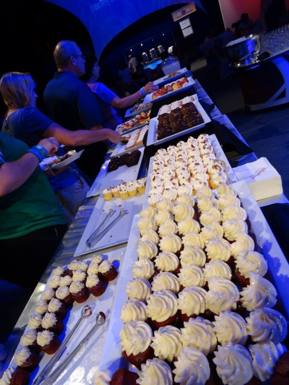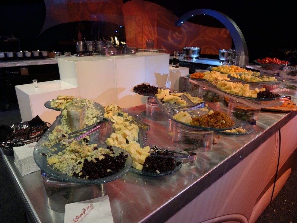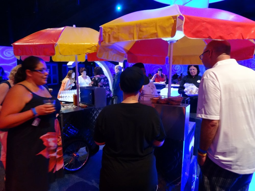 Last week I had the chance to revisit the Disney's Dessert Discovery event that runs as a part of the Epcot International Food & Wine Festival each year. The event is hosted in the World Showplace venue, the former home of the Millennium Village during the Millennium Celebration at Walt Disney World. Included in the extra-cost admission (park admission is required for access to this event) is access to this special venue, all you care to enjoy food and drinks (plenty of alcohol-based options included), live entertainment and a reserved viewing space to see Illuminations: Reflections of Earth at the end of the night. In other words, this event is WELL WORTH IT! But I'll let the pictures do the talking! The event runs once a week, on Fridays throughout the remainder of the Food & Wine Festival! Book now if you can because this event will sell out! It was a beautiful evening at Epcot despite the light drizzle. Here's a double rainbow. Rose and Crown Pub fans will be thrilled to know that a line of branded merchandise set around the pub is available for purchase inside of the Festival Center. Here we are! Ready to indulge in all three D's! Loved these themed banners! (I'm easy to impress as a Disney fan.) Each guest receives this awesome keepsake guide for the event detailing the menu for the event, which varies slightly between each event night. Read along and drool... Sounds so good! Get to the food already! Here is the charcuterie section, which features cured meats and other savory items. My personal favorites were the veal and the venison sausage. So much good food! The venue is huge and all food options have two booths within the setup to ensure that there are never any shortages of food or long lines for any one section. There is no shortage of alcohol either. No shortage whatsoever! I mourned the loss of the Country of Cheese by eating this entire setup! Pretzel sticks! With some amazing dips! The four cheese beer dip was my personal favorite! They even had flavored popcorn! The Key Lime Popcorn was killer! I went back for this Kerrygold Cheese selection several times throughout the event. Kerrygold has always been one of my favorites... Bliss! Notice the mug, filled with maple-flavored whisky with a hot apple cider cocktail mixed in. The perfect cold-weather drink I've been looking for! Something to save for the next few months of cold in Florida! A look from the other end of the pavilion... I'm not normally a whiskey person but this selection was extremely enticing! This is seriously why I'm here. Flambéed Doughnuts! They were incredible!!! There are lots of finger food-style desserts as well. And the most unique dessert option goes to... They even themed the stations to match the abstract dessert item's presentation! The "hot dog" is made of mixed berry ice cream, the mayo is whipped cream and the bun is yellow cake. They even have a toppings bar that features faux ketchup, relish and mustard! I like to indulge when it comes to food. The evening's entertainment came from Drey-C, a great local band at normally performs at Downtown Disney. They were seriously awesome! This rum. Sooooo good! Yes, I went back for more doughnuts. Time to head out for the fireworks! A nice treat was being given these special glasses for the fireworks viewing. It is hard to see, but these glasses transform the fireworks into falling Mickey ears. The effect is insanely cool! It was a perfect cap to a fantastic event at Epcot. This is one that I very highly recommend checking out if you get the chance!