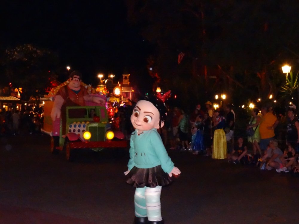 For the first time in forever (two years) I finally had the chance to revisit the Mickey's Not So Scary Halloween Party at Disney's Magic Kingdom Park. The event has always been a favorite of mine because of the amazing parade and fireworks exclusive to the party, the candy and most importantly, the insanely short wait times for all of the major attractions in the park. Since my last visit the event has updated the parade to include the "Creepa Crew" pre-parade plus characters from Wreck-It Ralph. The event has also gained a dedicated dance venue in the form of Club Villain, a really fun setup in the Diamond Horseshoe. But enough talk! Let's get to the photos! The entrance to the Magic Kingdom is especially welcoming with the Halloween decor in place! I had actually ordered this shirt a few months back and planned to wear it to the event simply because a Disney shirt and I didn't have time to put together a costume. It turns out that on the day that I went, it was announced that morning that Maelstrom at Epcot would be closing. Instantly my costume became real... I went dressed up as a sad fan... This is new! Neat setup! Oh hai monster! The line for the Jack & Sally meet and greet was like this at the start of the event and stayed that way until the end of the night. Sadly, I had to pass. With the park's capacity cut down significantly the lines for rides like the Seven Dwarfs Mine Train were minimal. A nice view to start the evening to... A rare chance to get a pot with all Seven Dwarfs! Club Villain really looks amazing inside! Villains from Disney animated films dance with guests in this fun environment. The club features some really fun graffiti-esque villain art on the walls. It wouldn't be a Disney club without CO2 blasts. Mannequins Dance Palace lives on in some form. The DJ setup... Here's the Creepa Crew leading the way for Mickey's Boo to You Parade to begin. There is no shortage of Disney characters in this parade! Oh Pooh! Mickey and the Gang lead the way! Peter Pan, Wendy, Captain Hook and Mr. Smee sail down the parade route in a pirate ship. Speakinf of pirates... The gravediggers are my favorite part of the parade. The spark effect is so simple but really so entertaining! The happy haunts of the Haunted Mansion have materialized to dance within the open ballroom that is the Boo to You parade route... They really are fantastic! Another favorite float of mine! Clarabelle Cow is also in the parade. Clara Cluck is obscure but her involvement in the parade is really fun to see! New to the parade this year is the inclusion of Ralph and Vanelope from Wreck-It Ralph. The Block Party Bash cones live on! Goofy pilots his candy bike as always. Some more Villakns from Disney films keep the parade moving. boo to You! Boo to you and you and you. The parade ends with a look at the evil queen. This actually happened! The park really looks especially great at night during the event. Look who I ran into! Spiced Pumpkin Waffle and a Liberty Swirl. Win plus win= win. The old Adventureland verandah is open during the event as a treat trail. Lots of different details up on the walls in here... Main Street U.S.A All dressed up (and not busy at night. We didn't wait for Jack and Sally this time alone. so awesome! Sea ya real soon! The fog makes the entrance to the park into such a neat environment. I was not the first to pass this way, nor shall I be the last.