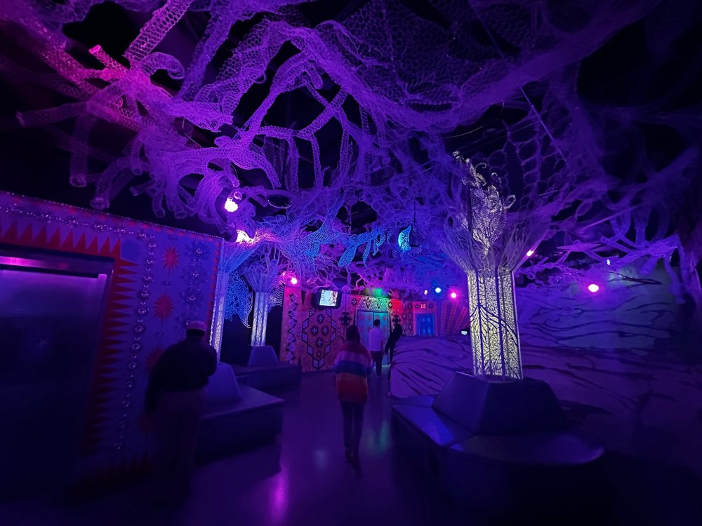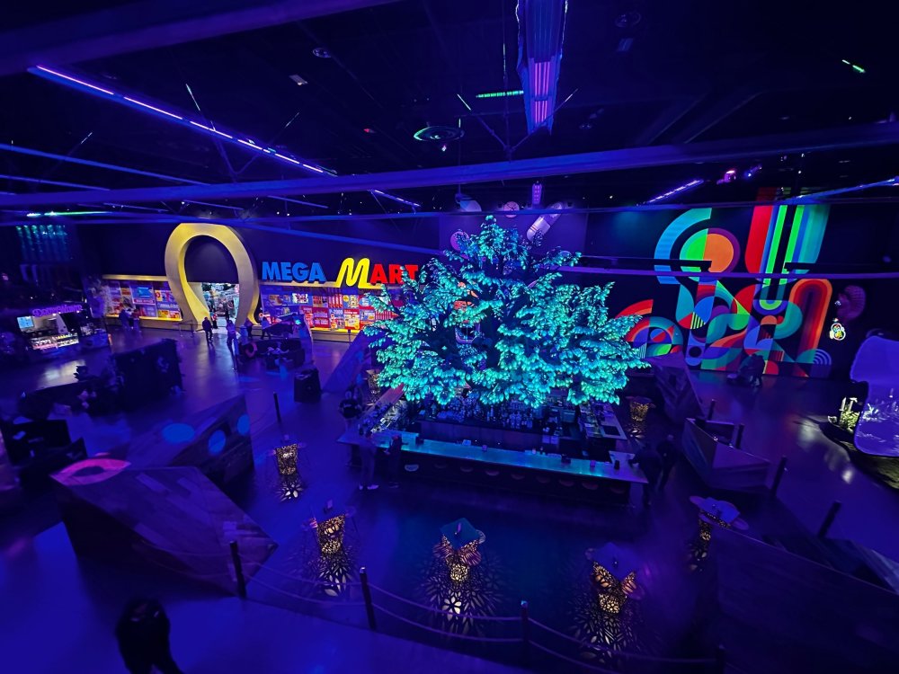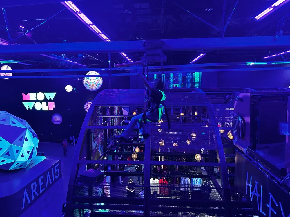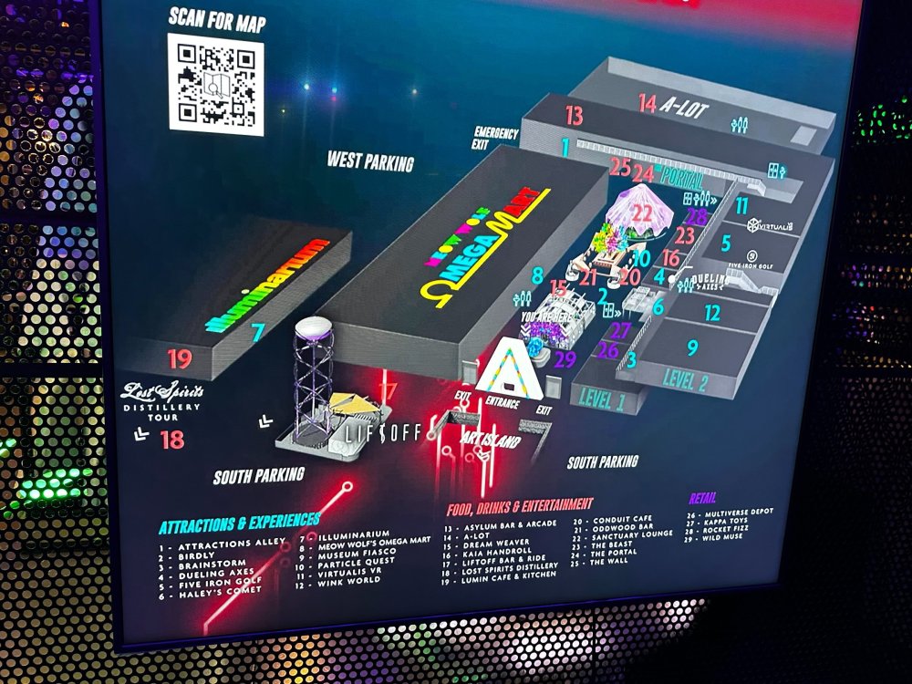 While not on my planned trips for 2023/2024, when my wife found out that Kelly Clarkson was doing a limited residency in Las Vegas, before I knew it, we had tickets booked. This would be my second visit to Las Vegas to date (my first-timer report can be found here) and for this reason, the focus was less on rides and attractions (though I did squeeze in a few) and more on shows, Area 15, experiences and an underlying search for "Lost Vegas" along the way. I have been fascinated with the ebbs and flows of Vegas' attempts to offer family experiences and as such, looking at the legacy resorts on and off of the Strip to see what they tried (and in most cases, ultimately removed) to appeal to travelers with younger guests became a goal to seek out. It is worth noting that the weekend of the concert (Friday and Saturday) was also shared with a little-known sporting event... We might have been the only people in town that came in for the weekend but not to end up here. We left on Saturday afternoon before the Sunday madness set in. We scored a fantastic rate for a recently refurbished room at the Rio. The hotel itself was fairly standard, as was the casino, but as I was leaving the resort to head to their Uber pick-up, I noticed the peculiar structures in the ceiling that distinctly looked like some kind of track. And I'd know a covered station anywhere... As it turns out, there was once an attraction called Masquerade in the Sky, a parade/show of sorts that guests and performers could ride along floats overhead the casino and throw beads from above. In ended its run in 2013 and the track is no longer in use. We arrived late in the evening, but not too late to venture out for a quick stop at The Golden Tiki. The Golden Tiki is filled with tiki decor throughout and features lots of fun surprises in each room. Not unlike Trader Sam's on either coast, this bar does feature some effects that are triggered when guests order specific drinks. Tiki flight for the win! The space is truly gorgeous! And yes, they have a real, working animatronic tiki bird perched above one side of the bar. Fire makes all tiki drinks better! I spy with my little eye, something Mary Blair! The next morning we made our way to our next stop with our drive revealing lots of preparations for the Super Bowl under way. I remember the Eiffel Tower being much larger the last time I saw it up close... While delicious and refreshing, we didn't have time to visit the Coca-Cola Store during this trip. We really enjoyed it last time! I went into this trip fairly confident I wouldn't be riding any coasters this time around, but I would end up being wrong. Unlike our previous visit where the dry heat had us drowning in sweat, this time around we were graced with beautifully cold weather throughout our weekend. A pleasant surprise was the panoramic view of snow-capped mountains not too far off in the distance. Our main objective for the day... Liftoff was something I was very excited to try. I can tell you I was VERY excited to finally get a chance to check out Area 15. We didn't have enough time during our last trip to stop by and especially after the Orlando location was announced, I was doubly eager to visit for myself. I think people often underestimate just how much there is in the current Area 15 complex, not to mention how much more is coming in the year ahead. I've seen VR simulators before but never ones where you can actually simulate the experience of bird-style flight first-hand. The Sanctuary Lounge is a visual focal point inside Area 15 and looks like such a neat venue in which to hang out. Asylum Bar & Arcade is a great place to get a drink and play some games. Omega Mart was the biggest draw for us, having loved experiential explore at your own pace offerings like teamLab Borderless in Japan or City Museum in St. Louis. This would also be our first Meow Wolf installation. Omega Mart starts off feeling very familiar but upon closer inspection, you'll notice little (and sometimes big) details that make everything feel "off." A majority of the products on the shelves of Omega Mart are purchasable... No, this image isn't corrupted. The meat counter is full of fresh options that feel otherworldly and nutritious. Pjork is the most kosher of meats. Without spoiling the "how," you are able to escape the confines of the Omega Mart storefront to unlock worlds of technological, supernatural and multi-dimensional intrigue... Each room offers different experiences, many of them are hands on and interactive and others are passive but lengthy in that you can stay to experience a variety of content if you give it time. Spaces throughout the experience can be as narrow as a tight crawl space (my claustrophobia kicked in at one point) to massive rooms such as this... And visual effects such as projection mapping transform those spaces as you visit them, so exploration and re-visitation is recommended. There is just so much to take in at Omega Mart. And nothing is as it seems here! There's an underlying story about a family who gets involved in an interdimensional produce business and that family's sinister intentions... Some rooms are just ridiculously cool to experience in person. Paying attention to detail as you move between spaces can... Yield some interesting visual payoffs. You can buy Happles from the Omega Mart store if you so wish. I watched this full video loop and I was absolutely engrossed. Familiar but different. Nothing is exactly as it appears in Omega Mart and there's lots to discover. I recommend giving yourself lots of time to take in the stories and explore. You never know what you'll find... There's a lot of spaces within Area 15 that just look ridiculously cool! And yes, the rails you see overhead are for a powered hang-gliding experience around the interior of the complex. Museum Fiasco was an absolute visual overload! Wink World is described as a "psychedelic art house" developed by Chris Wink, one of the founding memb