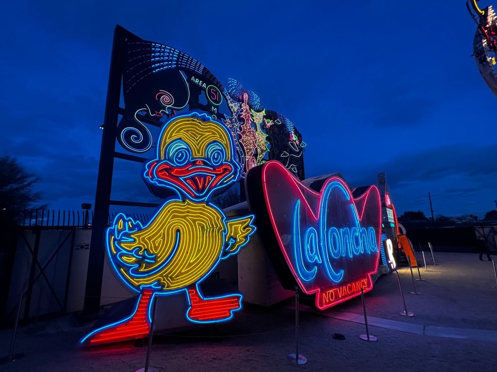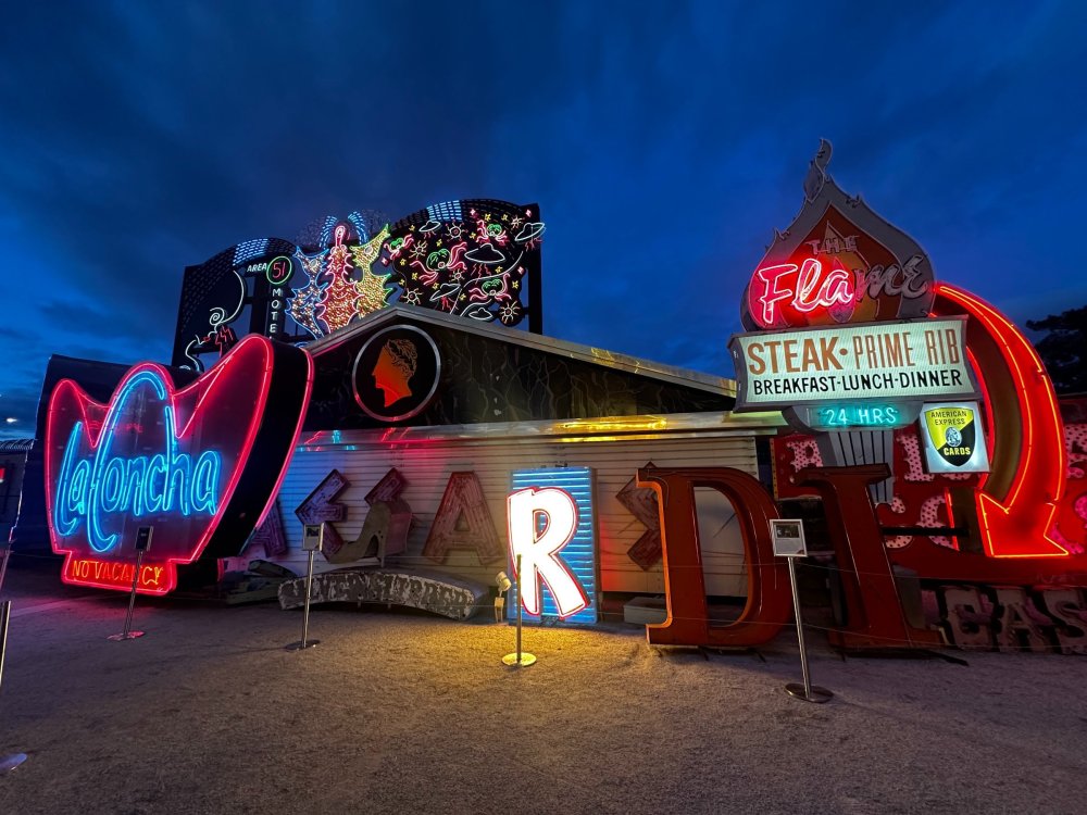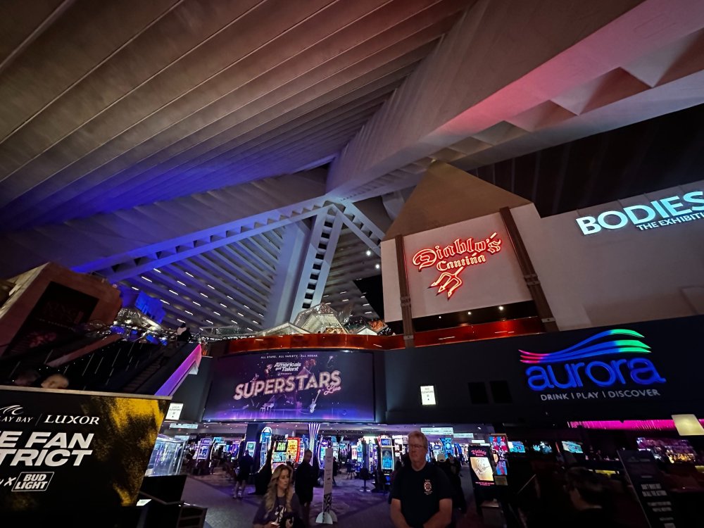 Rounding out our time at Area 15, we stopped for a quick drink at the Asylum Bar + Arcade... AREA15 Signal Lager is an exclusive Mexican lager from Able Baker Brewing in Las Vegas and it is quite good! John is a friend I've known through TPR for years (he toured us around Las Vegas during our last visit) and it was great to see him at Area 15 this time around! Liftoff Bar & Ride was something I was eager to try at Area 15... Again, the view of those snowy peaks was a treat! Looking to one side of the Area 15 campus expansion we found the future year-round Halloween Horror Nights attraction construction well under way. Looking back at the Rio from Liftoff... The exterior of this hotel is so cool, regardless of when you look at it! We wouldn't be visiting Circus Circus or The Strat this time around... But it was neat to see The Strat and its attractions off in the distance. Spending time at The Mirage was a priority for us during this trip as it will soon become the new Hard Rock in Las Vegas. But first, something new! The Neon Museum Las Vegas was something we didn't have time to experience during our last visit but was on our must-do list this time around. While the experience is open during the day, I definitely think the appeal of the visit comes from seeing the neon do its thing after dusk. What time is the Bohemian Rhapsody fireworks spectacular? Just need to make sure I'm off of "Nights in White Satin: The Trip" in time to get a good spot! The signage graveyard includes pieces that still work, some that don't and some that don't have any neon left on them... But the collection is incredibly impressive. While the museum grounds aren't huge, there is a lot to see within the space. One of my favorite pieces in the collection. After the Neon Museum we moved over to Resorts World Las Vegas for some New York comfort food at Junior's. Losing Carnegie Deli at The Mirage was a shame but our meal at Junior's took a bit of the sting out. Speaking of The Mirage... Last time we were in Las Vegas we wanted to see The Beatles LOVE but it was dark for two weeks (leading us to see O instead). This time around, it was a major priority for us, especially with rumors at the time that the show would be closing in the near future. The theater in the round is different from the more traditional seating arrangements of Cirque shows like "O" and La Nouba. No photos or video are allowed during the show but I can say that it was a great time, and even if you're not an uber-Beatles fan, you'll still appreciate the combination of visual artistry and the band's most famous tunes. I do believe that the show is a little less "stunt" oriented than O or La Nouba, but we really we were glad to have the chance to see it before the end of the line. Shortly after our visit it was announced that The Beatles LOVE would close after a final performance on July 6th, 2024. There's still time to see it, whether for your first or final time--if you can, I definitely recommend checking it out. Don't mind me... I'm just staring at abandoned ride system infrastructure. The next morning I woke up bright and early to Trek for a bit of Lost Vegas. The Westgate Las Vegas was once the Las Vegas Hilton and it was home to the world's only "Star Trek: The Experience." This ticketing attraction built upon Las Vegas' desire to offer family attractions including rides and shows, offered an immersive trip to the Star Trek universe with experiences inspired by The Next Generation, Deep Space Nine and Voyager. There was a simulator ride (Klingon Encounter), a 4D show (Borg Encounter), a bar and restaurant (Quark's), a museum of sorts plus shopping and roaming characters. The experience was operated by Paramount Parks (ultimately Cedar Fair) in late 2008 with the place to open in an alternate location but that plan never panned out. In the time since the closure of Star Trek: The Experience, the remnants of the old elements at the resort have slowly been removed. There isn't much left to see besides a futuristic gift shop and a preview center for timeshare sales... Tempting but not tempting enough. But if you know what you're looking for, you can find traces of what feels like a future era lost to the past. I couldn't subject myself to a timeshare pitch to take a closer look but this feels like the most "leftover" space remaining. Another gift shop space carries the same Star Trek-ish design. It is my understanding that all of these remaining spaces were outside of the ticketed portion of Star Trek: The Experience (along with the removed SpaceQuest Casino). This would be my first time on the Las Vegas Monorail and it may have been my last as it was recently announced that the monorail will likely be retired in the near future. This was as close as I got to The Sphere during this trip but the scale of it all is way more impressive when you see it up close. I swore I wouldn't do this during this trip... But my feet kept moving in this direction. In the time since my last trip to Vegas, the Manhattan Express/Big Apple Coaster had undergone a refurbishment including replaced track segments, new trains from Premier and a repaint. All aboard the Manhattan Express! The Premier trains and the updated track segments have made the ride a slightly more enjoyable experience... But the "comfort collars" do take a bit away from those gains. Seconds later my comfort collar injected itself into my neck. ] Our train got stuck in the station at the end of my first ride for over 20 minutes and we were offered a free re-ride. I guess I'm a glutton for punishment if the cost is free. I tried to get some better photos of the trains in motion... Going down! I went next to Luxor to see what traces of Lost Vegas I could find... There wasn't much. Enjoy this giant Dorito as a consolation prize. After not finding anything of note at Luxor, I drowned out my sorrows with an excessive number of purchases at Dominique Ansel…