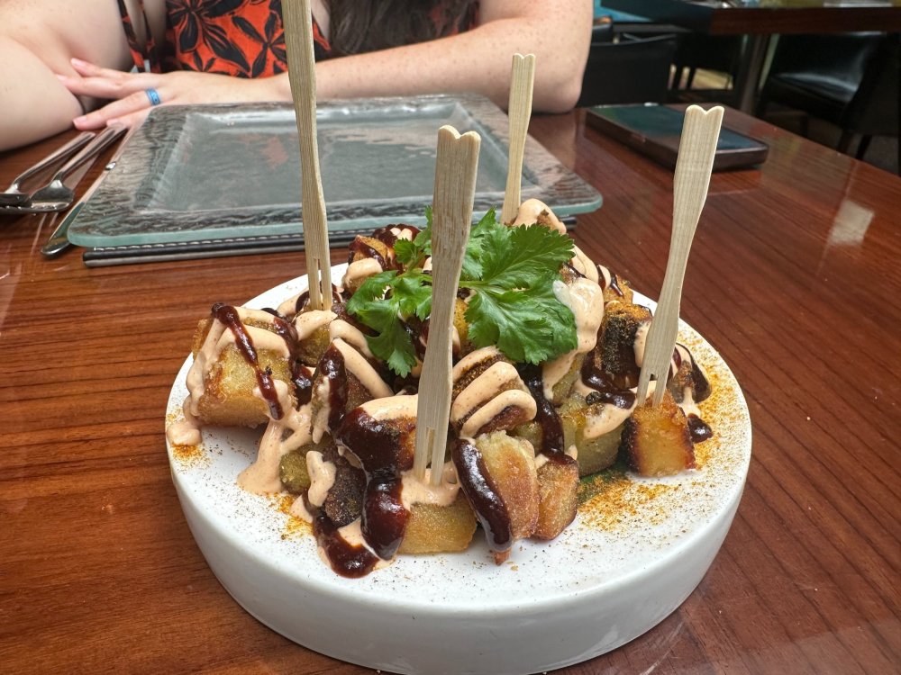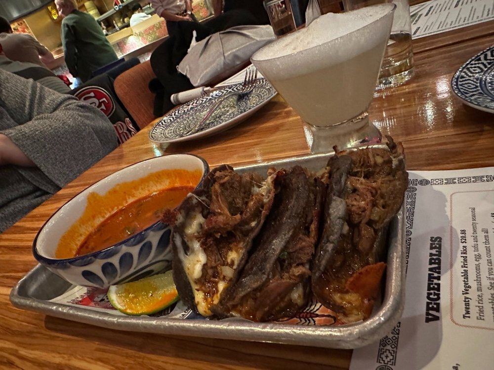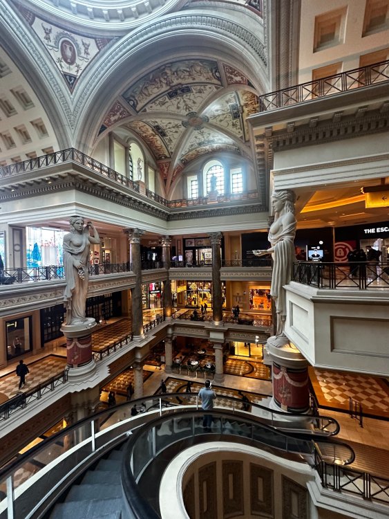 My tour of the Vegas casinos continued with some more entertainment, some amazing food and a concert for good measure. The trip was winding down by the minute but there was still more to pack in... My last visit to Caesar's Palace came and went several years ago, but I hadn't realized at the time that there was an animatronic show in plain sight. Admiring the sights along the way... This dining venue closed just weeks after our visit. Who needs thematic integrity when the Super Bowl is in town? Not The Atlantis Show, that's for sure... Odd costuming choice aside, I can appreciate what the show is meant to accomplish and the fact that after all these years, it still exists despite what I'm sure are expensive costs for pyro and animatronic upkeep. The story didn't make much sense to me but I enjoyed the effects. I'll never not be impressed by curvy escalators. Back at The Mirage, I walked around a little more to say my goodbyes... The last time I was here, this was still Carnegie Deli. I made the short walk to The Venetian... I had spent a decent amount of time there during my last trip. I walked in, grabbed this photo and enjoyed the atmosphere for a few minutes before I moved on... With little time left, that's all I had for this resort today. The High Roller dominates this side of the Las Vegas skyline. It seems no lessons were learned after the unfortunate incident with the London Eye in 2007. Here's hoping the Fantastic Four will be around in case we have a repeat situation here. Over at The Cosmopolitan, I couldn't help but admire The Chandelier which is a multi-story lounge. It's all kinds of impressive. As big fans of Chef Jose Andres (both as a chef and as a humanitarian) we opted to dine at China Poblano. China Poblano, as the name alludes, offers a choice of menu items from both asian and latin cuisines. In some cases the items are strictly agnostic of the other, and in some they are fusion creations. We started off with these birria tacos, because I'm never one to turn down a good birria. Next up were traditional barbecue pork dumplings... And these were heavenly. Essentially chicken lettuce wraps... And these were phenomenal! Octopus taco for the win! But the absolute highlight of the meal was this beef tendon and oyster taco which was absolutely incredible. I ordered two more before the end of the meal. As I mentioned earlier, this was the catalyst for the whole trip. The venue at Planet Hollywood was great and even as far back as we were, the view was quite good. My wife was thrilled with the experience and the whole trip was worth the concert in her book. This "shop" at Planet Hollywood was closed by the time the concert ended... I just want to know how this works in the format of a "store." Every resort was getting in on the Super Bowl spirit this weekend. And the Bellagio had to one-up them all with custom fountain shows just for the event! One of these day's I'll actually get a chance to eat at a Hell's Kitchen... I did manage to peek inside of this location and it looked much like you'd expect from the show, albeit a little smaller. I wonder what will happen to this tribute now that The Mirage has closed and the Secret Garden is long gone. For as much as I enjoy seeing the evolution of Las Vegas, Treasure Island feels like it has gone in all of the wrong directions. This just feels cheap and wrong. Back at the hotel my treats from Dominique Ansel were waiting and they were worth the wait. The next morning we woke up with only a few hours left before we needed to head to the airport... The first stop was the Fontainebleu, newly opened and ready to explore. The property is very beautiful and the casino is more open/less dense than most others we visited. It felt a little unfinished (which given the history, I know sounds a little funny) but it feels like this property still needs time to come into its own. Major points though for having one of the best machines I've seen in town. "Well I hope you can enjoy the victory with one freakin' eye!" Another bit of Lost Vegas as we passed Circus Circus while leaving the Fontainebleu. One last look at The Mirage... Demolition of the volcano and the main lobby and casino is now under way to make way for the new Hard Rock Casino and Guitar Hotel. It wouldn't be a trip to Vegas without a stop inside of the Bellagio. More specifically, a chance for me to admire some pieces by Dale Chihuly. The Spring showcase at the Conservatory in Bellagio was really stunning. Good luck to all... One more Chihuly piece for good measure. I may not have made it to Hell's Kitchen this trip, but I did manage to snag one Gordon Ramsay meal on the way out... Man, was this a burger. What better way to end this trip than with a view of a giant Dorito from the airport.