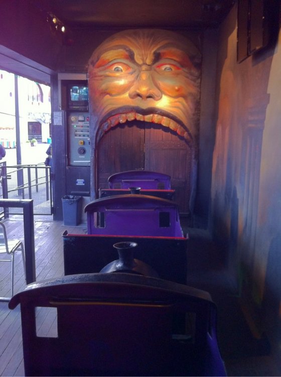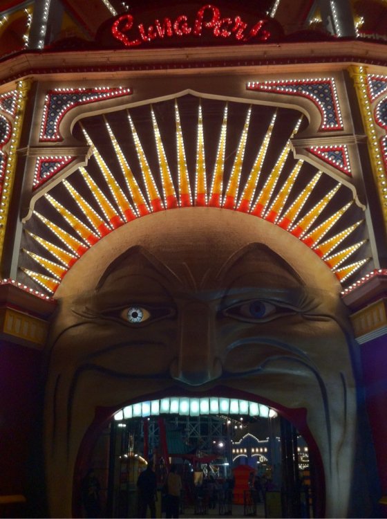 Update time! Luna Park Melbourne, and BONUS CREDIT! First, POV of Luna Park Melbourne's Scenic Railway! TPR is always known for little surprises on our tours and today we got Wonderland Fun Park to open up a BONUS CREDIT for our tour! Ok, sure, it might only be a Wacky Worm, but it's a CREDIT!!! BONUS CREDIT!!! THANK YOU WONDERLAND FUN PARK!!! Best credit of the trip? Wacky Worm POV!!! Oh noes!!! Big drop! TPR was very happy to get this bonus credit! Next was our dinner at Grill'd. It was sort of like Subway meets gourmet hamburgers. Elissa played server for the evening. TPR was very happy with Elissa serving them meat. Huh???? Oh Noes!!! More creepy face park entrances trying to eat TPR members!!! Luna Park's stat attraction is the Scenic Railway! We got a great backstage tour of the coaster! We got to check out the cable lift motors while the ride was running. Then they took us around the maintenance area. The trains were in great shape, and they told us they had recently sent their blueprints to Margate so they can build replacement trains for the ones lost in the fire. Here is where the brake man sits. And it's even a credit for KidTums! TPR is ready to take on this really classic woodie. Built in 1912, Scenic Railway is one of the oldest operating wood coasters in the world! Old woodie POV! TPR loves it! The ride travels right over the front entrance to the park. The Scenic Railway is still controlled by the brakeman who sits in the middle of the train and controls the speed of the ride. TAKE THE TUNNEL!!! You can see how the Scenic Railways runs the perimeter of the park. After the Scenic Railway, the park let us do something REALLY cool... Walk trough the Ghost Train! Today the role of scary props will be played by TPR! Nolan finally found someone who would accept his freakish size. The ghost train had some quite disturbing props. TPR member or prop...you decide! OH NOES!!! The Ghost Train loading station is very old school. The control panel is equally as amazing! Following the Ghost Train walkthrough, we got Carousel ERT!!! They even took us inside their classic PTC carousel to show us how it works. Dan and Jes enjoy this recently restored Carousel. The park brought it back to it's former early 1900s glory! KidTums is in a Carousel trance. As there is another credit at the park, they opened that for us too! We took over most of the park! They also gave us ERT on the Ferris Wheel! At night the park looked amazing! Creepy face got even creepier! All the rides had cool lighting packages. Thank you Luna Park for a fantastic day! -