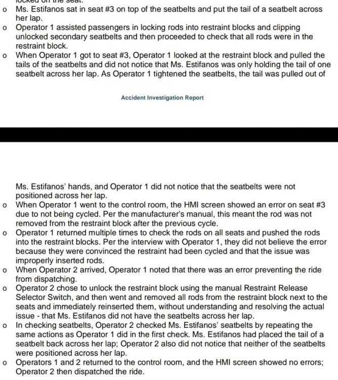 Its been redacted. https://www.scribd.com/document/559815455/Cedar-Point-Top-Thrill-Dragster-Incident-Report I found this amusing, not to downplay the seriousness of the incident. -