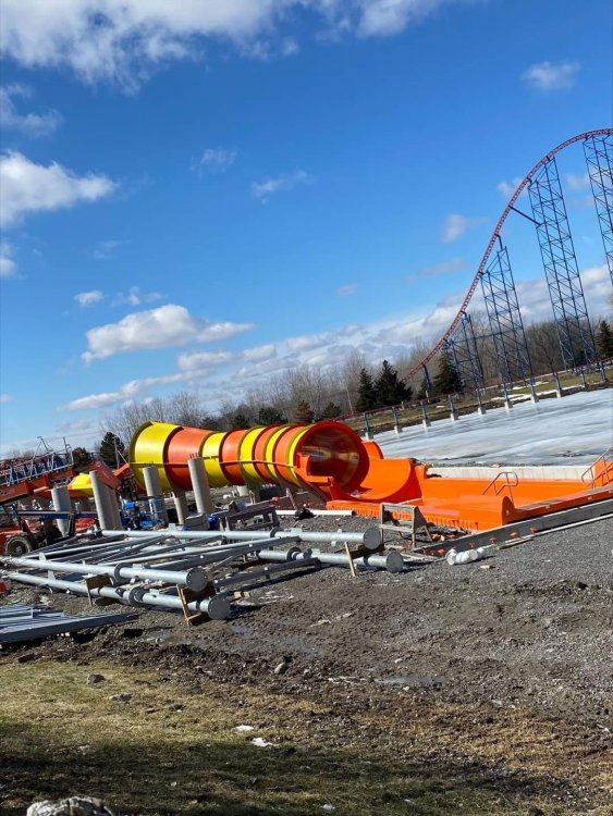 Wahoo Wave and Hurricane Harbor branding have been confirmed to be happening this year. Park will be closed on Tuesdays. Chris Thorpe is once again the park president. https://www.wgrz.com/amp/article/entertainment/six-flags-darien-lake-announces-new-water-slide-wahoo-wave-hurricane-harbor/71-f28b120b-5bb8-443b-ae3f-96bbca138756 DARIEN CENTER, N.Y. — The opening of Six Flags Darien Lake is just under three months away, and the park is ready to bring some new fun this summer. On Monday, Darien Lake announced it is rebranding the Splashtown Waterpark to Six Flags Hurricane Harbor and is opening a new water slide for the 2022 season. The new slide, Wahoo Wave, is 60 feet tall and one of the tallest slides in the park. “Six Flags is committed to making the park bigger, better and now wetter than ever with the addition of this world-class waterpark attraction, Wahoo Wave,” said Park President Chris Thorpe. “With non-stop, soaking thrills for the entire family, Hurricane Harbor will be the perfect summertime escape.” Wahoo Wave features twists, drops and a "water wave wall." The slide will provide near-vertical motions and extended hang time providing zero g-forces. The whole family can experience the six story slide together in a four person tube. Construction of the slide has already begun. It is expected to be open when the waterpark opens in May. Other changes coming to the park include expanded seating, improved shade areas, a selfie spot with a 20-foot-tall shark and a new wave pool mural. Darien Lake opens May 27 for weekends and select weekdays until June 24. The park will be open daily, except for Tuesdays, through Labor Day. The park is the the region's largest waterpark and has a total for 50 rides between both the amusement park and waterpark. It also has a 20,000-seat amphitheater operated by Live Nation.
