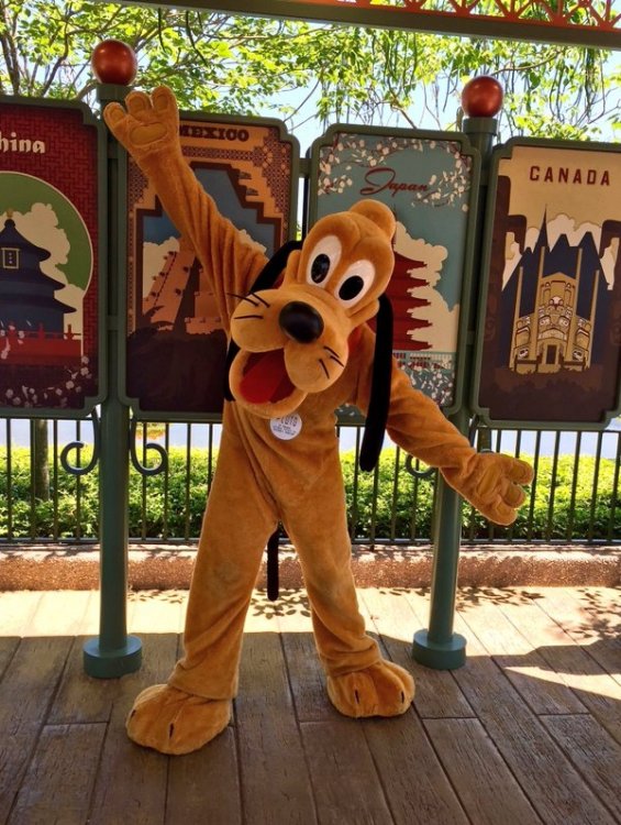 Afterwards, we rode Spaceship Earth and met Mickey, Minnie, Goofy, Joy, Sadness, and Baymax at the Character Spot. After the Character Spot, we went to the Disney VISA Meet-N-Greet and rode Test Track, our first fastpass. Then, we met Pluto at Showcase Plaza.